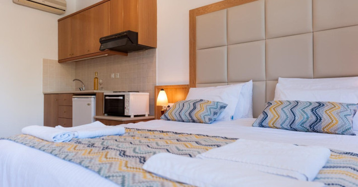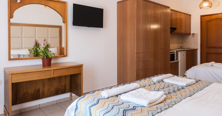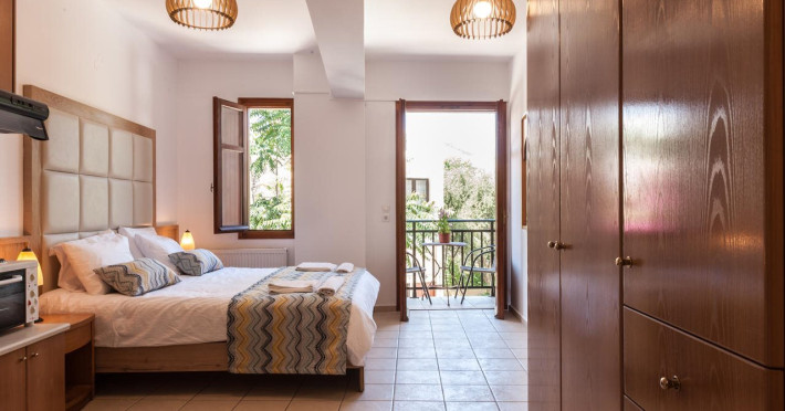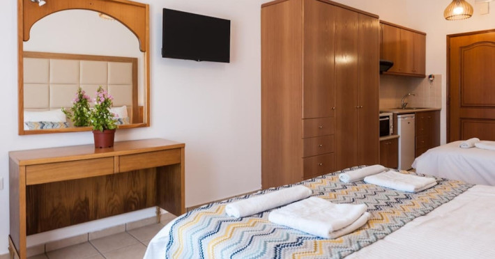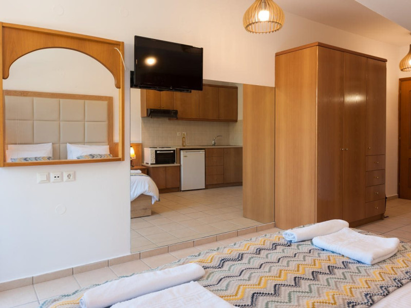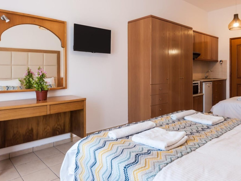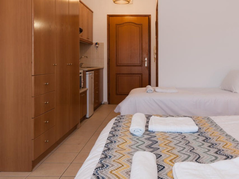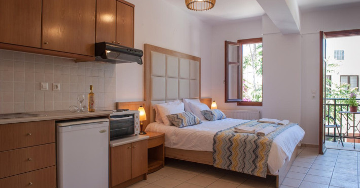 Facilities and services include Reception services open from 08.00-23.00, Multilingual staff, Air conditioning in room free of charge, Wi-Fi internet connection free of charge, Car rental services (extra charge), Bike rental services (extra charge), Wakeup call, Firstaid, Doctor on call (extra charge), Maid service daily, Guest Parking area 60m (extra charge), Drying loft at the veranda, Postal services, and laundry service (extra charge).Rooms feature wardrobe, air conditioning, cable/satellite TV, balcony/terrace, wireless internet access, safety deposit box, coffee/tea making facilities, beauty mirror, kitchenette, mini-fridge, private bathroom, hairdryer, and bathroom amenities.Please note that cleaning is thrice a week, and change of towels is twice a week.Check-in time is from 14.00 TILL 23.00Check-out time is 12.00Note: Reception with limited opening hours. Please advise flight number and estimated arrival time when booking this hotel.Address: Chimaras, 12, 74100 Rethymnon, Crete, Greece.