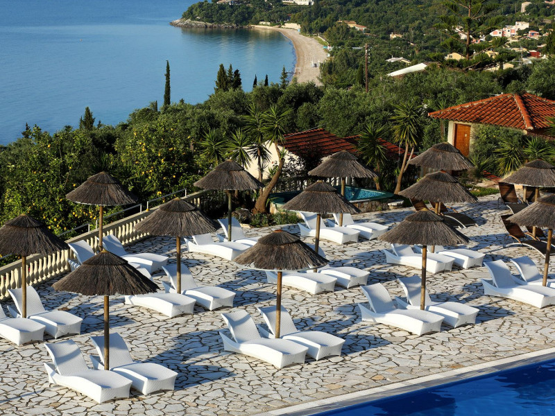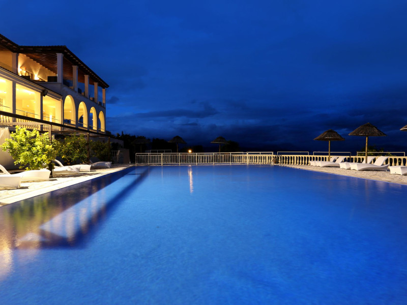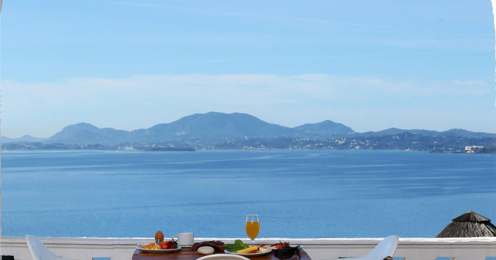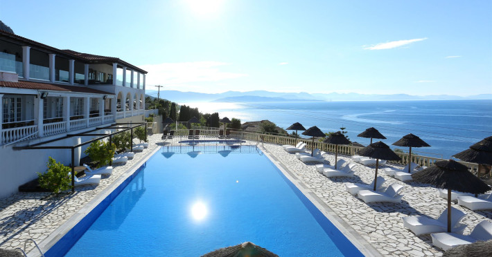 Welcome to Pantokrator HotelSituated northeast of Corfu town in Barbati, in one of the most picturesque villages on the island of Corfu the Pantokrator Hotel is set among the foothills of the impressive Pantokrator Mountain. This specific part of the island is renowned for its breathtaking panoramic views over the southern part of Corfu, the coastline of Albania, the Greek mainland and of course the crystal-clear blue waters of the Ionian Sea.Pantokrator Hotel is built in the typically Mediterranean architectural style where the amphitheatrically setting of room blocks provide a village-style environment and stunning views. The 102 rooms are boutique-style each with its own unique character. The interior decoration makes them each one of a kind while large balconies with their stunning views over the Ionian Sea, Corfu town, the Greek mainland and the Albanian coastline ensure a tranquil carefree summer holiday.Hanging over the majestic Barbati beach and overlooking the Ionian Sea, the hotels generously sized swimming pool invites you for a refreshing swim. Next to it, there is also a smaller sized children’s pool. Our guests relaxing by the poolside, lying on the sun beds and being under the famous Greek sun may enjoy a drink or a snack from our pool bar. For those who are more energetic, there is a newly- constructed gym right above the swimming-pool area and on top of the pool bar.Our privileged guests can enjoy their fitness session as they combine it with the relaxing panoramic views.The Barbati beach, which has been awarded by the world-renowned eco-label Blue Flag, is only 300 meters away from our premises. There is also a small cove right in front of the hotel. Hotel amenities also include “The Olive Tree Restaurant“, with panoramic views, 24-hour reception service, currency exchange, postal services, fax services, accessible free outdoor parking, baggage hold, hotel-wide air-conditioning and free WiFi. Our friendly, knowledgeable, multi-lingual team is always available and happy to assist you during your stay at Pantokrator Hotel Corfu.