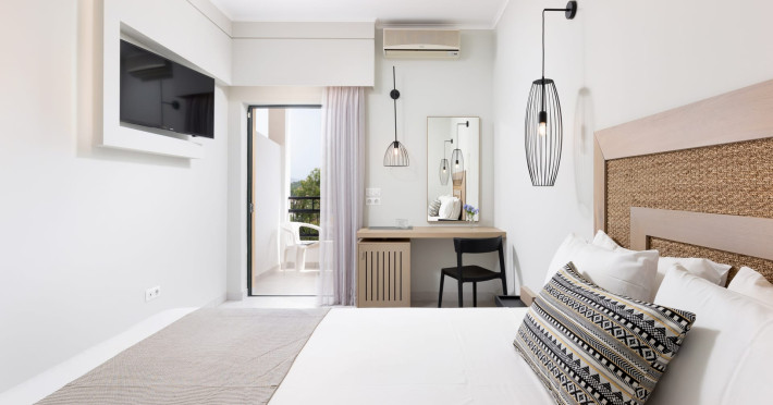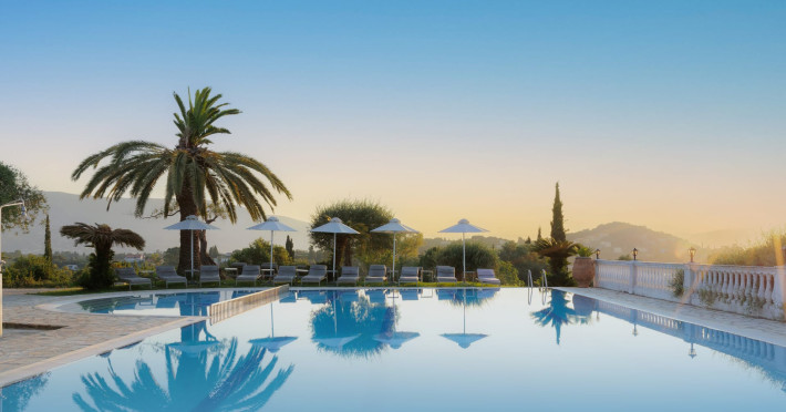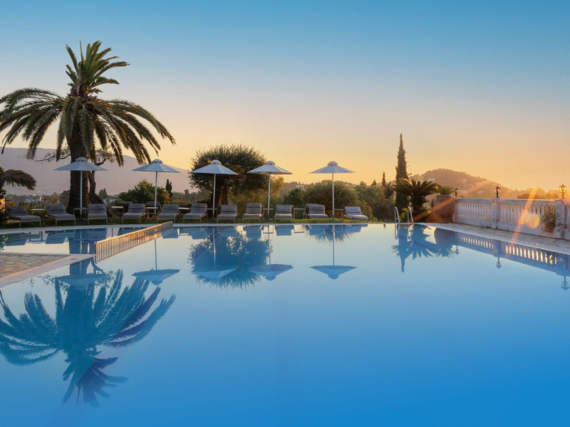 Welcome to the beautiful surroundings and friendly atmosphere of the Paradise Hotel Corfu where Sun, Sea and new experiences await.Located just 500m from the sea, this popular 3* hotel, built in an ancient olive grove, has panoramic views of the Ionian Sea and surrounding countryside. It offers easy access to the bustling seaside resort of Gouvia and is a great base for exploring the island.The hotel has 60 comfortable rooms, the majority of which were renovated in 2018. You can relax at the beautiful swimming pool, complete with complimentary sun loungers and parasols, or enjoy a tasty snack or refreshing drink at the poolside bar. A full buffet breakfast is served outside on the terrace overlooking spectacular views of the sea.