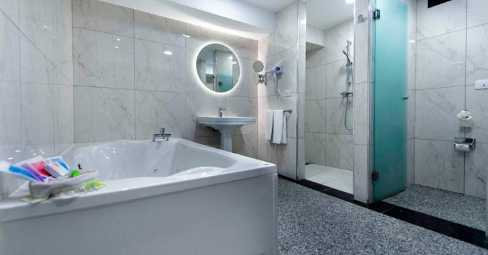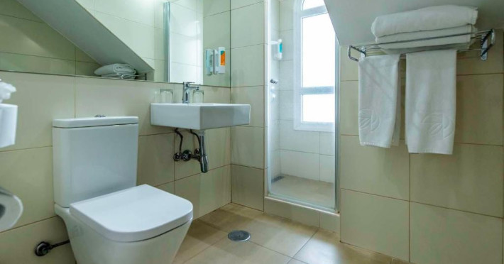 Camera twin superioara cu vedere la piscina, balcon sau terasa