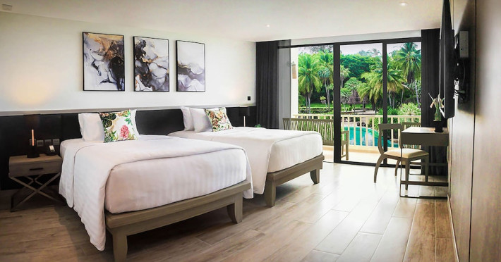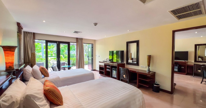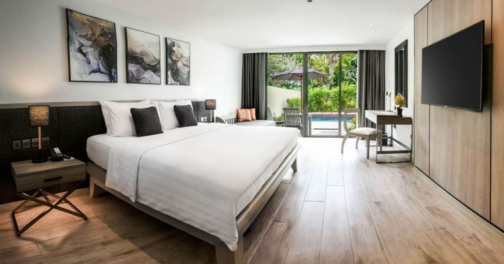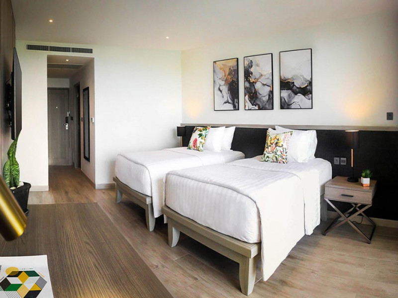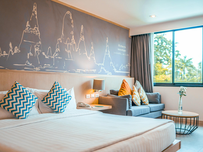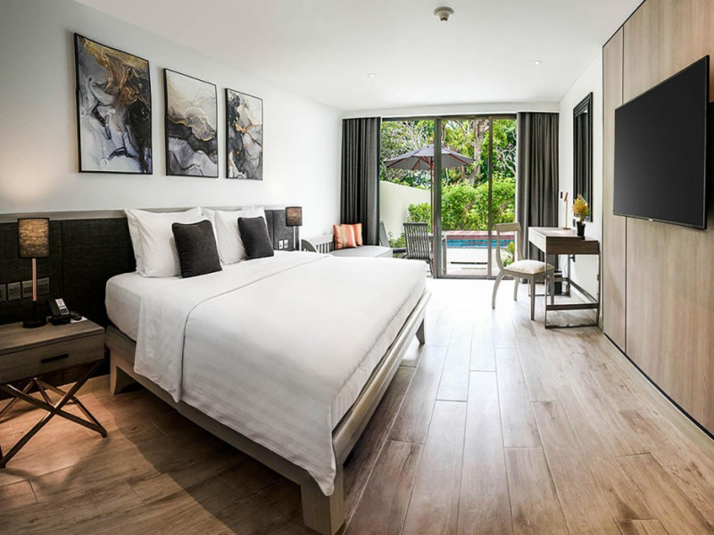 Paradox Resort Phuket, a family-friendly resort, is located in Karon Beach, approximately 60 minutes from Phuket International Airport and 10 minutes from Patong. The resort offers accommodation with an outdoor swimming pool, fitness center, garden, and terrace. Guests can enjoy complimentary wireless internet access, concierge services, and a 24-hour front desk. Dining options include 2 restaurants, a poolside bar, and 3 bars/lounges, with room service available during limited hours. A buffet breakfast is available daily for a fee. The resort features a full-service spa offering massages, body treatments, and facials. Recreational amenities include billiards and table tennis. The air-conditioned rooms feature Smart TVs, digital programming, a safety deposit box, an electric kettle, and a private bathroom with complimentary toiletries and a hairdryer. Airport transfers are available for a surcharge, and free self-parking is available onsite. The resort has conference space and meeting rooms. Nearby attractions include Karon Temple, Karon Market, and Karon Beach.
