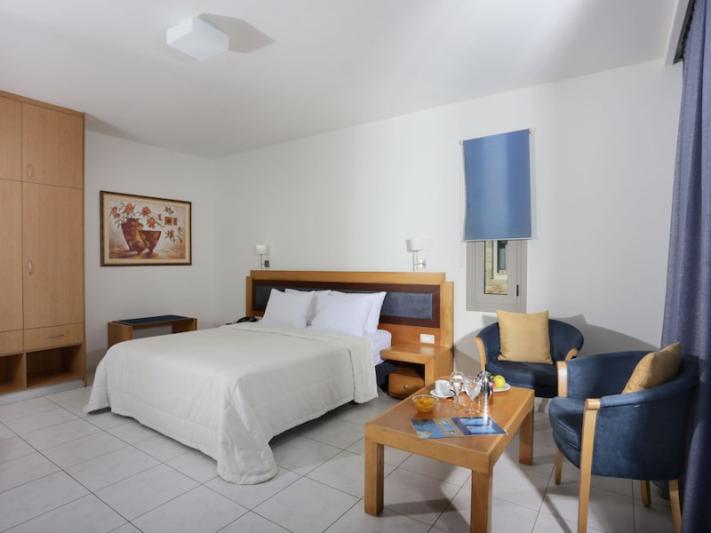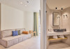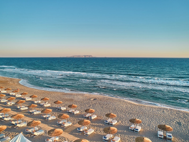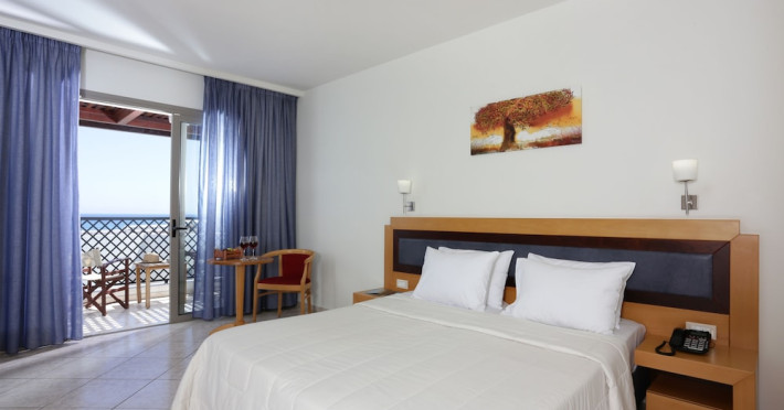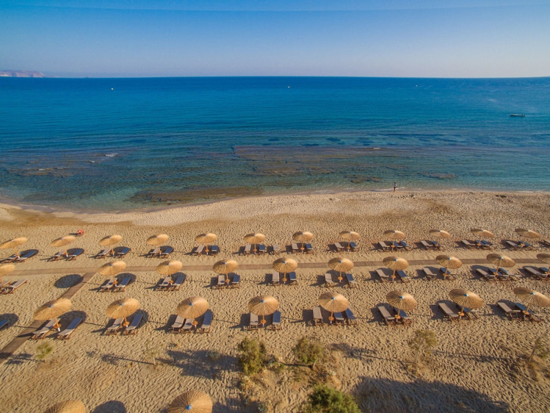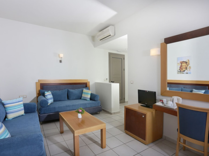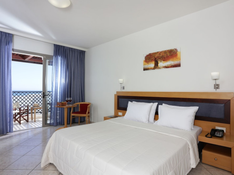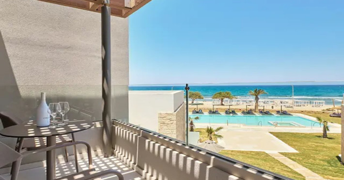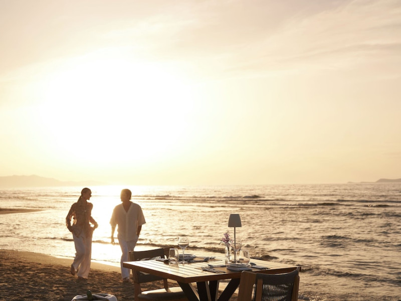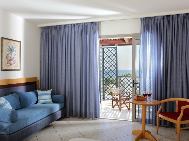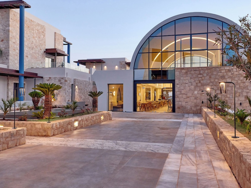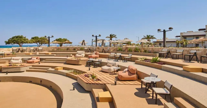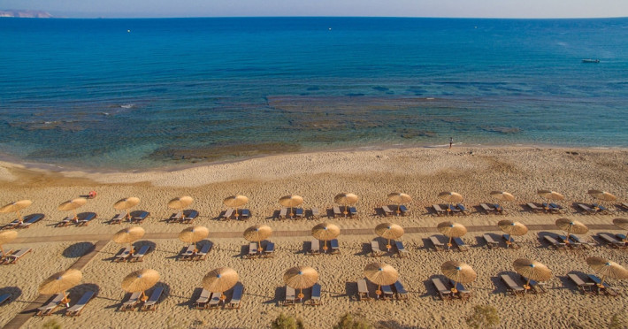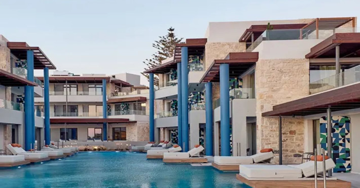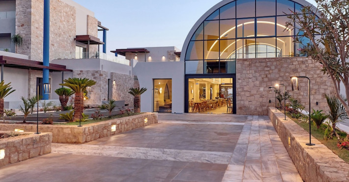 Facilities and services include 24-hour reception, lobby, lounge with terrace & elevator, Wi-Fi in public areas, 2 outdoor electrolysis swimming pools with jacuzzi (10:00-18:00), sun terrace, pool/beach sunbeds & umbrellas, beach gazebos, pool & beach lifeguard (10:00-18:00), beach changing cabin, outdoor shower, sitting terrace, garden, amphitheater, onsite parking, first-aid kit & AED kit & doctor on call (extra charge), restaurant, bars, indoor & outdoor fitness room, certified fitness trainer, indoor heated swimming pool (10:00-19:00). Wellness facilities include (all with extra charge): spa center (10:00-19:00) with massage treatments (on request), manicure & pedicure, body & facial treatments (by appointment), sauna, steam bath, whirlpool.Room features individual air-conditioning, ceiling fan, direct-dial telephone (extra charge), electronic laptop-size safety deposit box with integrated power socket, high-speed Wi-Fi, 50 to 55-inch Smart TV, mini fridge, mini bar, electric kettle, Nespresso coffee machine, coffee & tea facilities, walk-in rain shower & WC sink, hairdryer, bathrobe, bathroom amenities, pool/beach towels, balcony/terrace, room service (07:30 22:30, extra charge), maid service (daily), towel change (daily), linen change (3 times per week), pillow menu, laundry & dry cleaning service (extra charge).Notes:- Only guests 13 years old and above can be accommodated.- Swimming shoes are recommended at the beach as there are pebbles- Rooms for disabled guests are on request and is subject to availability.- Some of the above facilities may be closed due to weather/seasonal conditions.Address: 700 14 Anissaras, Hersonissos, Crete.