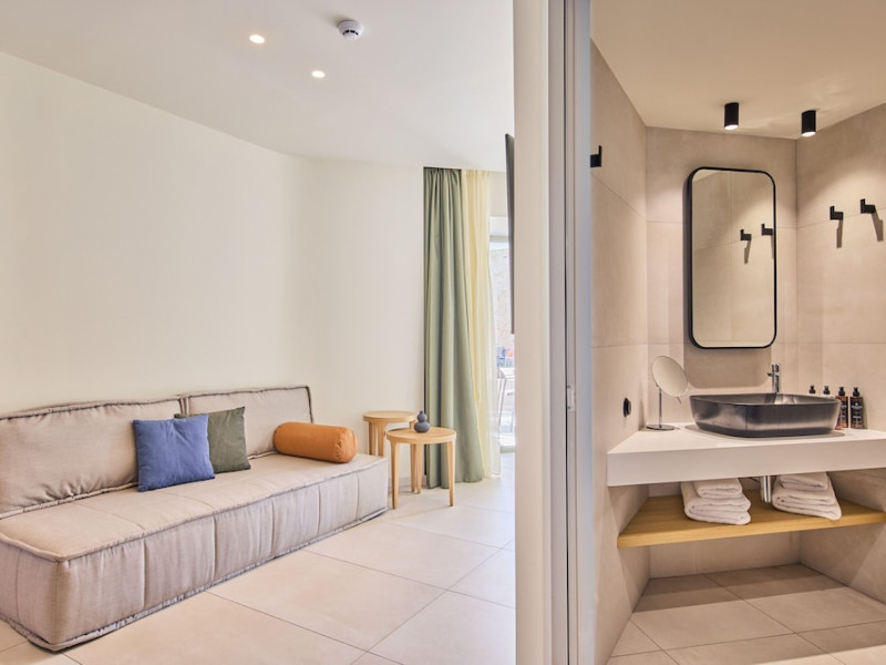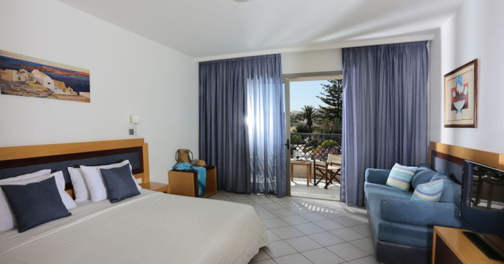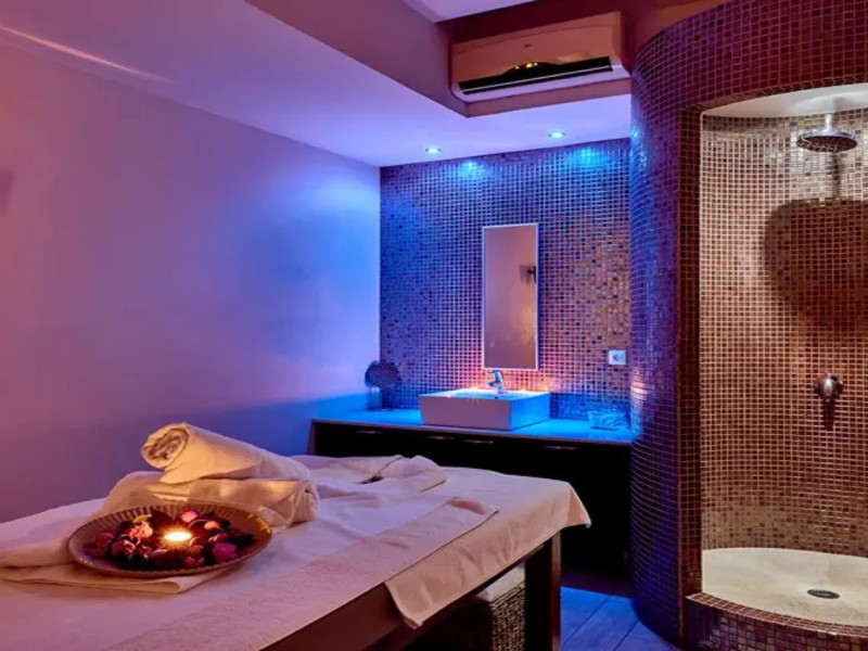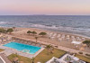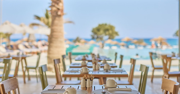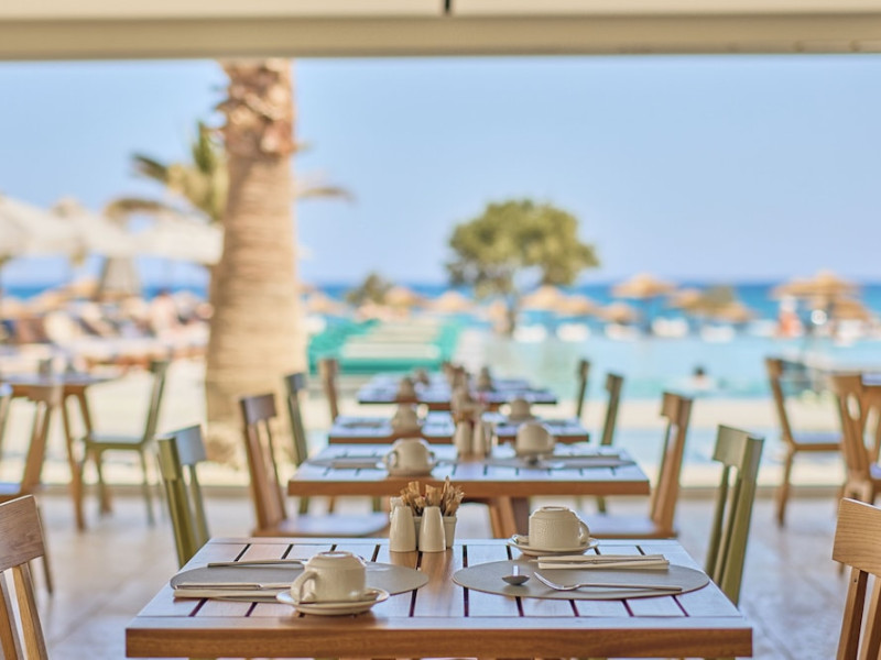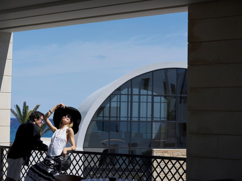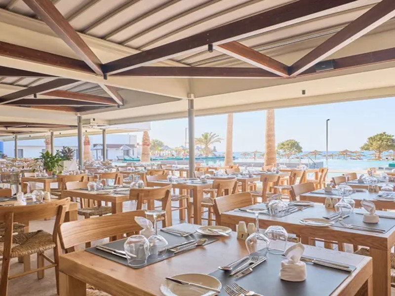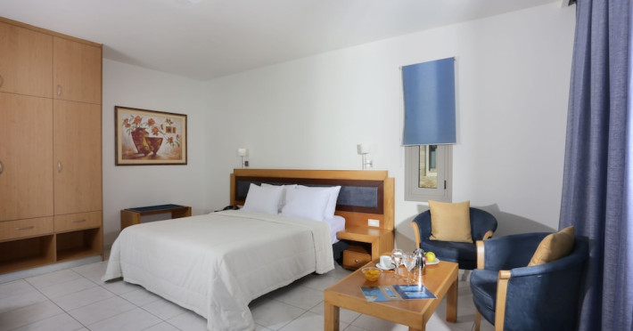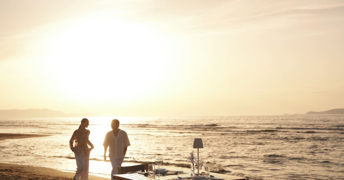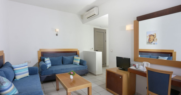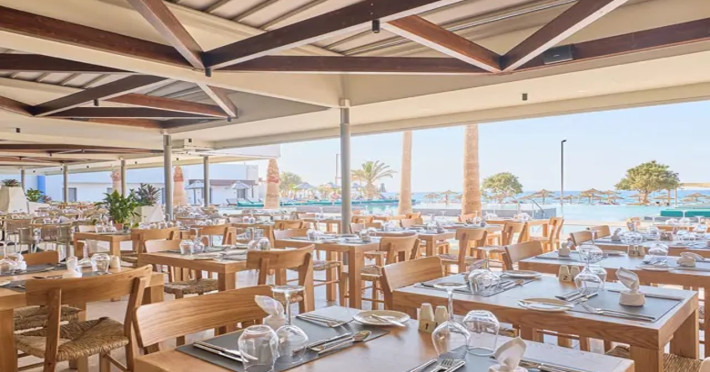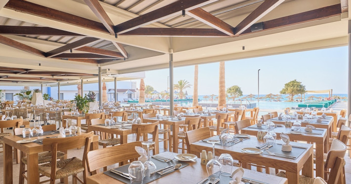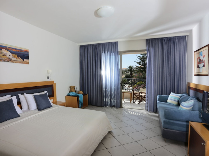 Facilities and services include 24-hour reception, lobby, lounge with terrace & elevator, Wi-Fi in public areas, 2 outdoor electrolysis swimming pools with jacuzzi (10:00-18:00), sun terrace, pool/beach sunbeds & umbrellas, beach gazebos, pool & beach lifeguard (10:00-18:00), beach changing cabin, outdoor shower, sitting terrace, garden, amphitheater, onsite parking, first-aid kit & AED kit & doctor on call (extra charge), restaurant, bars, indoor & outdoor fitness room, certified fitness trainer, indoor heated swimming pool (10:00-19:00). Wellness facilities include (all with extra charge): spa center (10:00-19:00) with massage treatments (on request), manicure & pedicure, body & facial treatments (by appointment), sauna, steam bath, whirlpool.Room features individual air-conditioning, ceiling fan, direct-dial telephone (extra charge), electronic laptop-size safety deposit box with integrated power socket, high-speed Wi-Fi, 50 to 55-inch Smart TV, mini fridge, mini bar, electric kettle, Nespresso coffee machine, coffee & tea facilities, walk-in rain shower & WC sink, hairdryer, bathrobe, bathroom amenities, pool/beach towels, balcony/terrace, room service (07:30 22:30, extra charge), maid service (daily), towel change (daily), linen change (3 times per week), pillow menu, laundry & dry cleaning service (extra charge).Notes:- Only guests 13 years old and above can be accommodated.- Swimming shoes are recommended at the beach as there are pebbles- Rooms for disabled guests are on request and is subject to availability.- Some of the above facilities may be closed due to weather/seasonal conditions.Address: 700 14 Anissaras, Hersonissos, Crete.