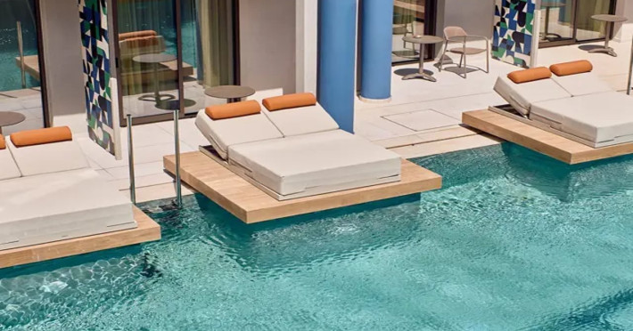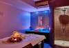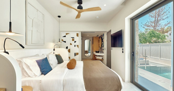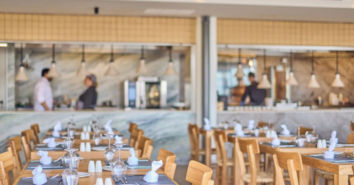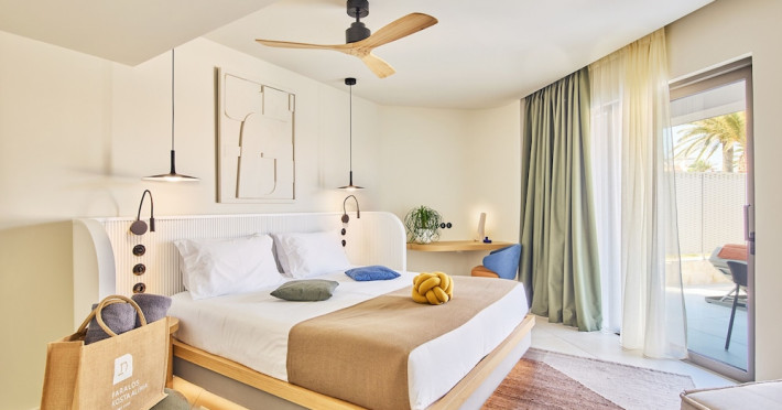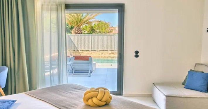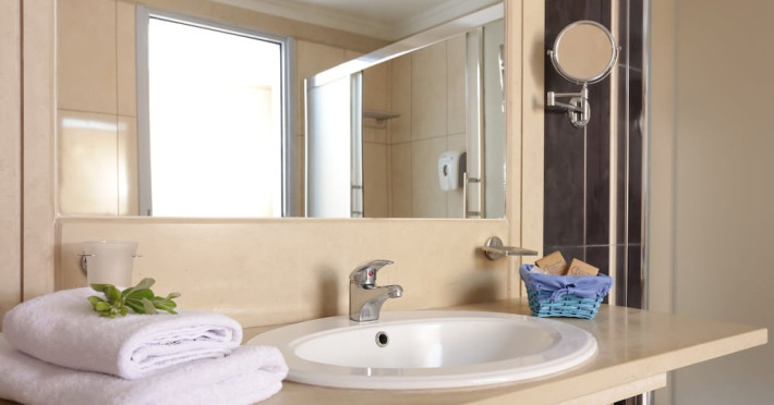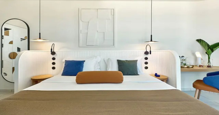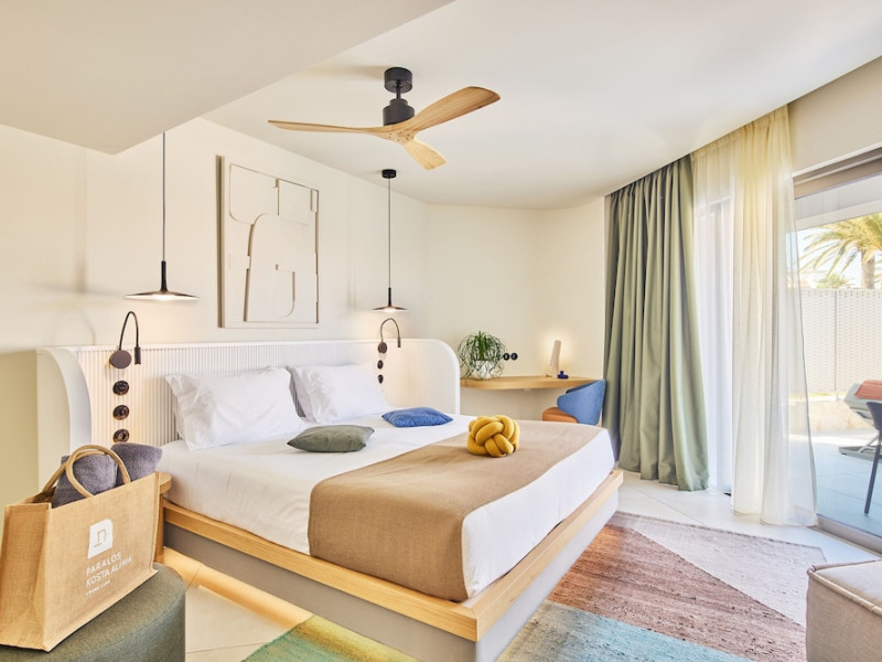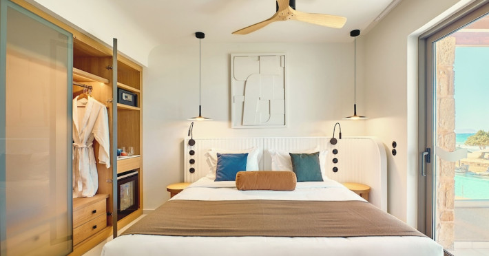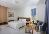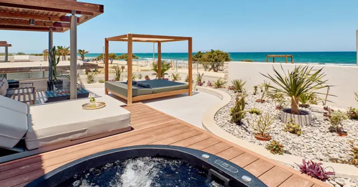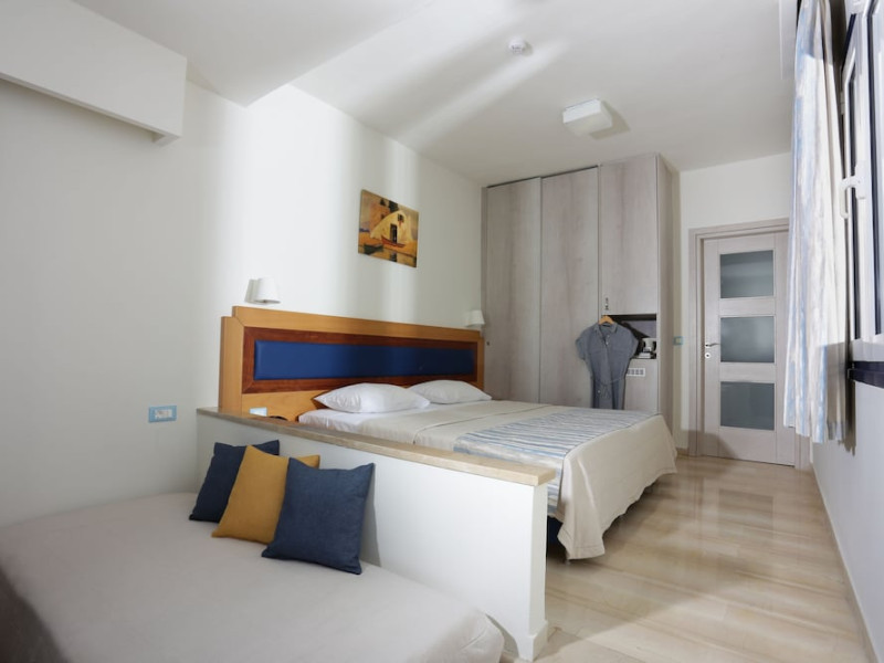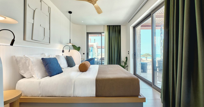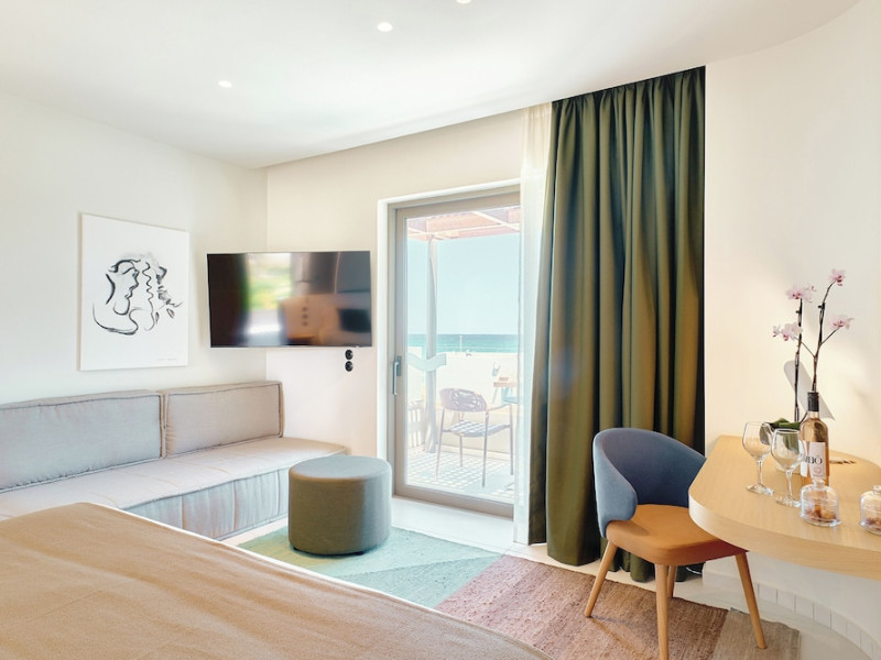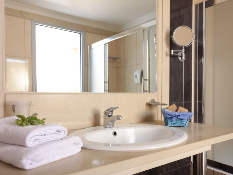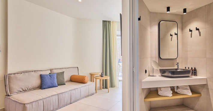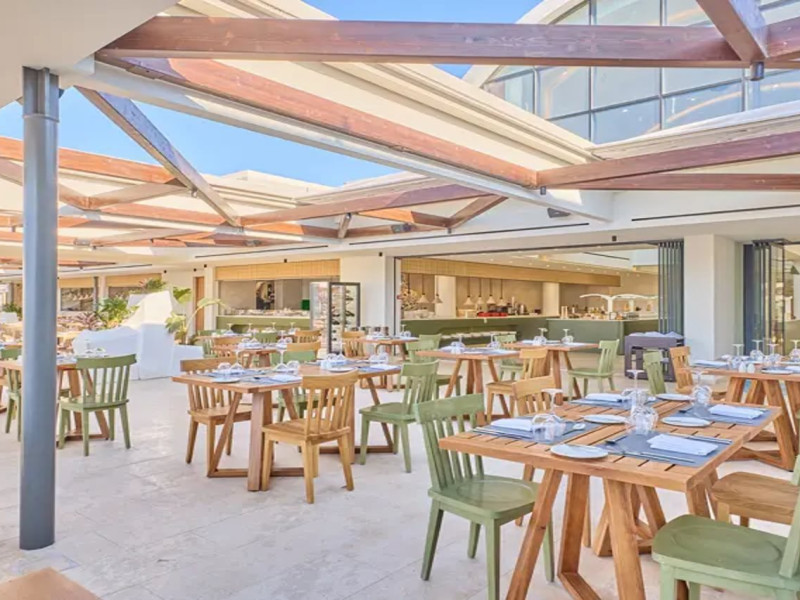 Facilities and services include 24-hour reception, lobby, lounge with terrace & elevator, Wi-Fi in public areas, 2 outdoor electrolysis swimming pools with jacuzzi (10:00-18:00), sun terrace, pool/beach sunbeds & umbrellas, beach gazebos, pool & beach lifeguard (10:00-18:00), beach changing cabin, outdoor shower, sitting terrace, garden, amphitheater, onsite parking, first-aid kit & AED kit & doctor on call (extra charge), restaurant, bars, indoor & outdoor fitness room, certified fitness trainer, indoor heated swimming pool (10:00-19:00). Wellness facilities include (all with extra charge): spa center (10:00-19:00) with massage treatments (on request), manicure & pedicure, body & facial treatments (by appointment), sauna, steam bath, whirlpool.Room features individual air-conditioning, ceiling fan, direct-dial telephone (extra charge), electronic laptop-size safety deposit box with integrated power socket, high-speed Wi-Fi, 50 to 55-inch Smart TV, mini fridge, mini bar, electric kettle, Nespresso coffee machine, coffee & tea facilities, walk-in rain shower & WC sink, hairdryer, bathrobe, bathroom amenities, pool/beach towels, balcony/terrace, room service (07:30 22:30, extra charge), maid service (daily), towel change (daily), linen change (3 times per week), pillow menu, laundry & dry cleaning service (extra charge).Notes:- Only guests 13 years old and above can be accommodated.- Swimming shoes are recommended at the beach as there are pebbles- Rooms for disabled guests are on request and is subject to availability.- Some of the above facilities may be closed due to weather/seasonal conditions.Address: 700 14 Anissaras, Hersonissos, Crete.