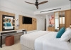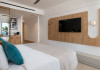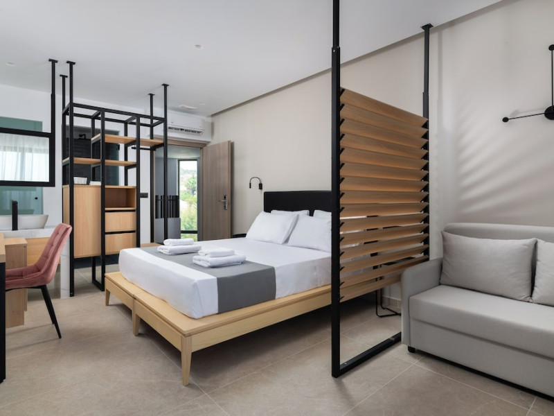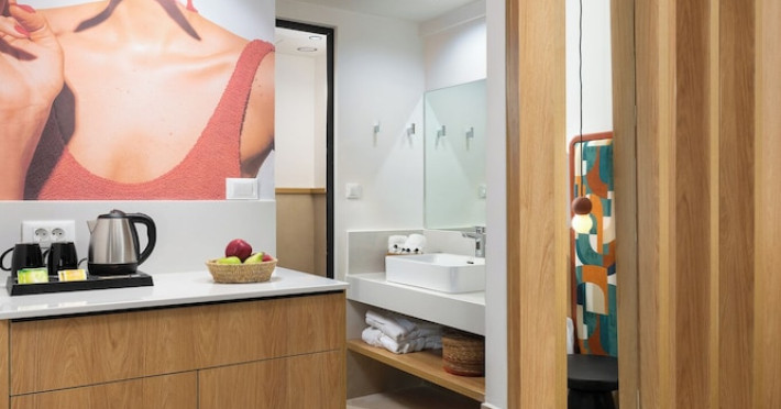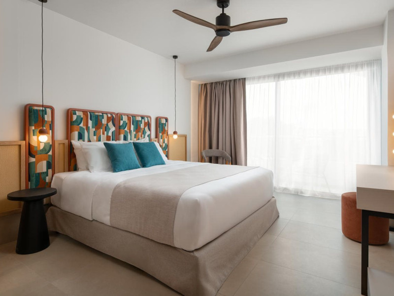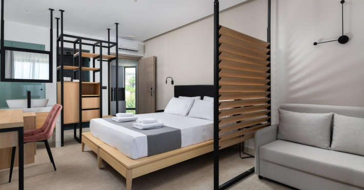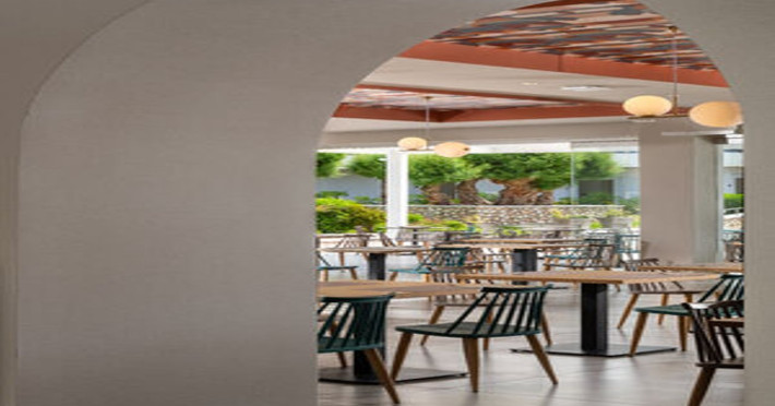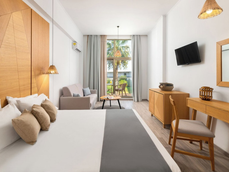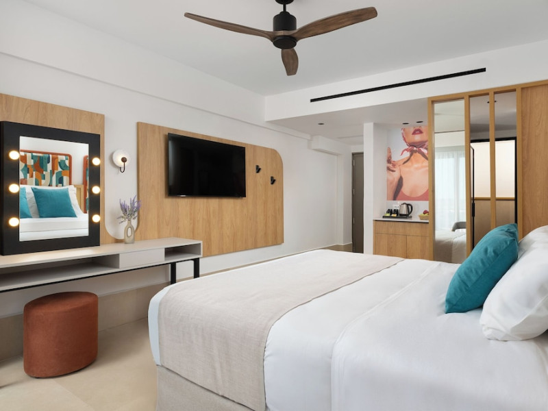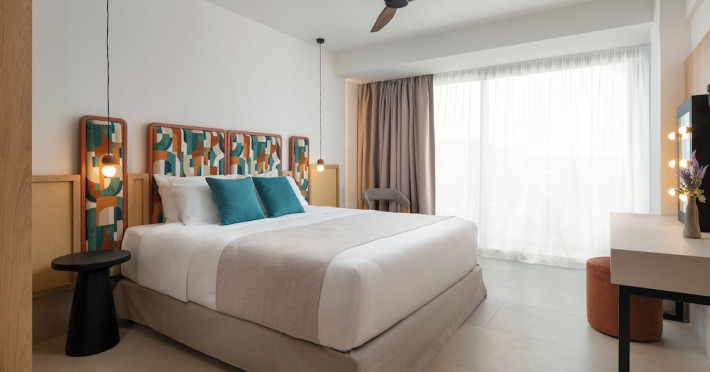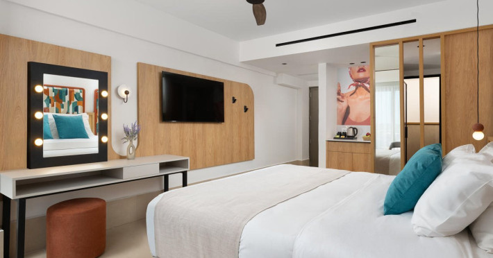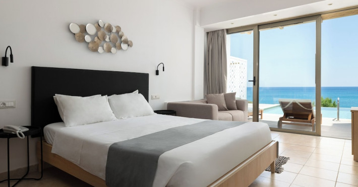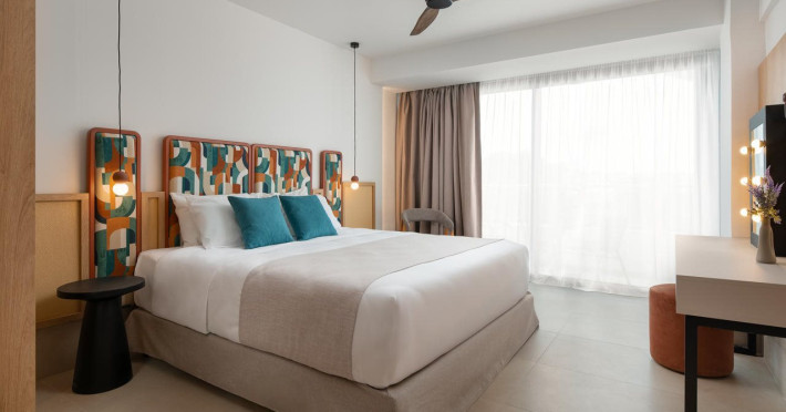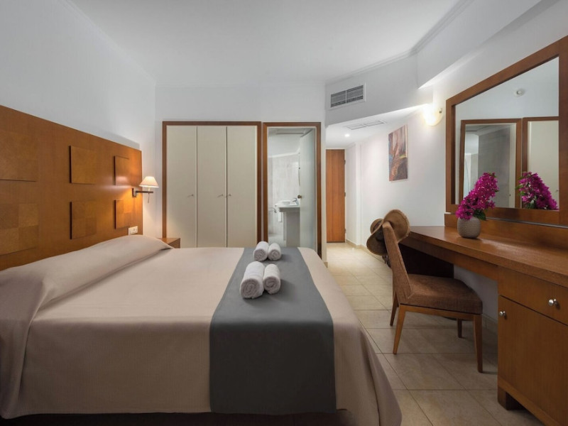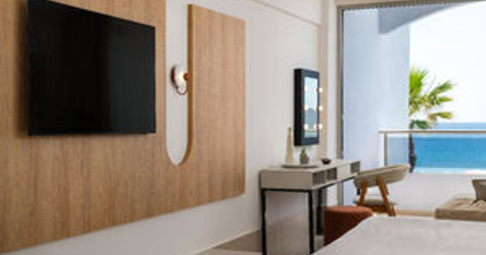 Facilities and services 24-hour reception, lobby, elevator, luggage storage, Wi-Fi in public areas, mini market, outdoor swimming pool (08:00-19:00), sunbeds & umbrellas, pool gazebos (free), courtesy room (for late departures), pool outdoor shower, pool changing cabin, garden, on-site parking, electrical vehicle charging station (extra charge), first aid, doctor on call (extra charge), restaurants, bars, separated baby pool (10:00-18:00), playground, an outdoor gym, a fitness trainer (6 times per week), and massage cabins (on request, extra charge).Rooms feature air-conditioning/heating, direct-dial telephone, 43-inch flat-screen TV (with satellite channels), safety deposit box, mini fridge, coffee & tea facilities (daily refill), shower/WC, hairdryer, cosmetic mirror, bathroom amenities, slippers, pool/beach towels (free, change 3 times per week), balcony, laundry/dry cleaning/ironing service (provided by a third party with extra charge), a baby cot (on request), highchair (on request).NOTE:*Check in: 14:00*Check out: 11:00* Maid service (daily)*Towel change (daily)*Linen change (every 2nd day)The All Inclusive-Concept includes all meals (breakfast, lunch, dinner and snacks) and mealtime drinks such as soft drinks, beer, wine, water, and alcoholic drinks, all of local brands. Drinks are served from morning until late evening (approx until 22.00 -24.00 hrs). Opening times vary between different hotels. In certain hotels, the activities program is also included.Please note that some of the above facilities may be closed due to weather / seasonal conditions.Address: Athinon Street, 85103 Kolymbia, Rhodes, Greece.