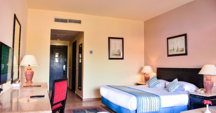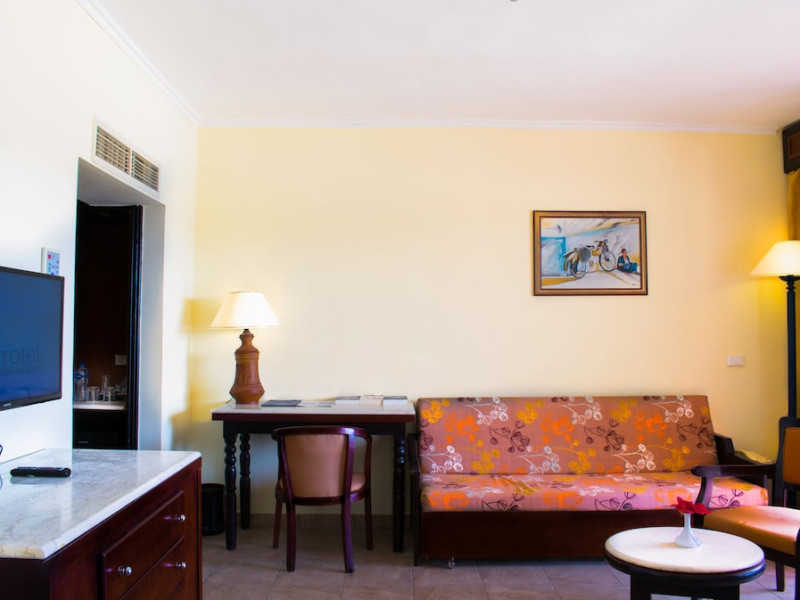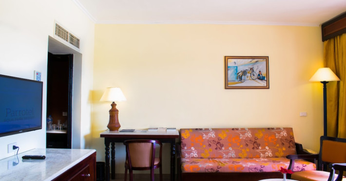 Located in Sharm El Sheikh, Parrotel Aquapark Resort offers a comfortable and relaxing atmosphere with air-conditioned rooms featuring modern facilities and a balcony or terrace. The hotel is approximately a 7-minute walk to the nearest beach and 5 km from the airport. Guests can enjoy access to multiple outdoor swimming pools, sun terraces with complimentary loungers and parasols, and a private beach. The hotel spa offers massages, health and beauty treatments, a hot tub, and steam baths. On-site amenities include tennis and volleyball courts, complimentary wireless internet access, concierge services, and babysitting (surcharge). Dining options include multiple restaurants, a coffee shop/cafe, and several bars/lounges, with 24-hour room service available. The hotel provides a 24-hour front desk, dry cleaning/laundry services, and an airport shuttle (surcharge). Free self-parking is available. The hotel is all-inclusive, with meals and beverages included at on-site dining establishments (charges may apply for certain options). Nearby attractions include Ras Mohammed National Park, Rehana Beach, and Nabq Bay. The Parrotel Aqua Park Resort is a Beach Resort, Full Service, Leisure, Modern, Resort, Tourist hotel. The nightlife/restaurants are easily accessible by taxi or bus from the hotel.