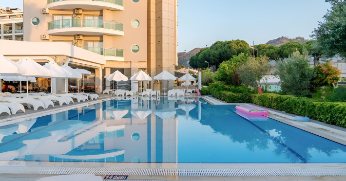 Pasa Beach este localizat la 90 km distanta de Aeroportul International Dalaman. Acesta este dotat cu lift, restaurante, baruri, piscina interioara, piscina pentru copii, Wifi, club pentru copii, salon de infrumusetare, sala de fitness, etc.