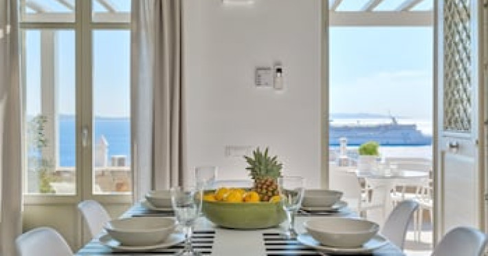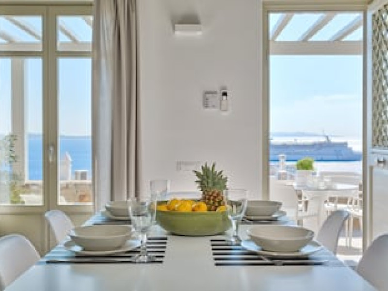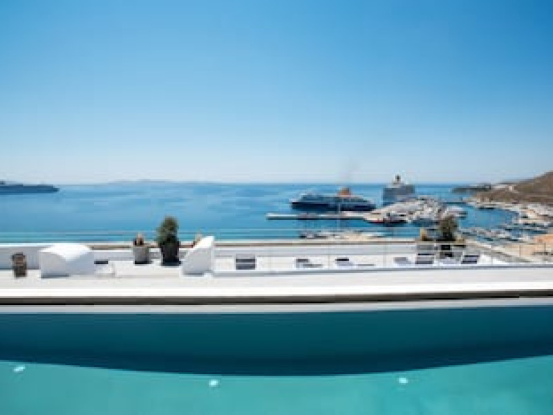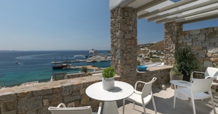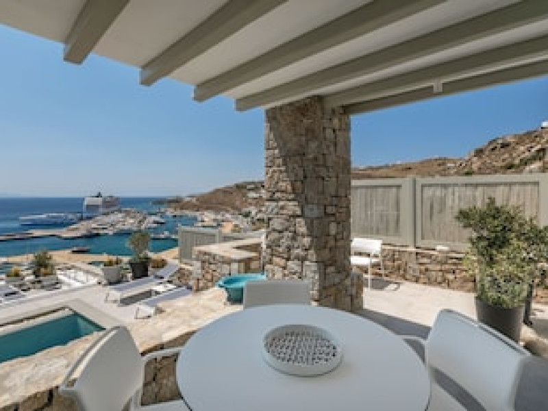 The preferred airport for Tourlos Bay Villas Mykonos is Mykonos Island National Airport (JMK).