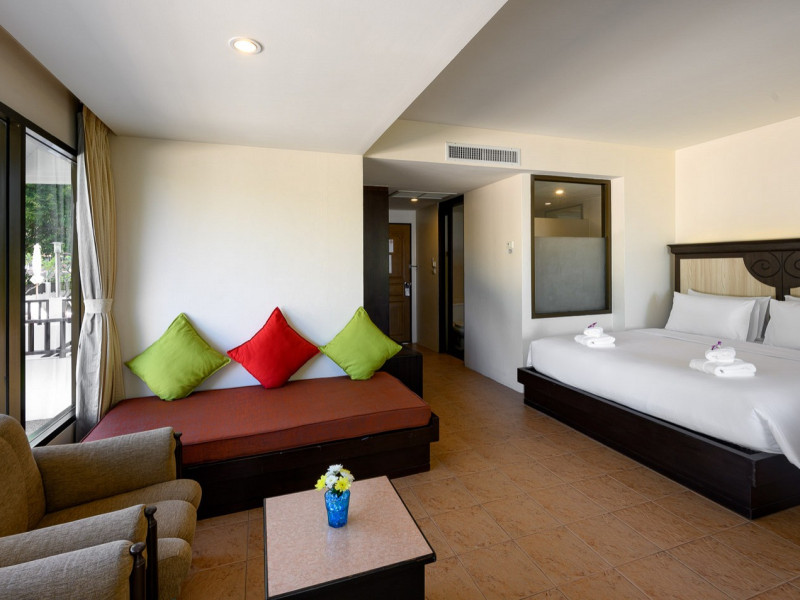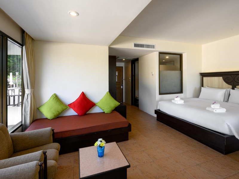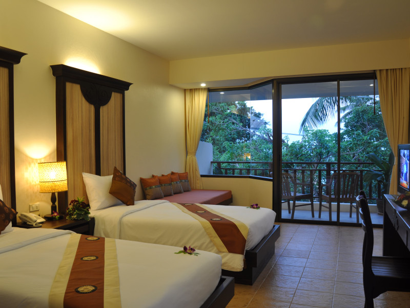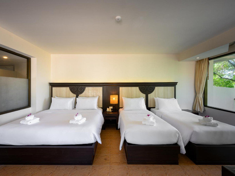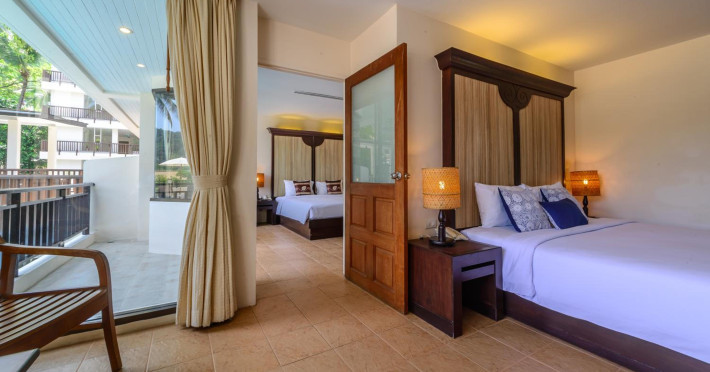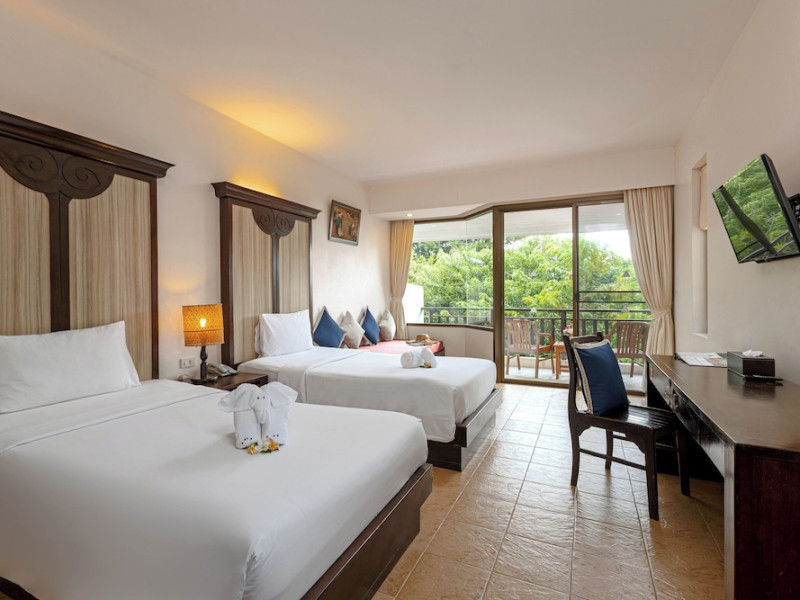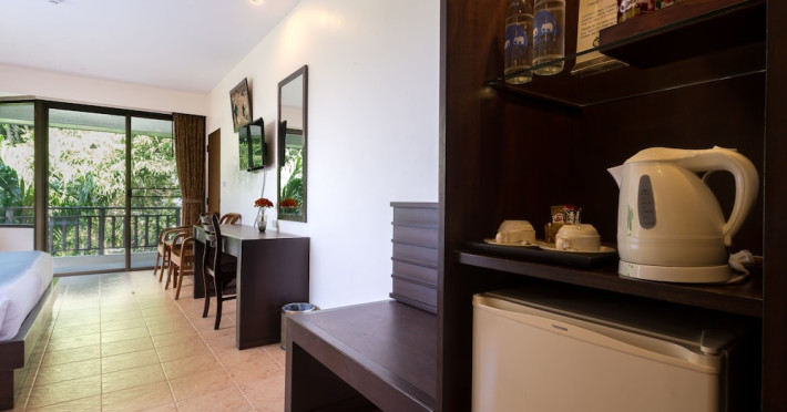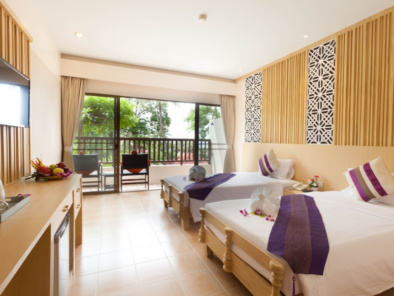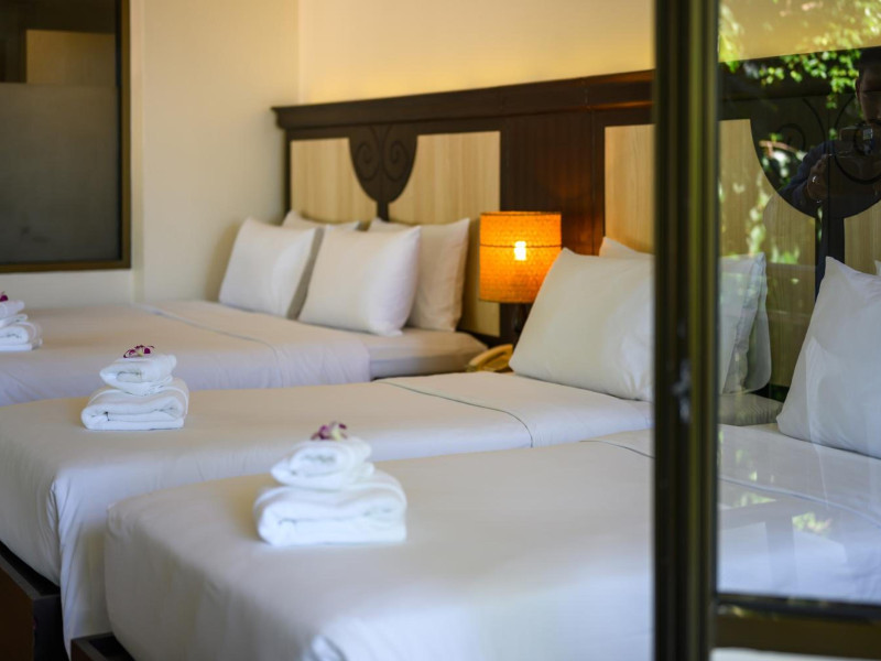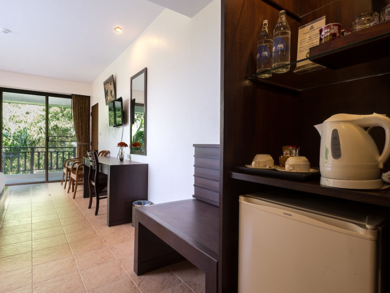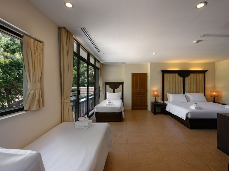 The air-conditioned rooms feature private balconies, wooden furnishings, and Thai decor. They are equipped with satellite TV, a safety deposit box, refrigerators, minibars, and complimentary Wi-Fi. Bathrooms include complimentary toiletries and hair dryers.