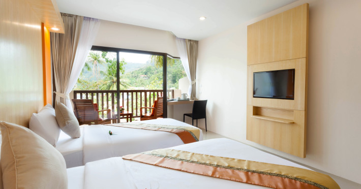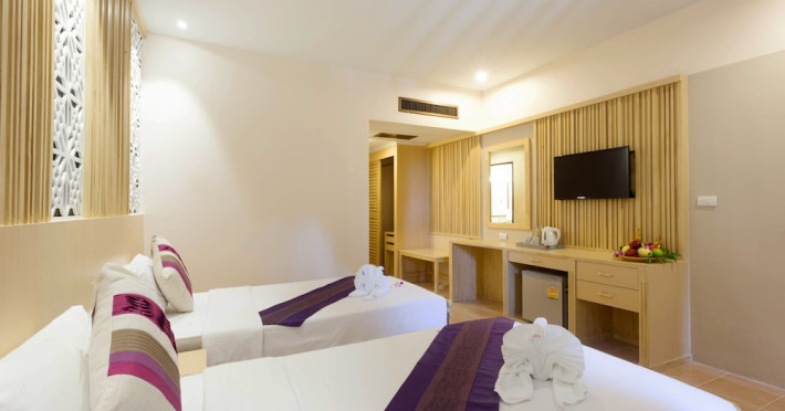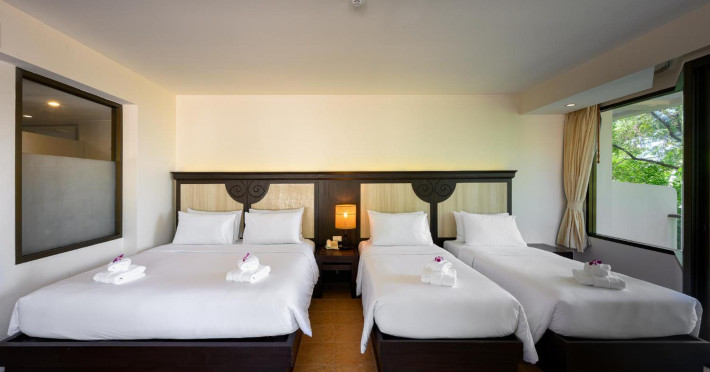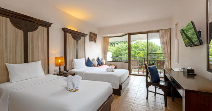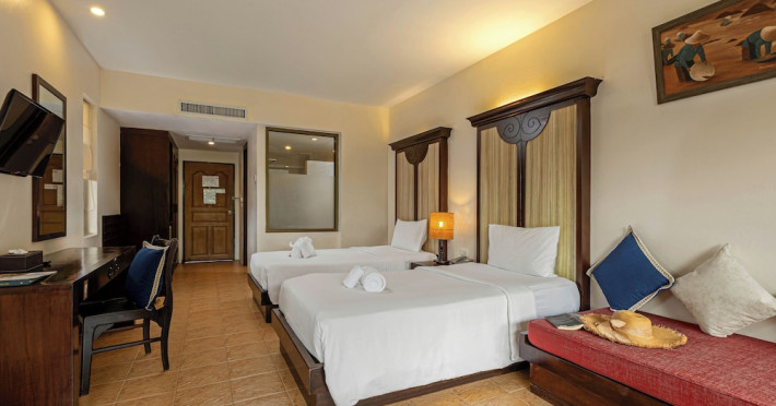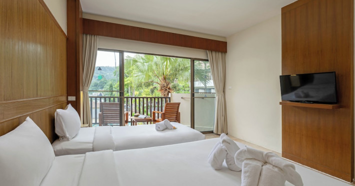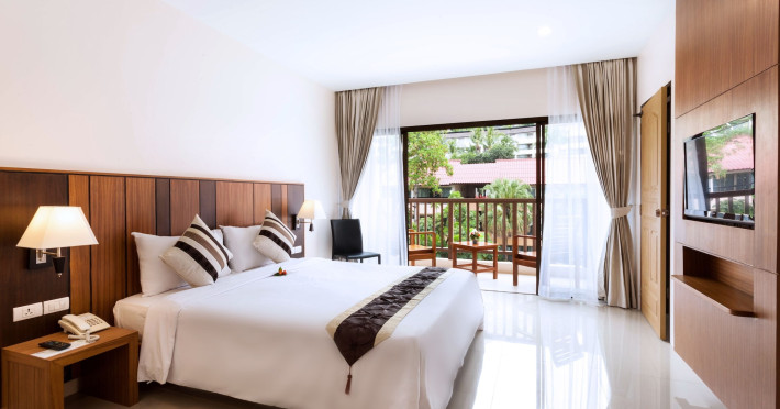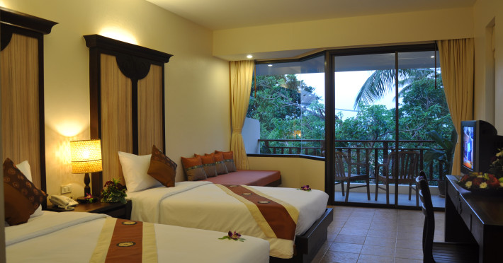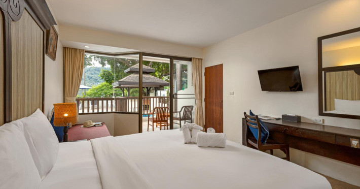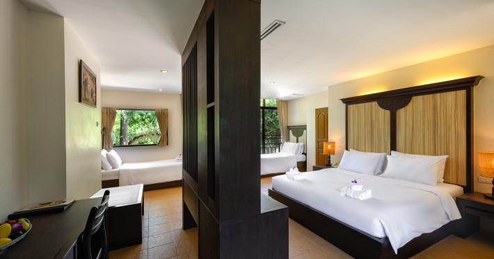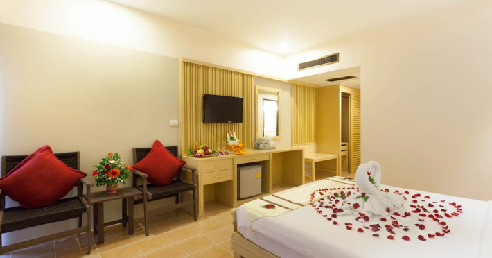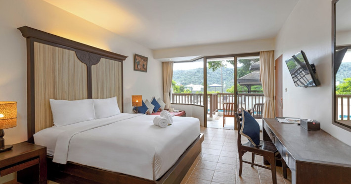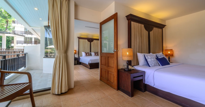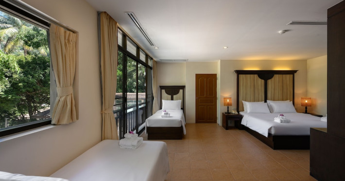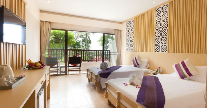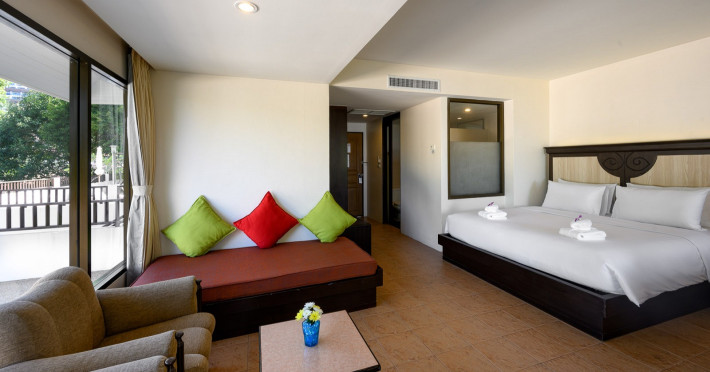 The air-conditioned rooms feature private balconies, wooden furnishings, and Thai decor. They are equipped with satellite TV, a safety deposit box, refrigerators, minibars, and complimentary Wi-Fi. Bathrooms include complimentary toiletries and hair dryers.