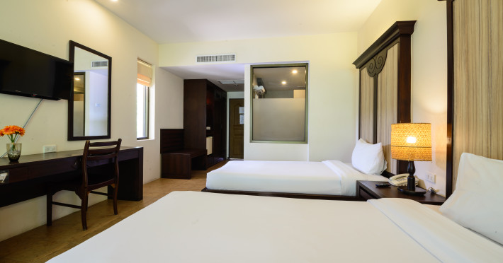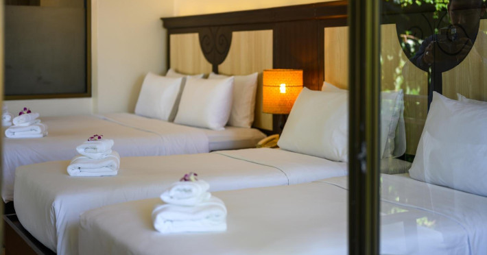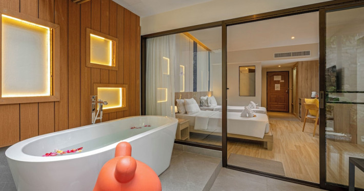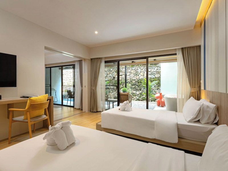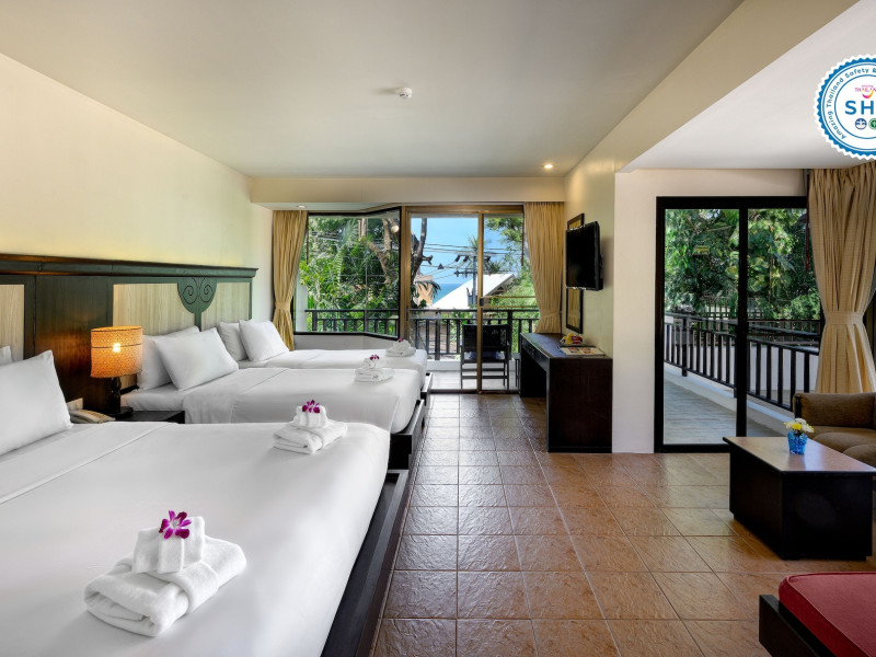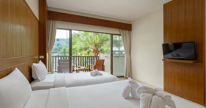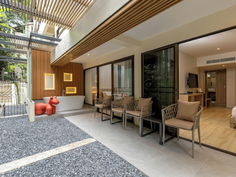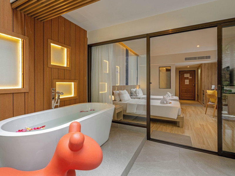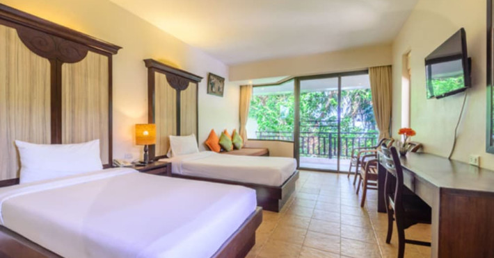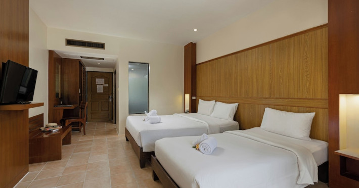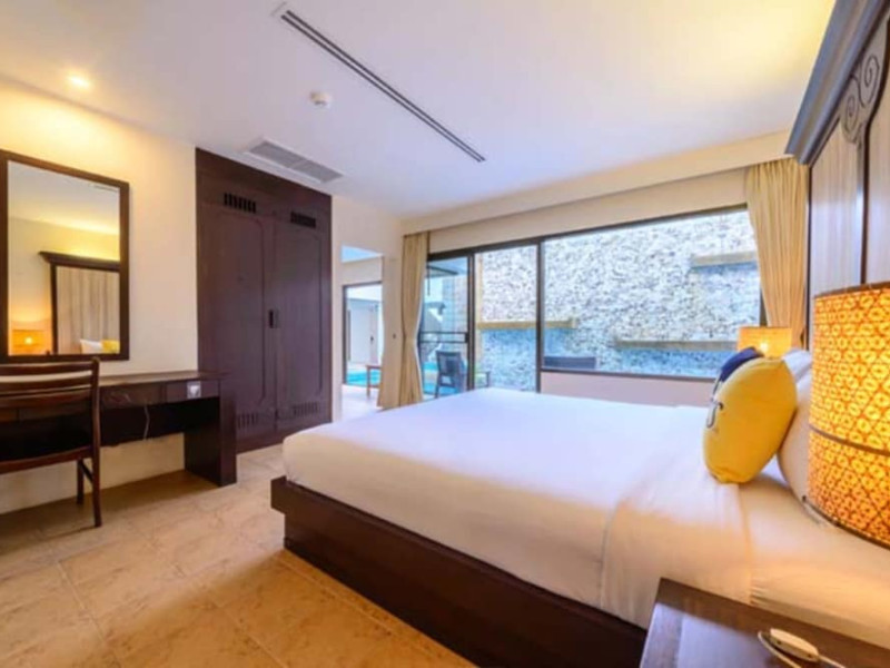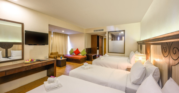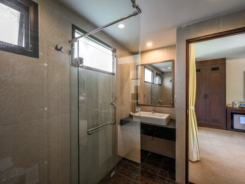 The air-conditioned rooms feature private balconies, wooden furnishings, and Thai decor. They are equipped with satellite TV, a safety deposit box, refrigerators, minibars, and complimentary Wi-Fi. Bathrooms include complimentary toiletries and hair dryers.