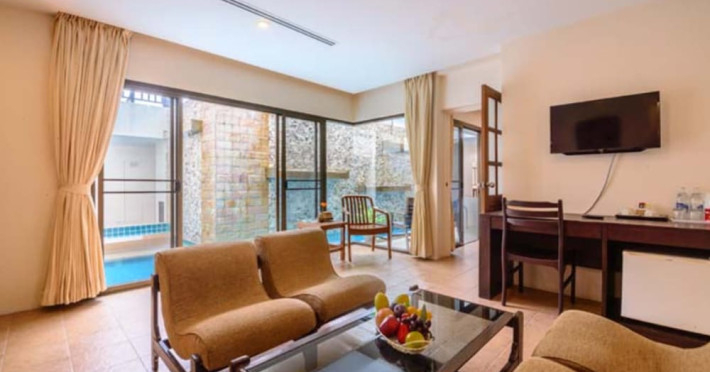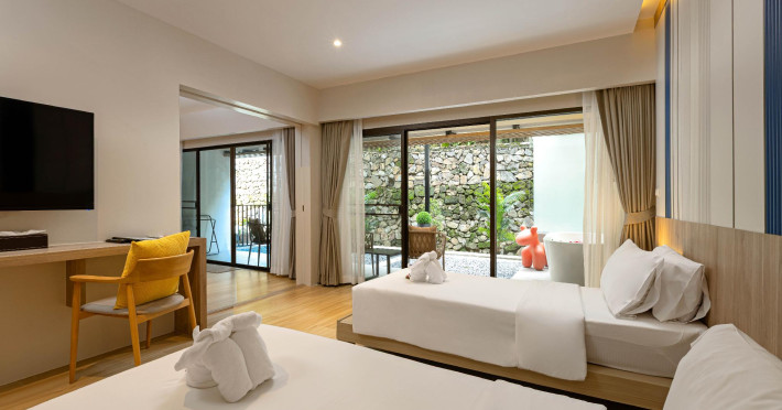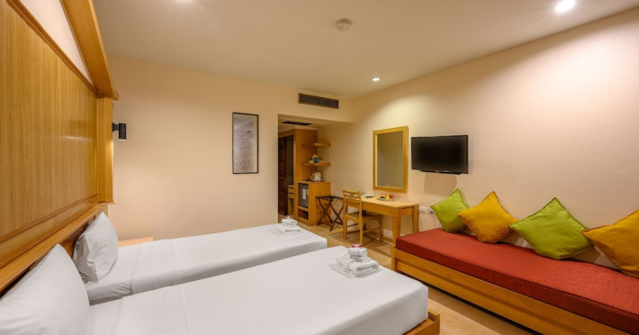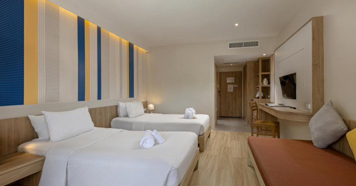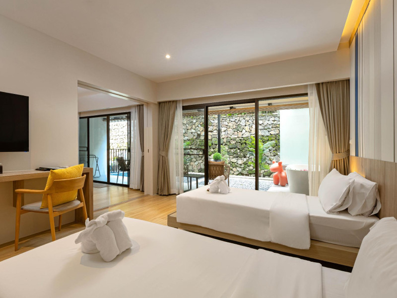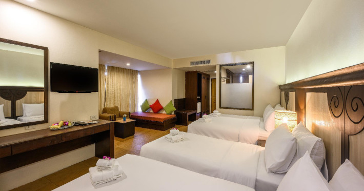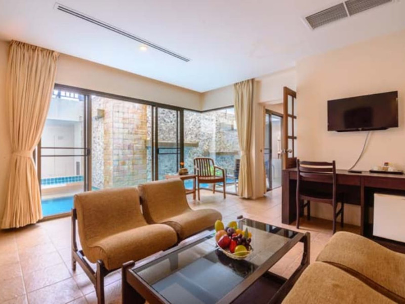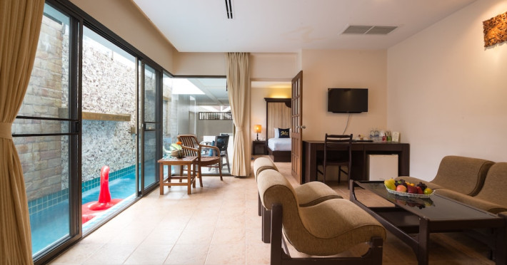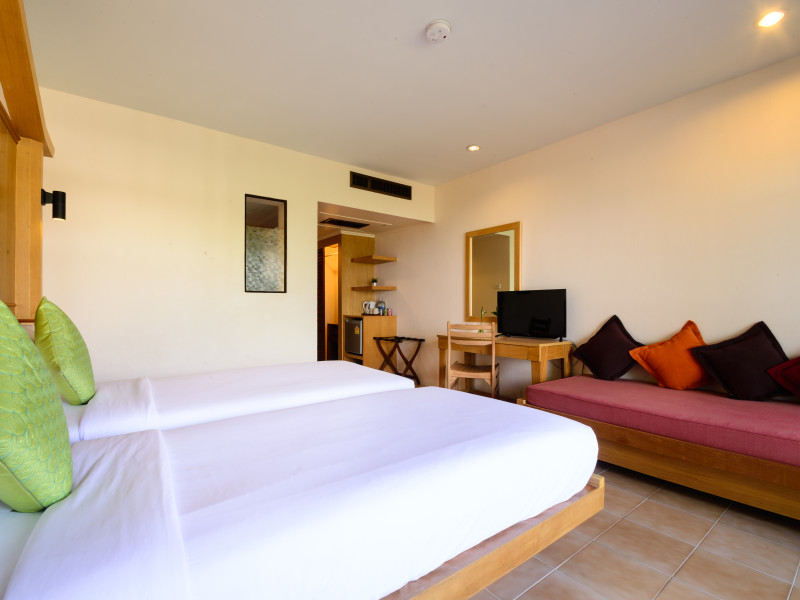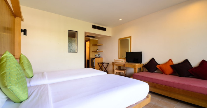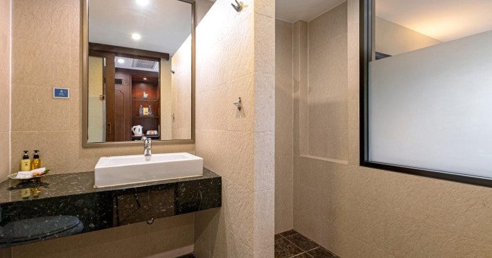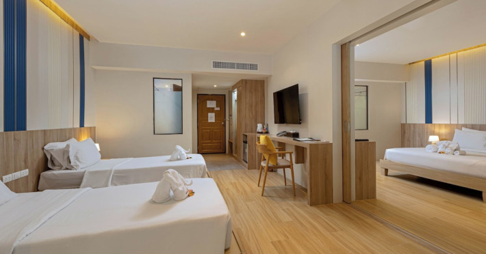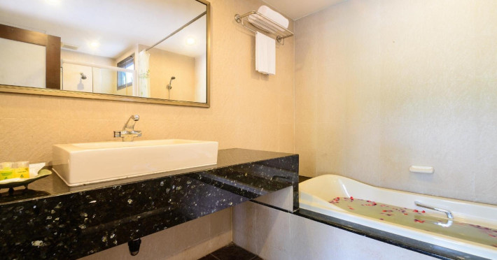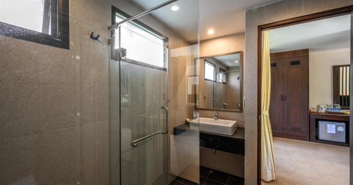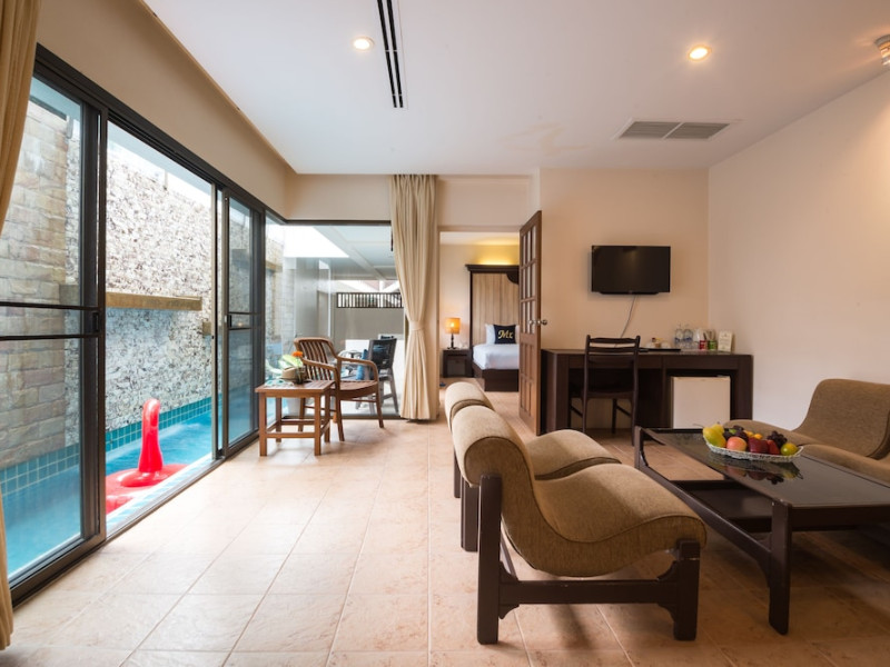 The air-conditioned rooms feature private balconies, wooden furnishings, and Thai decor. They are equipped with satellite TV, a safety deposit box, refrigerators, minibars, and complimentary Wi-Fi. Bathrooms include complimentary toiletries and hair dryers.