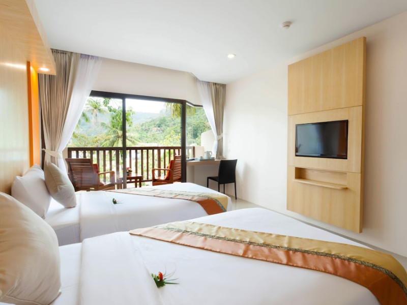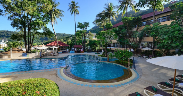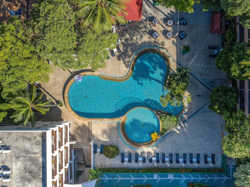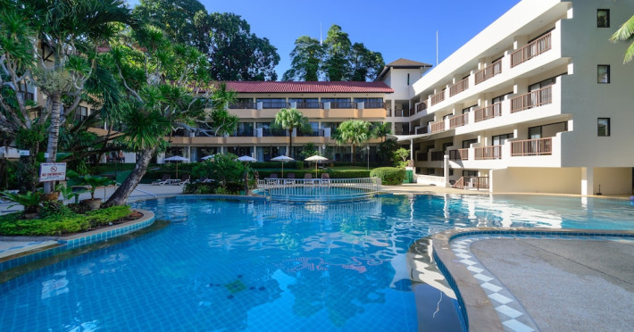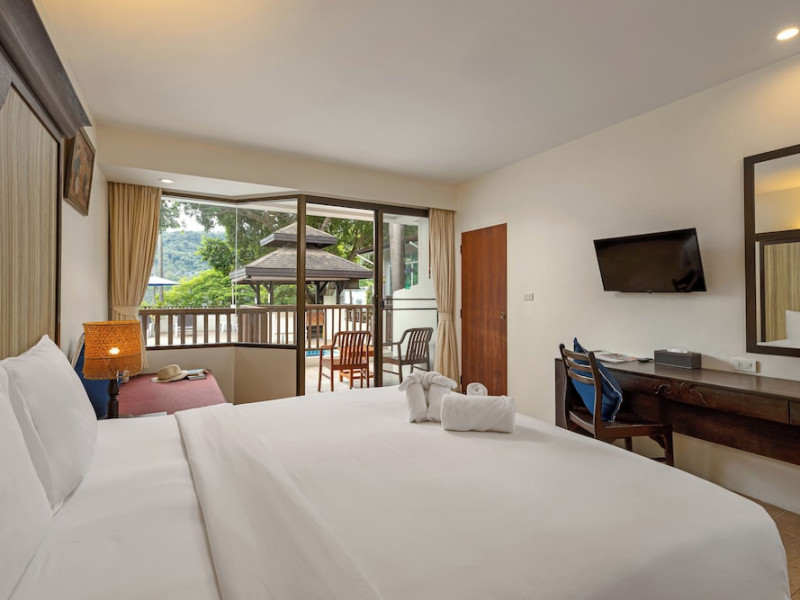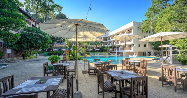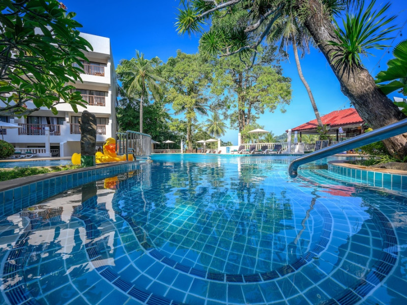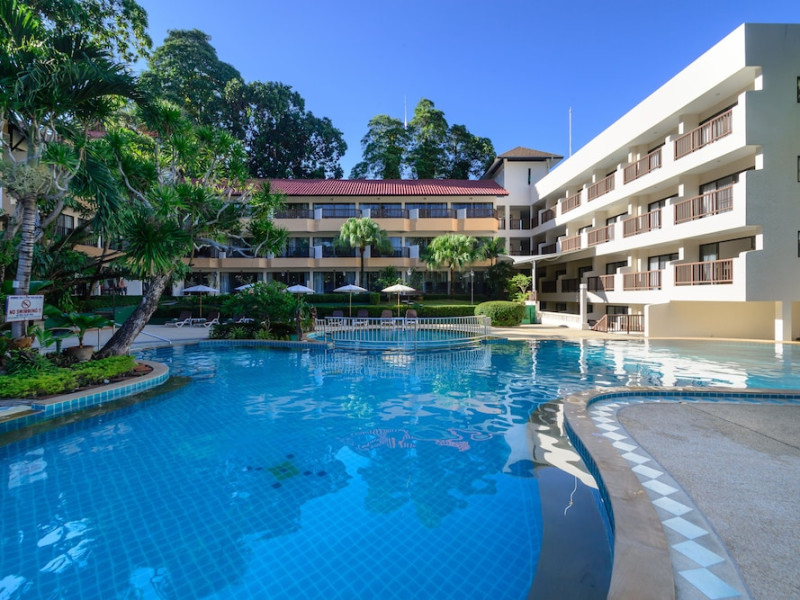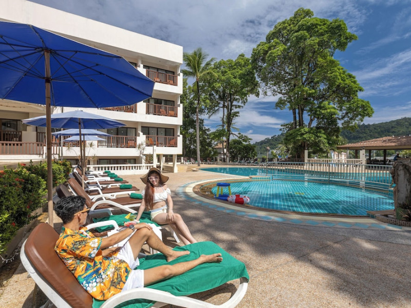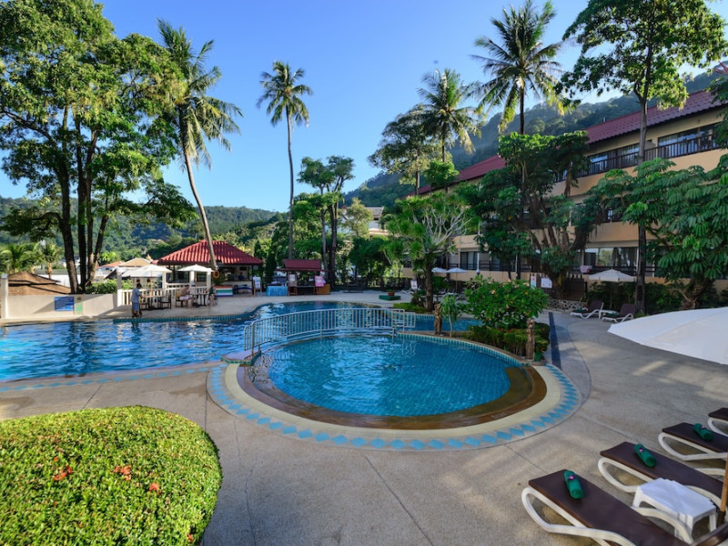 Patong Lodge Hotel is located on a peaceful hill facing Kalim Beach, on the northern end of Patong Beach, and a short walk from Patong Beach. It features an outdoor pool and three dining options, including the Ocean View Restaurant which serves Thai and international dishes with views of the tropical gardens. Coco Bar and Terrace Bar also offer snacks and drinks. Room service is available. The hotel offers complimentary Wi-Fi, concierge services, tour bookings, car/jeep rentals, currency exchange, luggage storage, and laundry services. A complimentary shuttle is available to the beach or shopping.