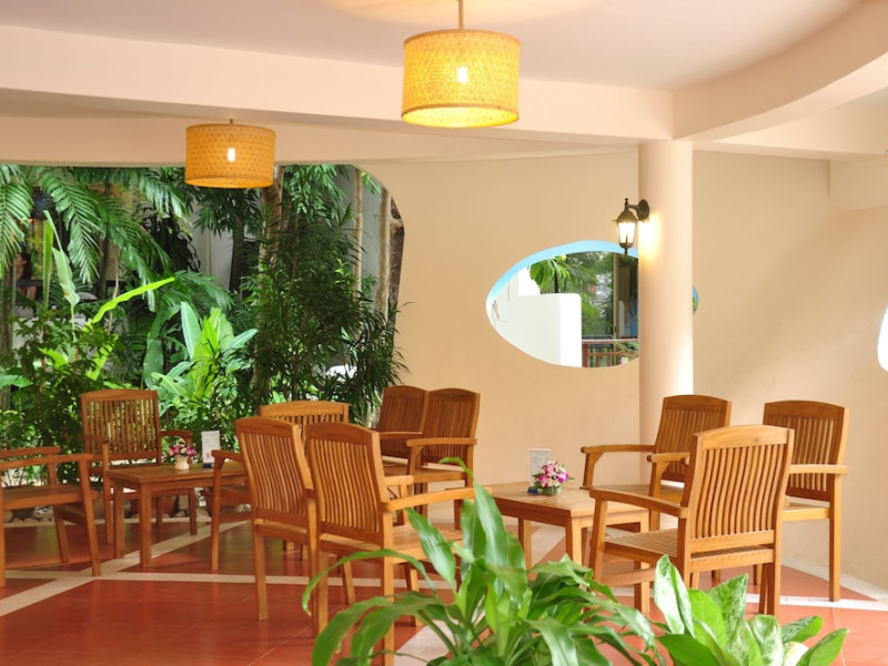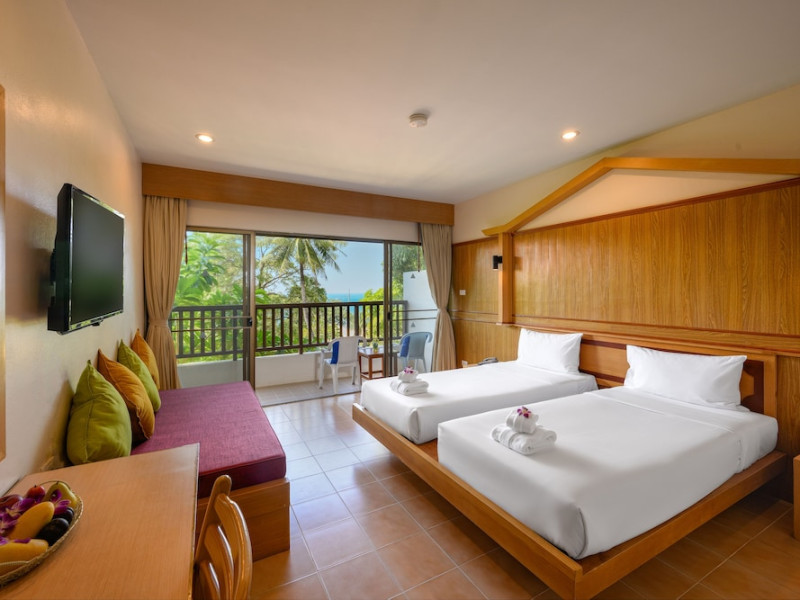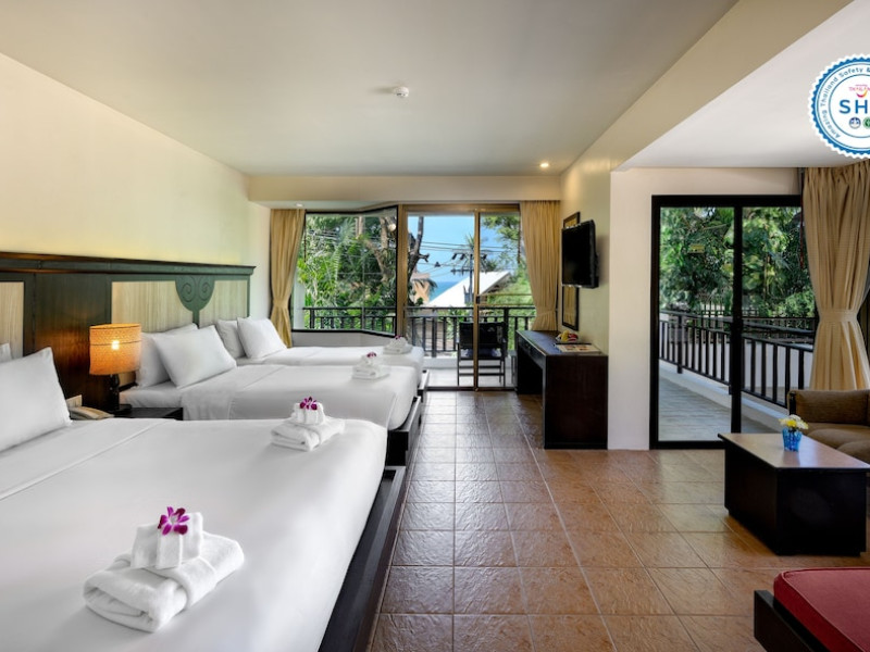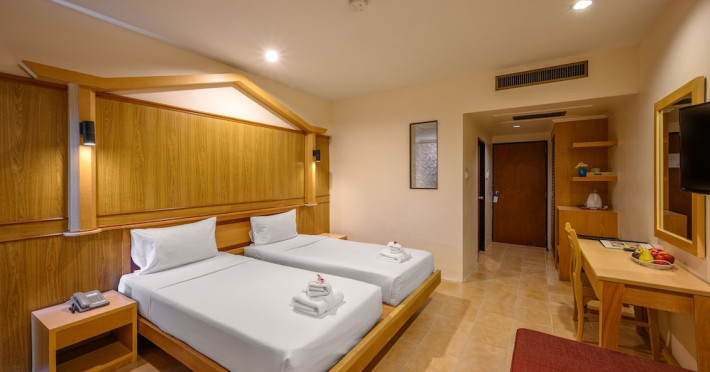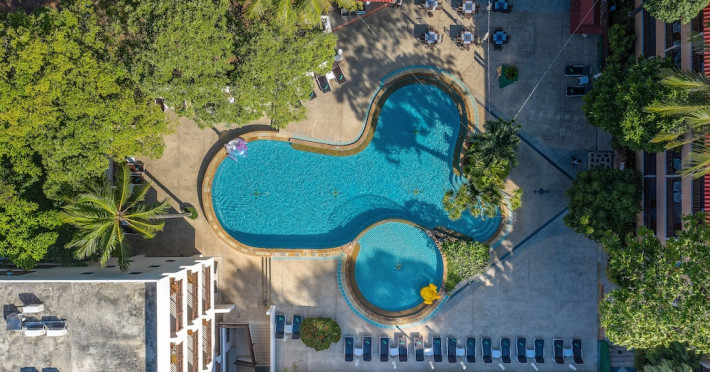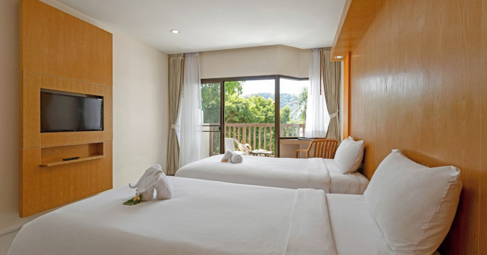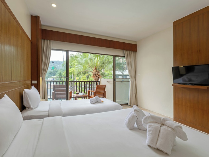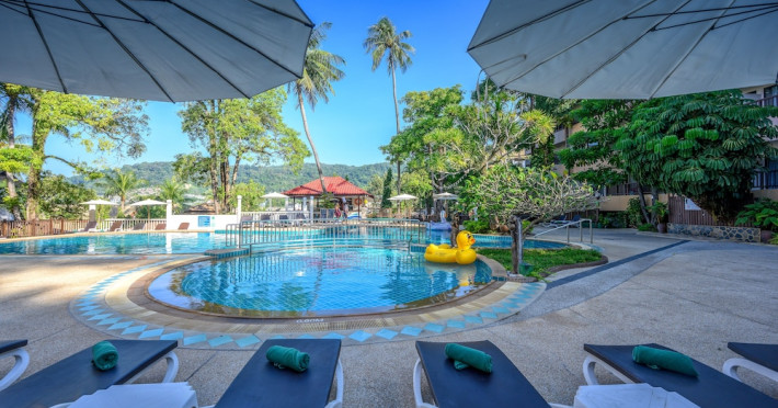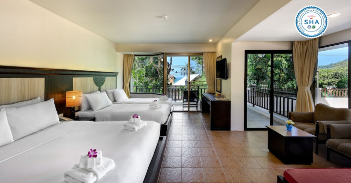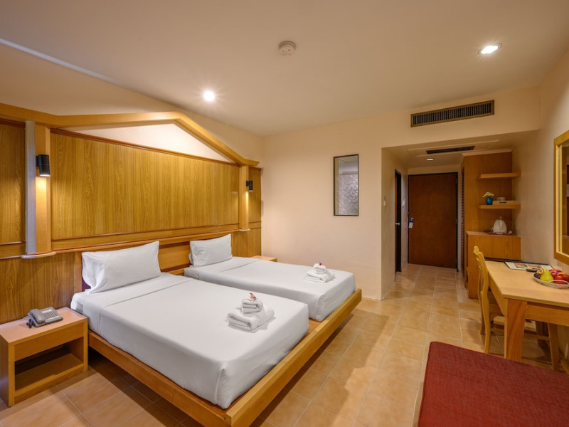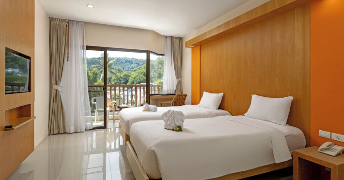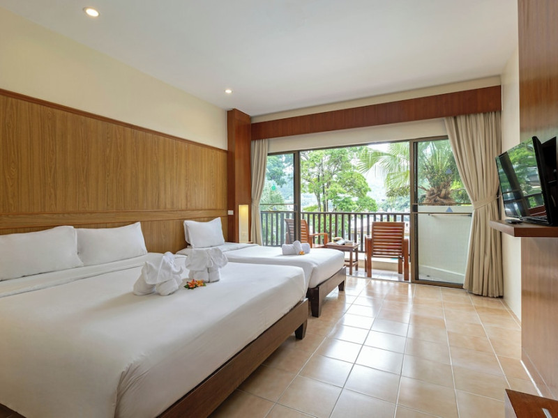 Patong Lodge Hotel is located on a peaceful hill facing Kalim Beach, on the northern end of Patong Beach, and a short walk from Patong Beach. It features an outdoor pool and three dining options, including the Ocean View Restaurant which serves Thai and international dishes with views of the tropical gardens. Coco Bar and Terrace Bar also offer snacks and drinks. Room service is available. The hotel offers complimentary Wi-Fi, concierge services, tour bookings, car/jeep rentals, currency exchange, luggage storage, and laundry services. A complimentary shuttle is available to the beach or shopping.