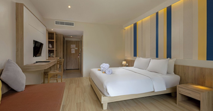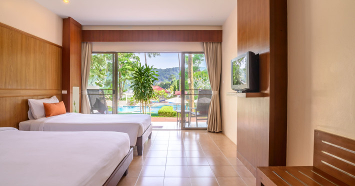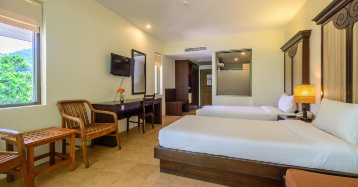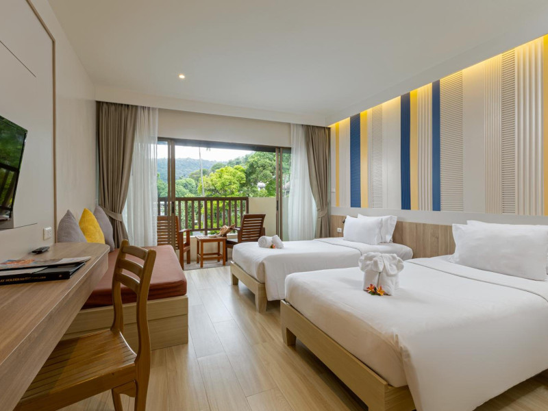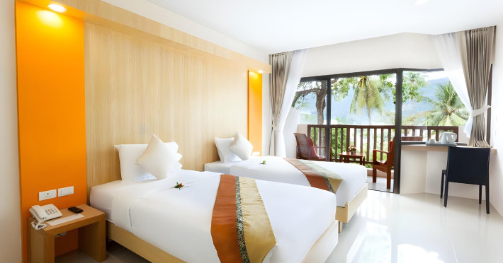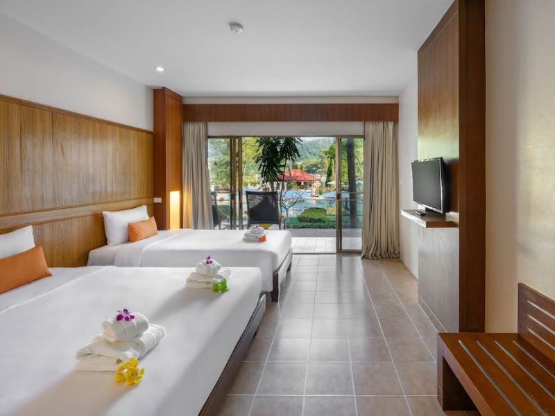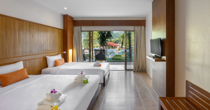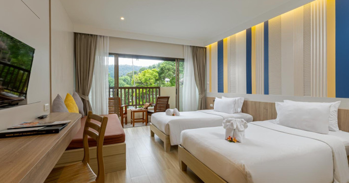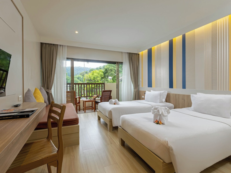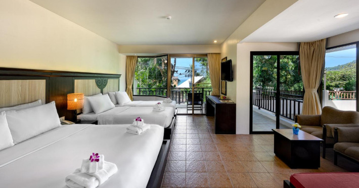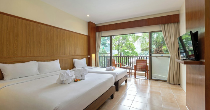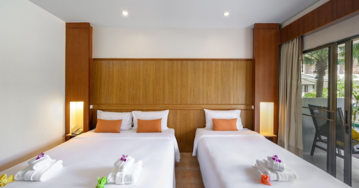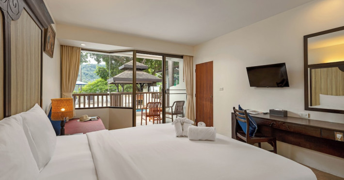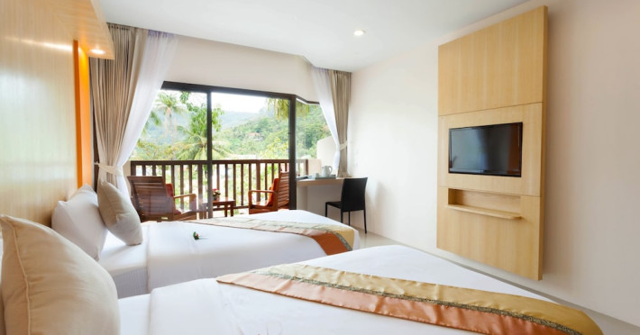 Patong Lodge Hotel is located on a peaceful hill facing Kalim Beach, on the northern end of Patong Beach, and a short walk from Patong Beach. It features an outdoor pool and three dining options, including the Ocean View Restaurant which serves Thai and international dishes with views of the tropical gardens. Coco Bar and Terrace Bar also offer snacks and drinks. Room service is available. The hotel offers complimentary Wi-Fi, concierge services, tour bookings, car/jeep rentals, currency exchange, luggage storage, and laundry services. A complimentary shuttle is available to the beach or shopping.