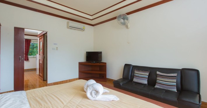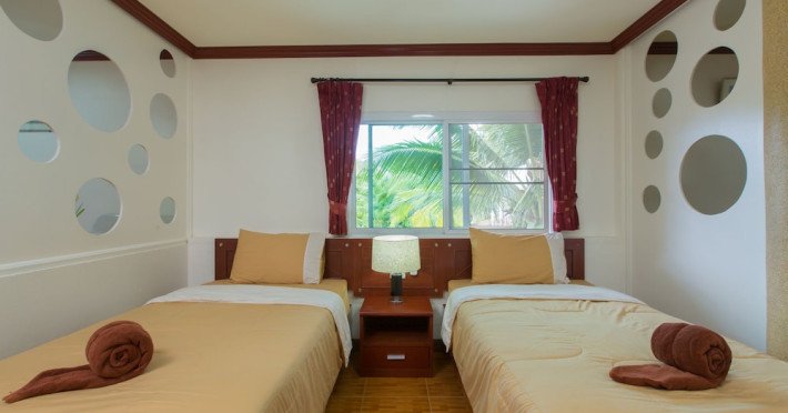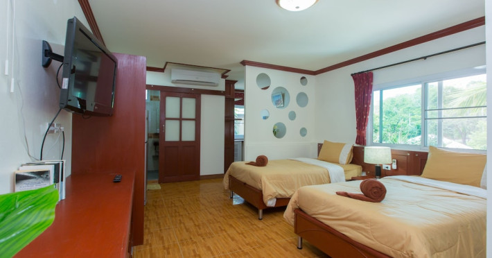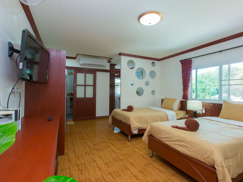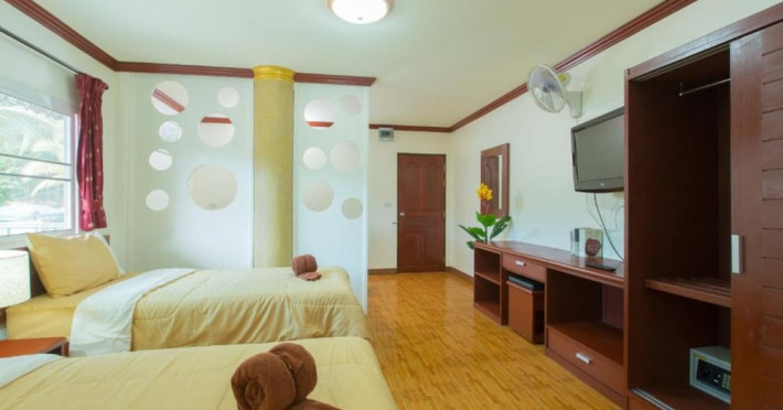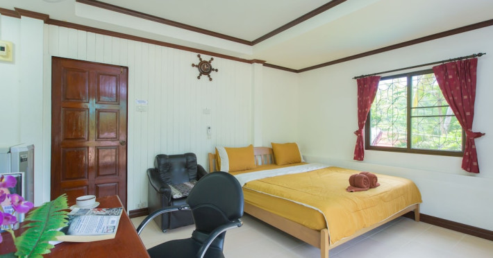 The hotel is located in a quiet hillside area of Patong, offering a peaceful retreat while still being close to Patong’s vibrant town center (3.5 km) and Patong Beach (3 km). The hotel location is within close proximity of Bangla Boxing Stadium (2.5 km) and Jungceylon Shopping Center (3.5 km). The hotel is best accessed via Phuket International Airport, which is 42 km away. Patong Rai Rom Yen Resort SHA offers room service, Wi-Fi in public places, a non-smoking property, shuttle services available for exploring Phuket, self-parking, daily housekeeping, safety deposit box at the front desk, and luggage storage. Guests can enjoy a 24-hour fitness center, children's pool, outdoor pool, bar/lounge area, restaurant (07:00 am to 22:00 pm), and 24-hour front desk. The 32 air-conditioned rooms feature private bathrooms with showers and complimentary toiletries, hairdryers, towels, refrigerators, TVs with cable/satellite channels, desks, in-room safety deposit boxes, kitchenettes, microwaves, kettles, and coffee/tea makers. The Patong Rai Rom Yen Resort SHA is a hotel. Located in Beach - Patong Beach area.