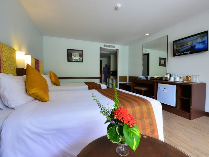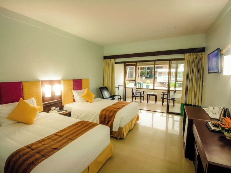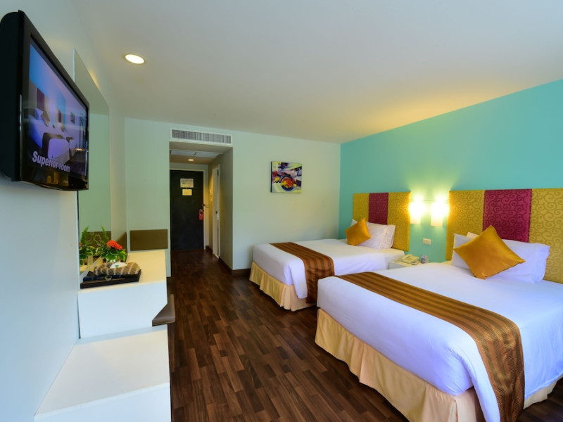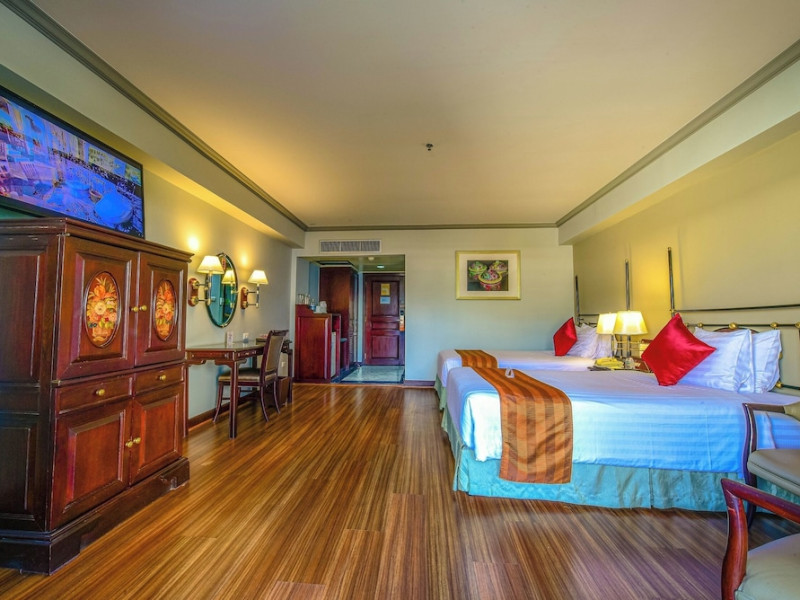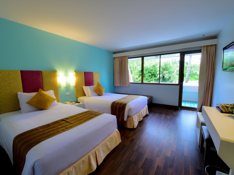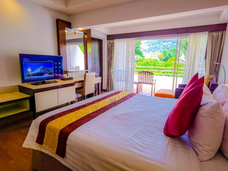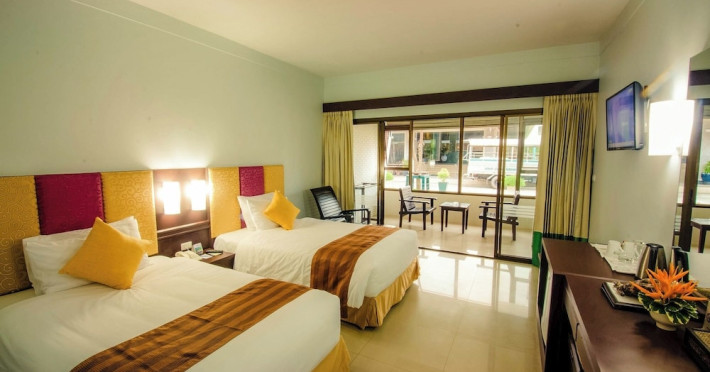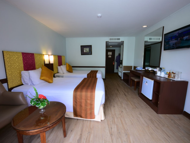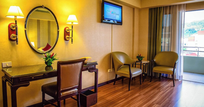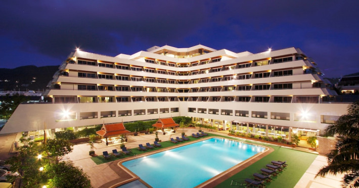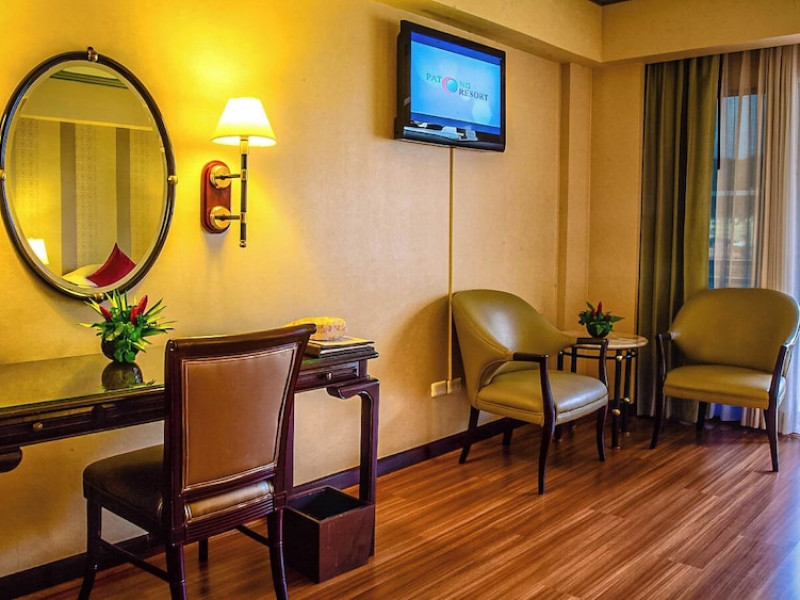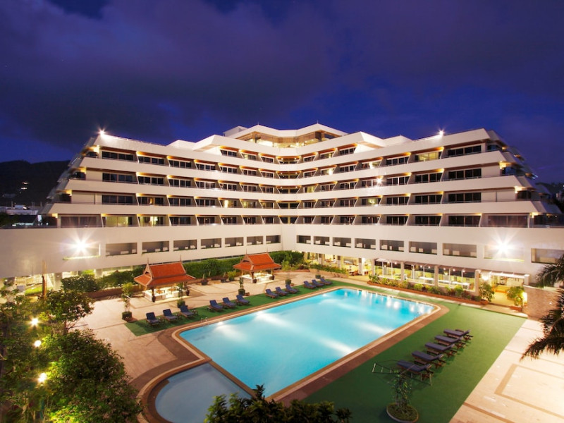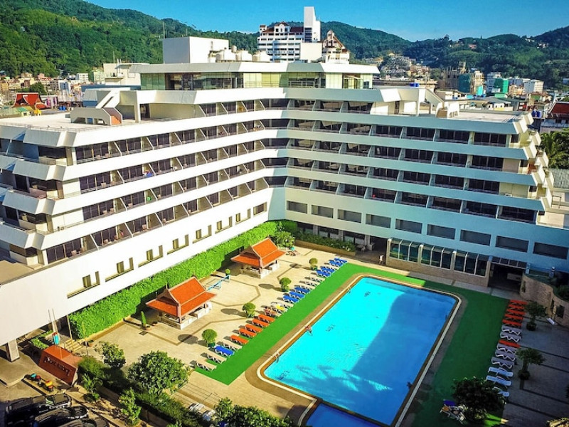 Patong Resort is a family-friendly hotel located a short walk from Patong Beach and Bangla Road in the heart of Patong's entertainment and shopping district. The resort features a cruise-ship style design, surrounded by lush greenery and close proximity to the beach. It offers 325 air-conditioned guestrooms, each with a private balcony, complimentary Wi-Fi, and cable programming. Bathrooms include complimentary toiletries and hair dryers. The hotel boasts four restaurants serving Thai, international, and Eastern European cuisine, a coffee shop/cafe with snacks, and four bars/lounges, including two poolside bars. Amenities include two outdoor swimming pools, a fitness center, a full-service spa offering massages, a business center, complimentary newspapers, dry cleaning/laundry services, conference space, meeting rooms, a gift shop, babysitting services (surcharge), and free valet parking. Airport shuttle service is available for a surcharge (during limited hours). Buffet breakfast is available daily for a fee. Nearby attractions include Jungceylon Shopping Center, Banana Walk, and various markets and entertainment venues (distances provided in description). Phuket International Airport (HKT) is approximately 32.6 km away. The Patong Resort Hotel is a Beach Resort, Leisure, Tourist hotel. The nightlife/restaurants are within walking distance from the hotel.