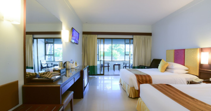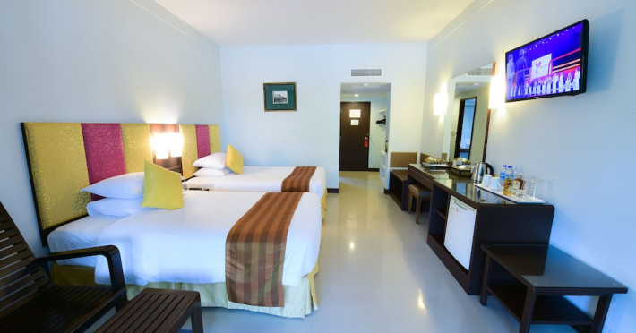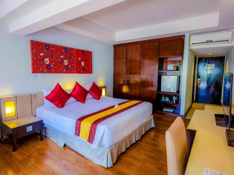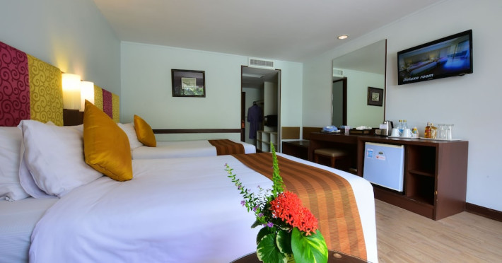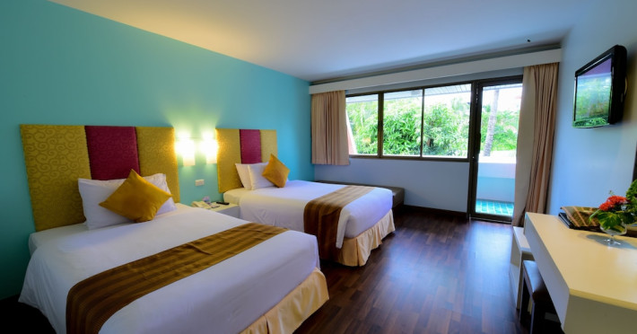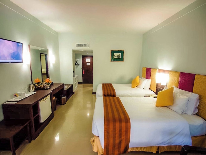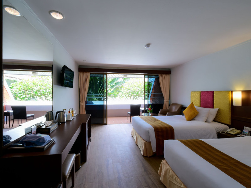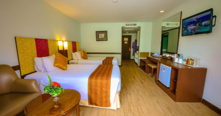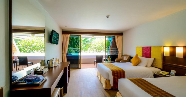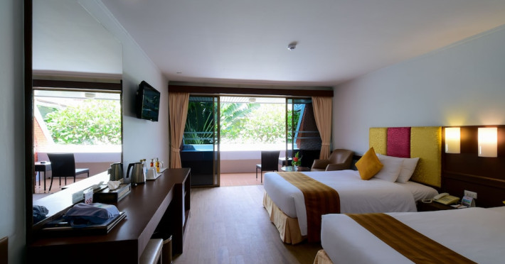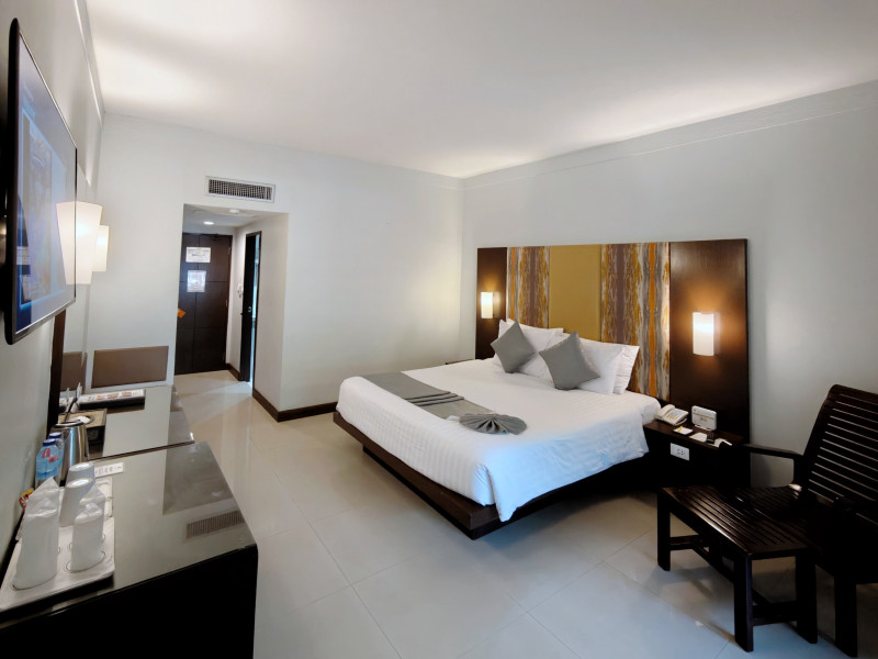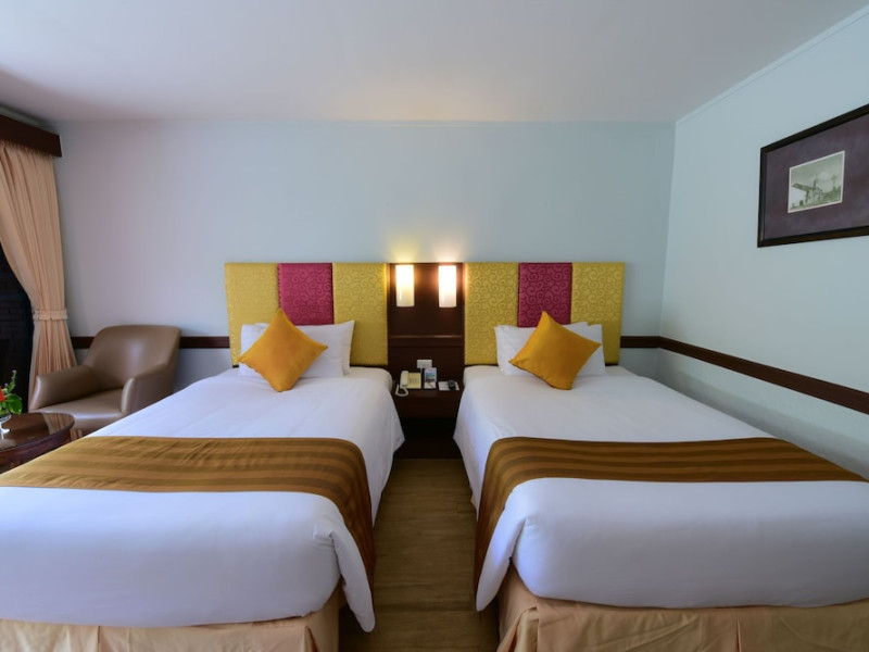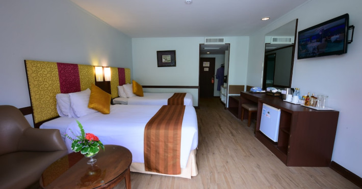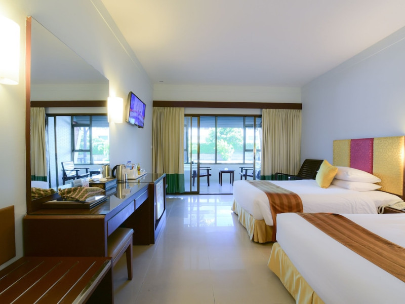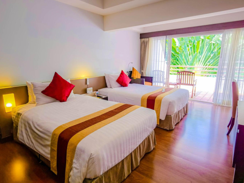 Patong Resort is a family-friendly hotel located a short walk from Patong Beach and Bangla Road in the heart of Patong's entertainment and shopping district. The resort features a cruise-ship style design, surrounded by lush greenery and close proximity to the beach. It offers 325 air-conditioned guestrooms, each with a private balcony, complimentary Wi-Fi, and cable programming. Bathrooms include complimentary toiletries and hair dryers. The hotel boasts four restaurants serving Thai, international, and Eastern European cuisine, a coffee shop/cafe with snacks, and four bars/lounges, including two poolside bars. Amenities include two outdoor swimming pools, a fitness center, a full-service spa offering massages, a business center, complimentary newspapers, dry cleaning/laundry services, conference space, meeting rooms, a gift shop, babysitting services (surcharge), and free valet parking. Airport shuttle service is available for a surcharge (during limited hours). Buffet breakfast is available daily for a fee. Nearby attractions include Jungceylon Shopping Center, Banana Walk, and various markets and entertainment venues (distances provided in description). Phuket International Airport (HKT) is approximately 32.6 km away. The Patong Resort Hotel is a Beach Resort, Leisure, Tourist hotel. The nightlife/restaurants are within walking distance from the hotel.