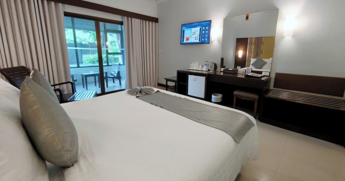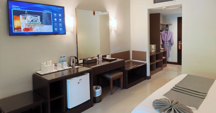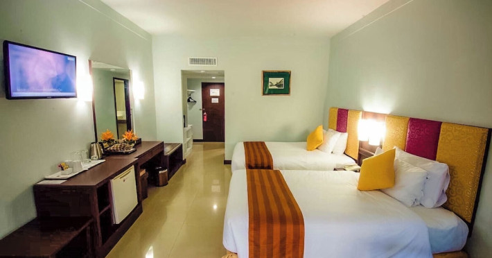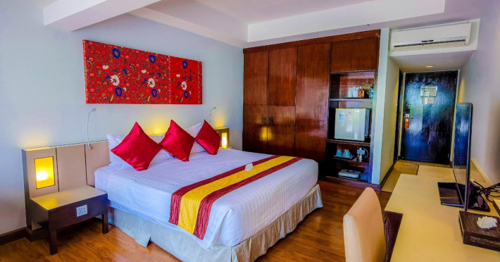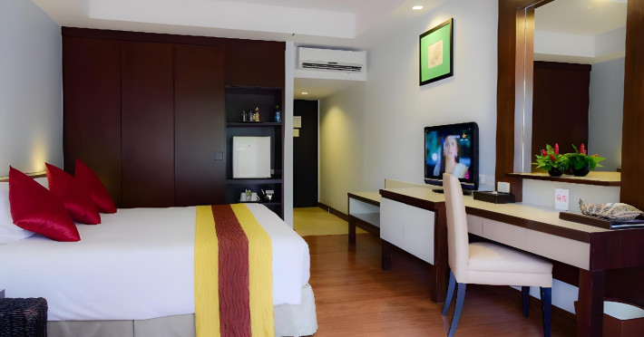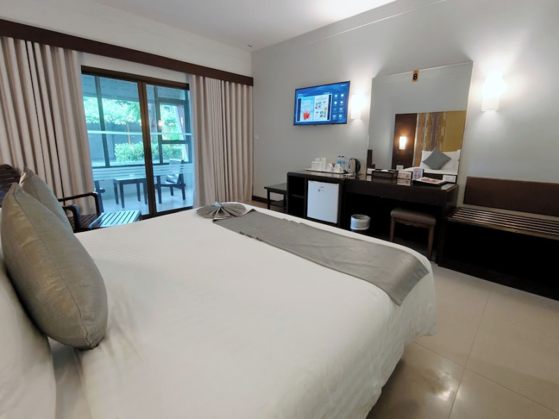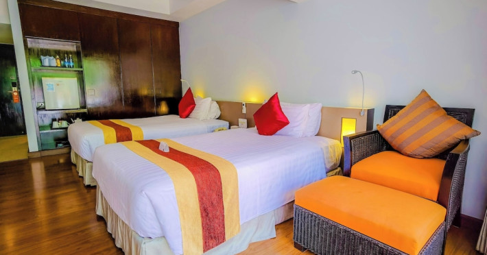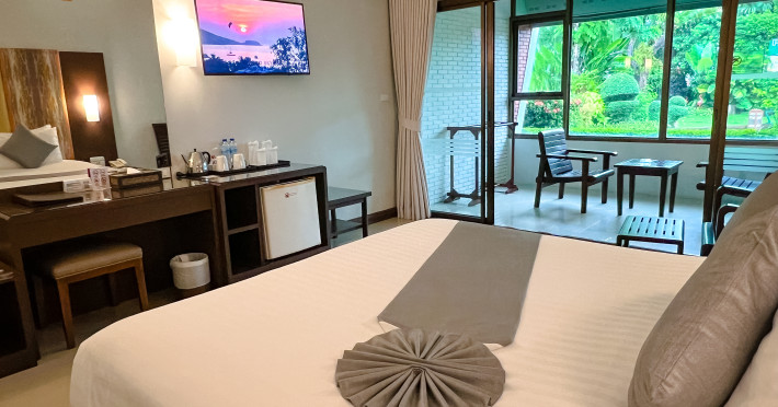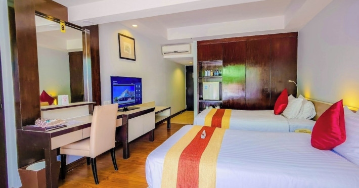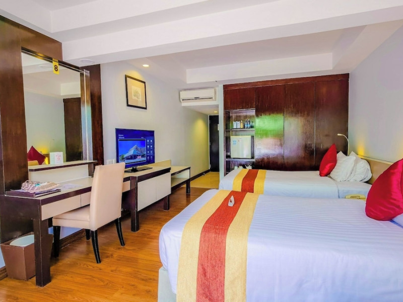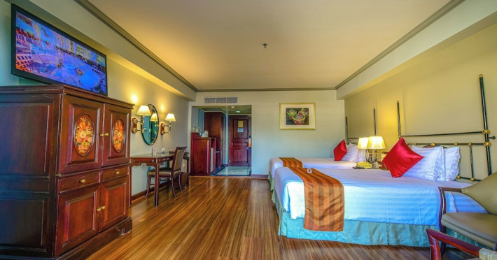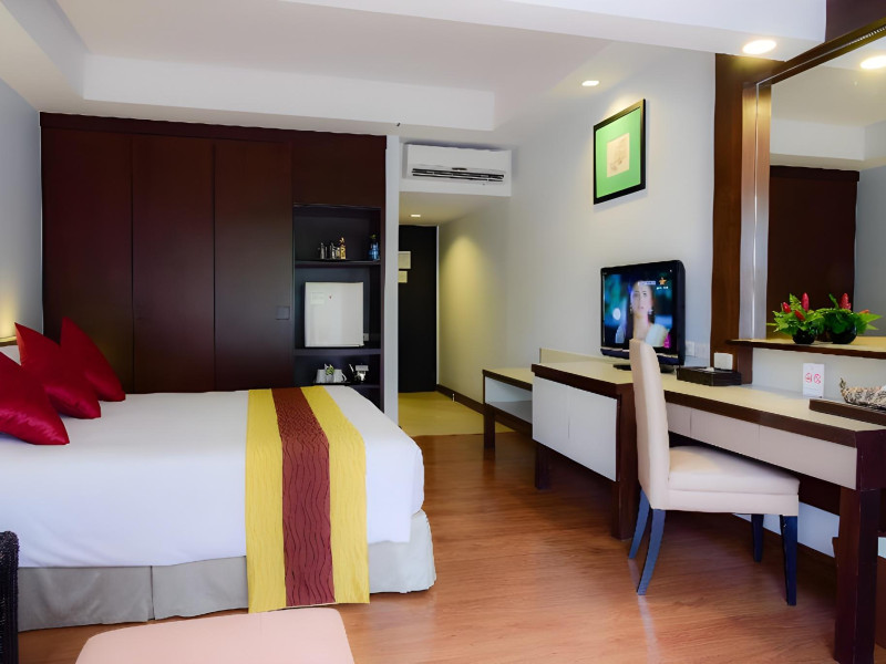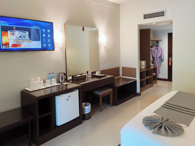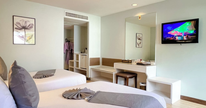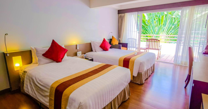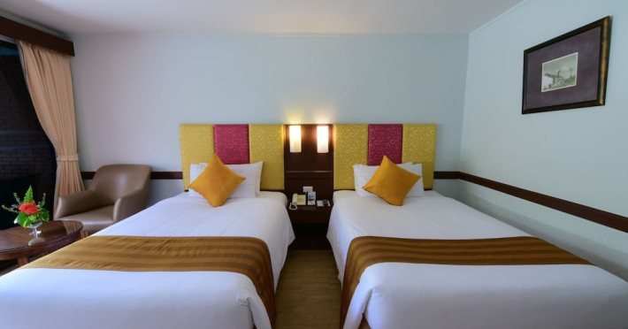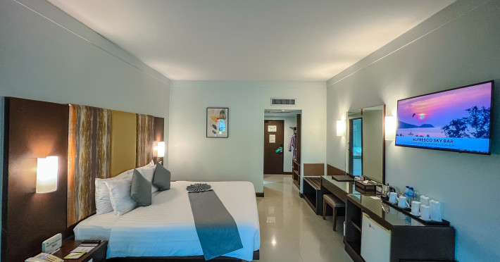 Patong Resort is a family-friendly hotel located a short walk from Patong Beach and Bangla Road in the heart of Patong's entertainment and shopping district. The resort features a cruise-ship style design, surrounded by lush greenery and close proximity to the beach. It offers 325 air-conditioned guestrooms, each with a private balcony, complimentary Wi-Fi, and cable programming. Bathrooms include complimentary toiletries and hair dryers. The hotel boasts four restaurants serving Thai, international, and Eastern European cuisine, a coffee shop/cafe with snacks, and four bars/lounges, including two poolside bars. Amenities include two outdoor swimming pools, a fitness center, a full-service spa offering massages, a business center, complimentary newspapers, dry cleaning/laundry services, conference space, meeting rooms, a gift shop, babysitting services (surcharge), and free valet parking. Airport shuttle service is available for a surcharge (during limited hours). Buffet breakfast is available daily for a fee. Nearby attractions include Jungceylon Shopping Center, Banana Walk, and various markets and entertainment venues (distances provided in description). Phuket International Airport (HKT) is approximately 32.6 km away. The Patong Resort Hotel is a Beach Resort, Leisure, Tourist hotel. The nightlife/restaurants are within walking distance from the hotel.