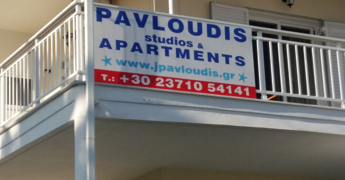 Welcome to Pavloudis ApartmentsIn the beautiful settlement of Psakoudia (Sithonia, Chalkidiki, Greece) the place where we were born, raised and love, we created a complex of apartments and studios.There are 3 double studios that can accommodate up to 3 person with an extra bed, 2 triple studios and 4 apartments with a lounge-kitchen and a bedroom.Our rooms are spacious, spotlessly clean, with all amenities, overlooking the lush landscaped garden and will make you feel truly like at home.Let your children play carefree on the playground while enjoying your coffee and surfing the Net.For those of you who want to keep fit there is a fully equiped gym where you can work out for free and take advice about training and nutrition.You can park safely your car in the private shaded parking.The sea is just 5 minutes away on foot , while a few meters away you will find supermarkets, shops and restaurants .We are sure that you will find here the ideal place for an enjoyable and relaxing holidays.Distance from the sea 250 mDistance from Thessaloniki 80 kmDistance from Macedonia Airport (SKG) 70 km
