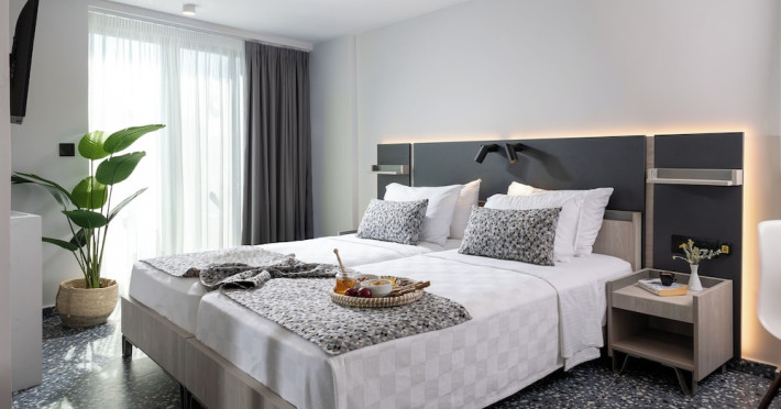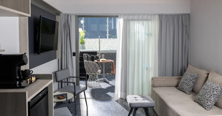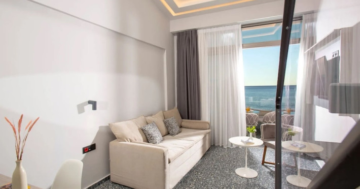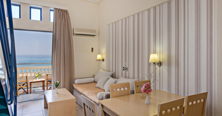 Facilities and services include bar, car parking, children's pool, conference/banquet facilities, gym/fitness facilities, indoor pool, massage, pool, restaurant, sauna, sea view, shop(s), TV, and Wi-Fi.Rooms feature air conditioning, balcony/terrace, bath/shower combo, coffee/tea making facilities, hairdryer, kitchen(ette), safe in room, telephone, television, and Wi-Fi in Room.Please note that some of the above facilities may be closed due to weather / seasonal conditions.** Please note that the reception has limited opening hours from 8.00 to 24.00.** When booking this apartment it is important to advice time of arrival and flight information for arrival.Address: Afstralon Polemiston 31, 74100 Rethymnon Bay, Crete, Greece.