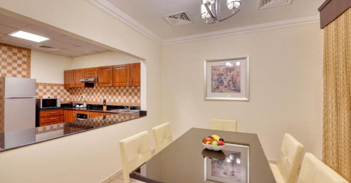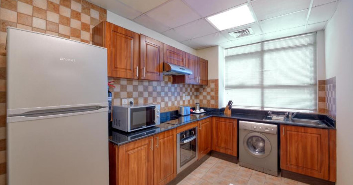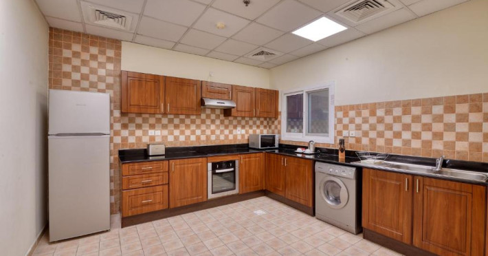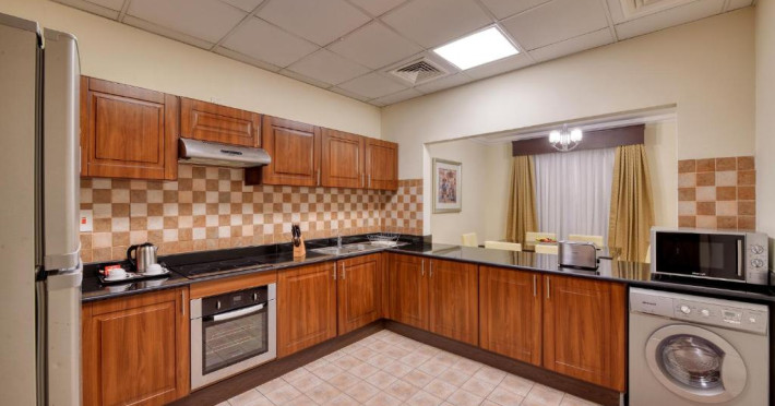 Bucătăria este dotată cu un cuptor cu microunde si cu facilităti pentru gătit. In baie se găsesc articole de toaletă gratuite, iar cele mai multe camere au masină de spălat. Are decor in culori deschise pastelate si podea cu gresie.