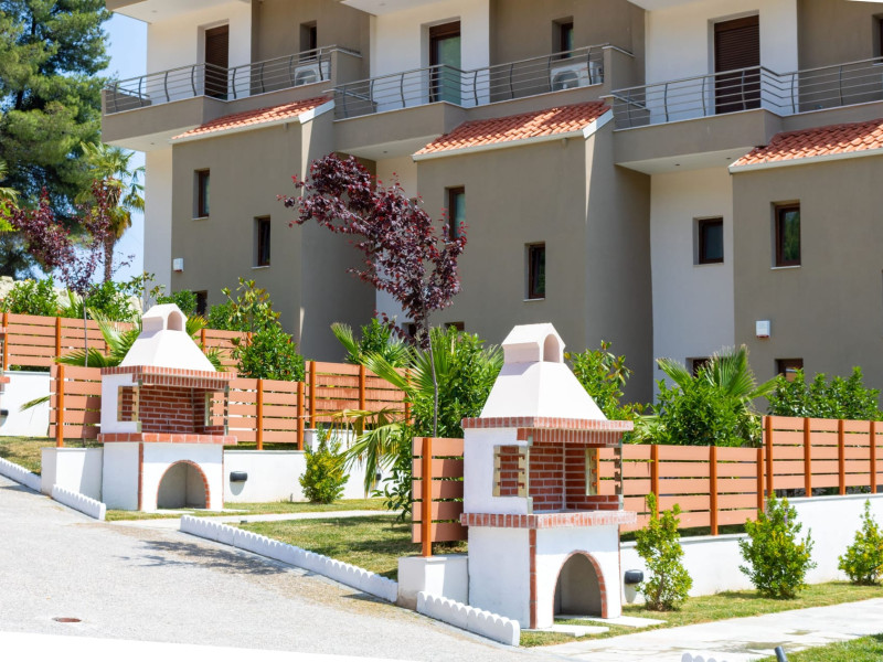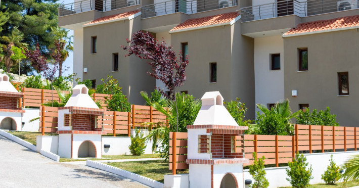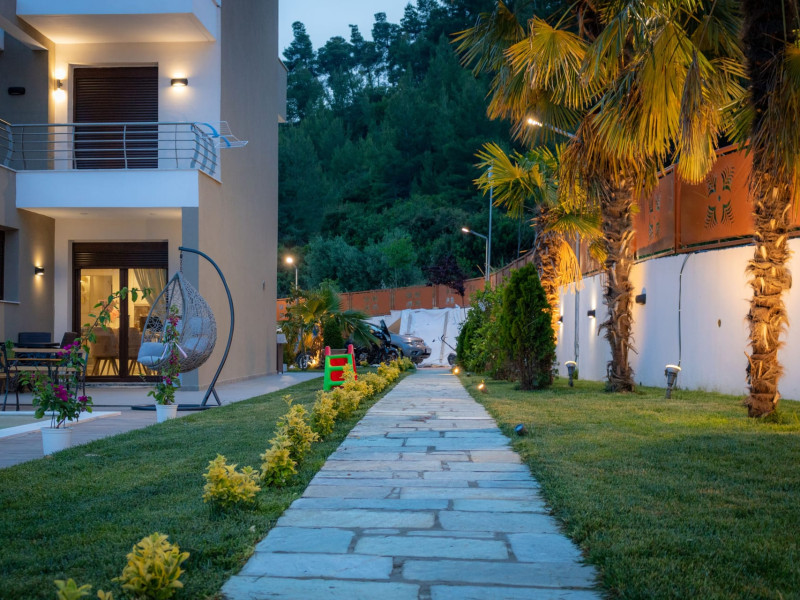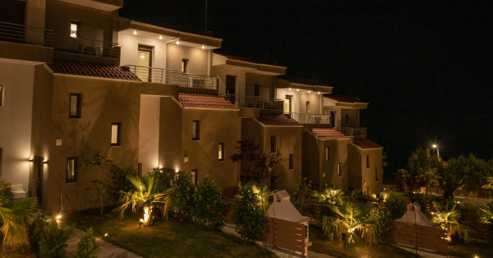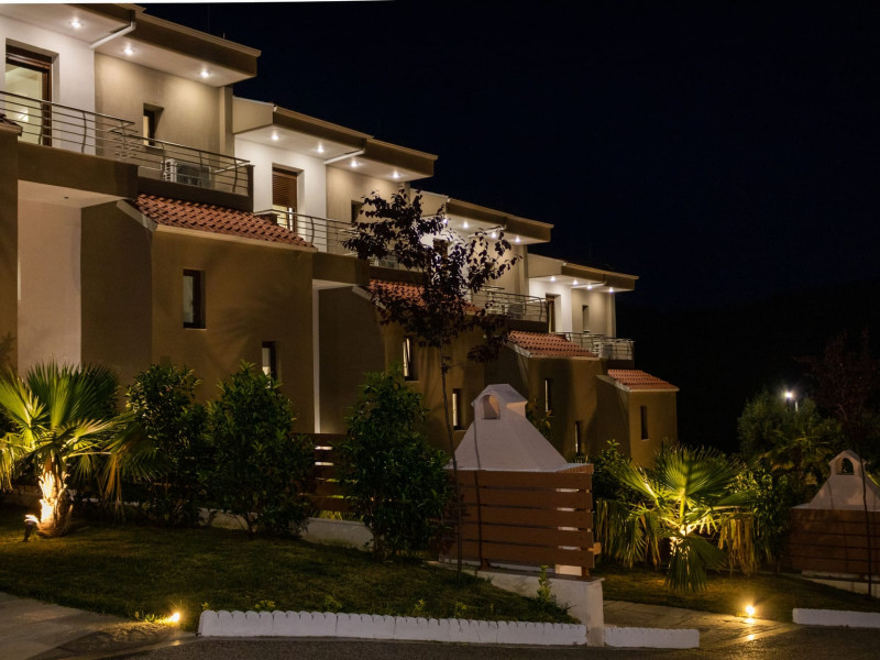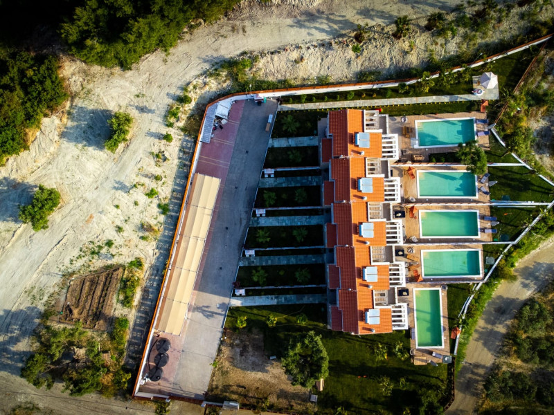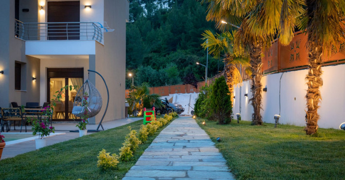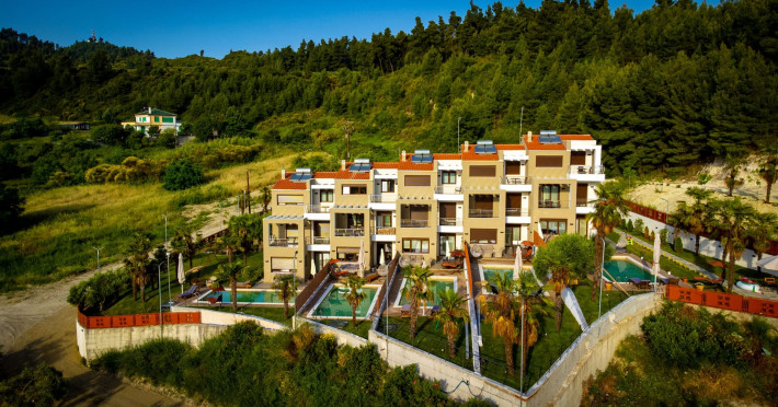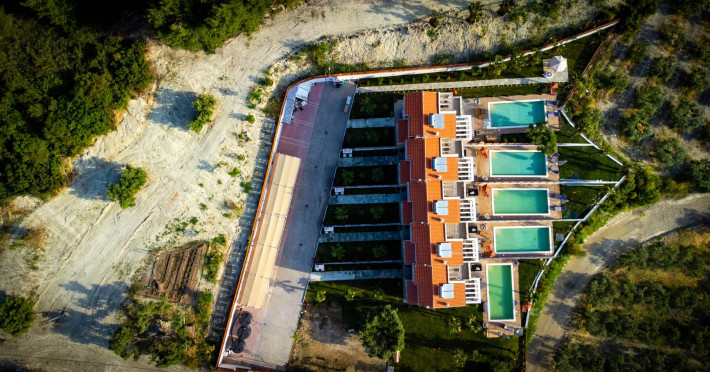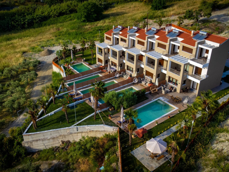 Pefkohori Golden Mountain Villas are located in Pefkohori, Chalkidiki. The 5 luxurious villas with individual private pools are located on a hill just 3 km from the center of Pefkohori and 1.3 km from the sandy beach. Each villa offers privacy, with 3 separate bedrooms and 3 bathrooms, and can accommodate up to 6 guests. The kitchen is fully equipped with all the essentials for a comfortable and self catered stay. Each Villa has a private pool which is surrounded by a private terrace with sunbeds. The location is ideal, as it offers privacy and tranquillity. Private parking is available on spot.
