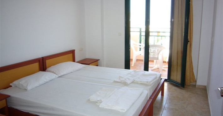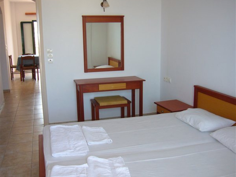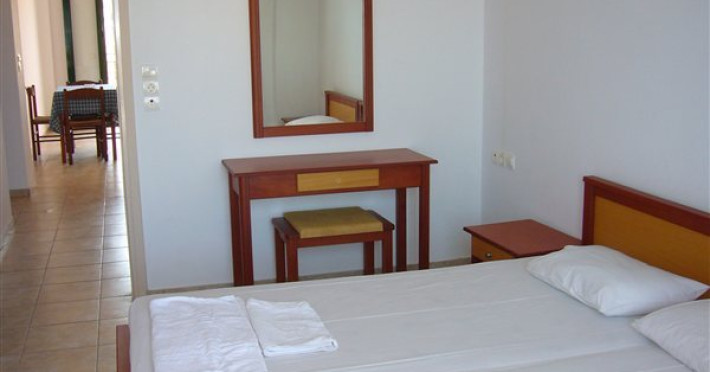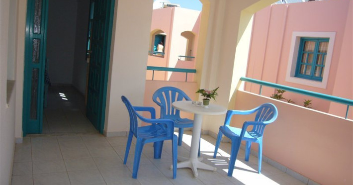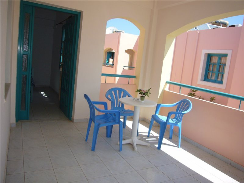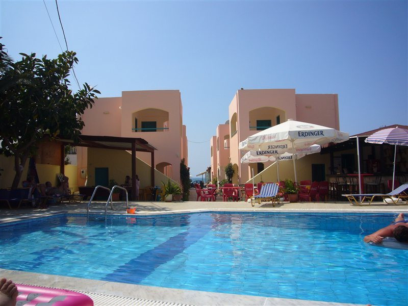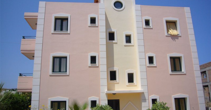 The hotel features swimming pool, pool bar, restaurant, cafe', mini market , satelite TV, games . Furnished studios and apartments, for 2 up to 4 persons, all equipped with air conditioning (extra charge), safety box (extra charge), fridge, cooking stove, cooking utensils and balcony. Address: 70014 Kato Gouves, Gouves, Crete, Greece.