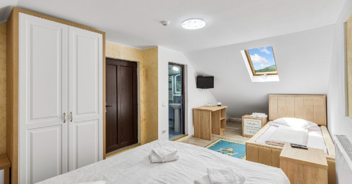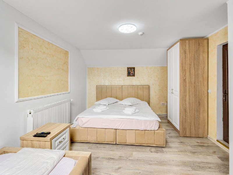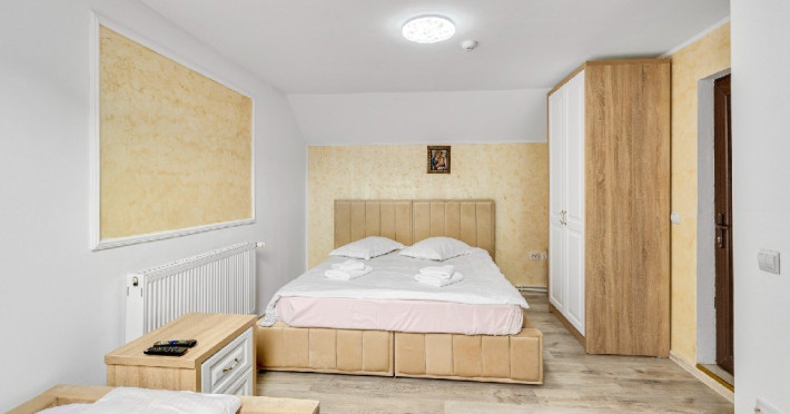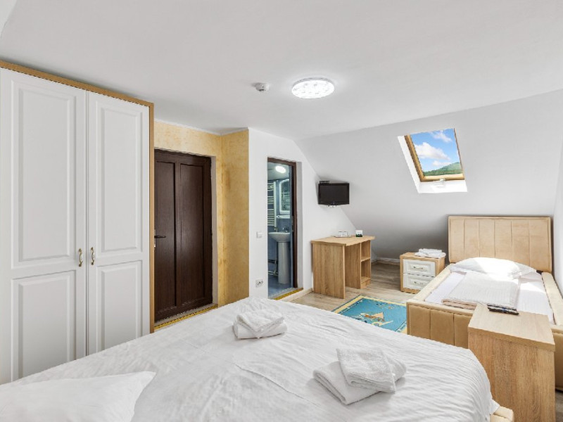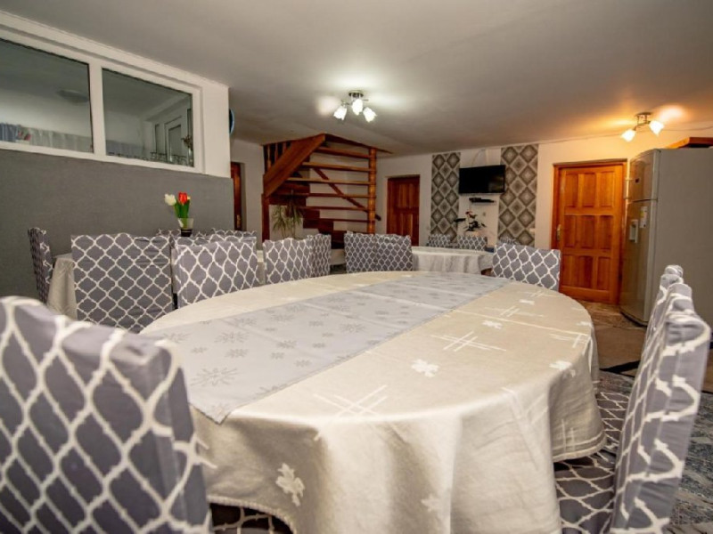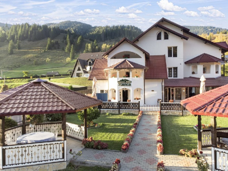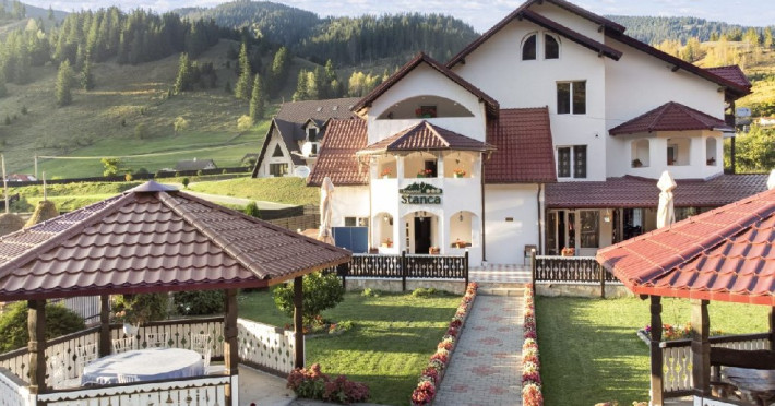 Pensiunea Domeniul Stanca situata in satul Sunatori, la 10 minute de centrul orasului Vatra Dornei, intre munti chiar langa raul Bistrita. Pensiunea dispune de 23 spatii de cazare, parcare privata disponibila gratuit, wi-fi, bucatarie complet utilata, restaurant, terasa, ciubar, sauna, piscina interioara, gradina cu foisor si facilitate de gratar. Unitatea accepta animale de companie. Restaurant propriu precum si o bucatarie complet utilata care este pusa la dispozitie oaspetilor. Pensiunea are 23 spatii de cazare: 21 camere duble ( 17 cu posibilitate de pat suplimentar) si 2 apartamente. Camerele sunt dotate cu: baie proprie, tv, Wi-Fi gratuit, incalzire.