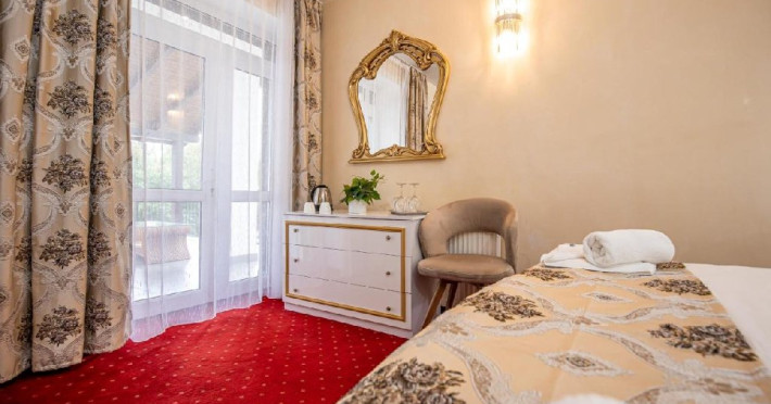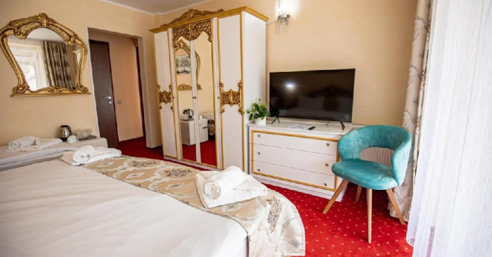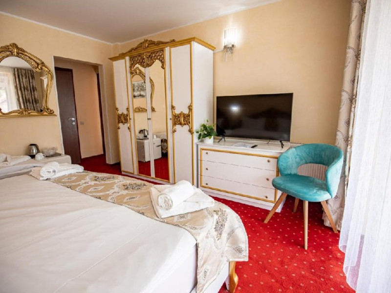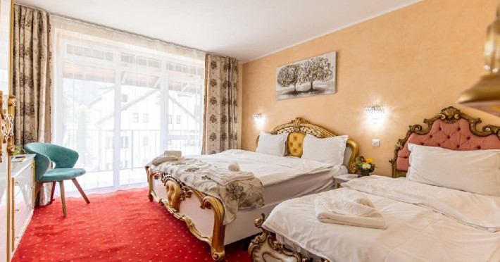 INFORMATII GENERALE Pensiunea Artemis se afla in statiunea Poiana Brasov, la doar 10 minute de mers pe jos de partiile de schi. FACILITATI UNITATE Proprietatea dispune de salon de mic dejun, terasa, Wi-Fi, parcare in limita locurilor disponibile. Langa pensiune sunt disponibile o scoala de schi si un centru de inchiriere de echipamente de schi. Accesul in interiorul vilei si in camere este disponibil 24/7 prin cod PIN. DESCRIERE CAMERE Camera dubla standard si camera dubla superioara cu vedere la munte dispun de un pat matrimonial. Camera tripla dispune de un pat matrimonial si un pat single. Apartamentul dispune de 2 camere, fiecare cu pat dublu matrimonial si o singura baie. Toate camerele sunt decorate cu gust, cu mobilier de inalta calitate, baie privata cu uscator de par, televizoare LED Smart care includ platforme de streaming (Netflix, YouTube), ceainice si balcoane cu vederi superbe. LOCALIZARE Pensiunea Artemis se afla in statiunea Poiana Brasov, la doar 10 minute de mers pe jos de partiile de schi. ATRACTII TURISTICE Castelul Bran, Castelul Peles, Cetatea Rasnov, Biserica Neagra, Dino Parc.
