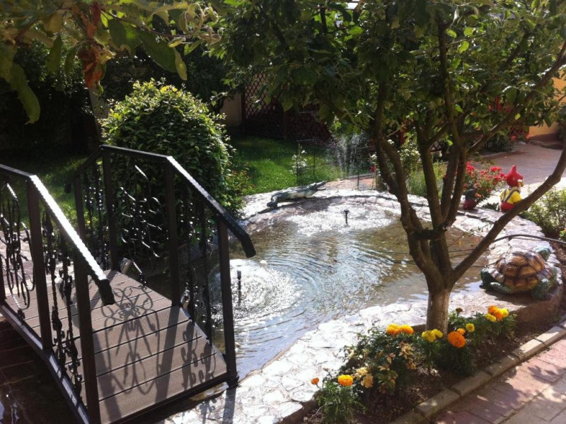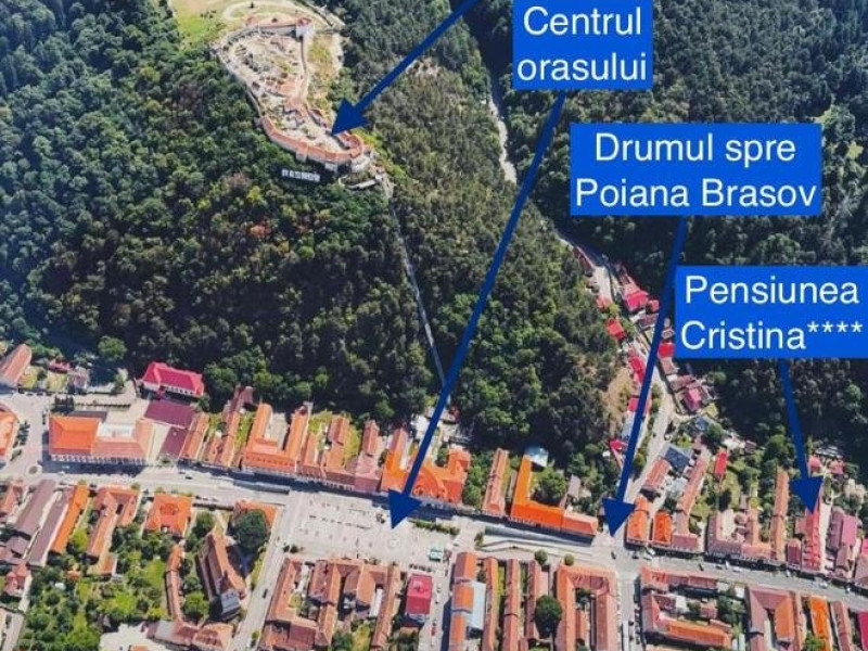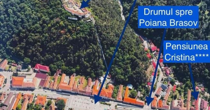 La baza impunatoarei Cetati a Rasnovului, in inima statiunii, intr-un cadru naturalfeeric, cu padurea intinzandu-se chiar in spatele curtii, Pensiunea Cristina vainvita sa descoperiti armonia perfecta dintre rafinament, confort si linisteanaturii. Situata la doar 200de metri de centrul orasului si de drumul ce duce spre Poiana Brasov, aceasta ofera accesrapid la principalele obiective turistice, atractiile montane side agrement din zona (Dino Parc, Magic Land etc.). Curtea pensiunii este un adevarat colt de rai. Cursul lin a unui mic parau cese varsa intr-un laculet, foisoarelecochete care oferaspatii ideale pentru relaxare, precum si spatiul dejoaca dedicat copiilor, fac din curtea pensiunii locul ideal de petrecere atimpului liber atat pentru cei mari, cat si pentru cei mici. Un loc de ofrumusete aparte este foisorul situat pe o pozitie mai inalta a curtii, lamarginea padurii, care dezvaluie o priveliste spectaculoasa asupra orasului Rasnovsi a muntilor inconjuratori.