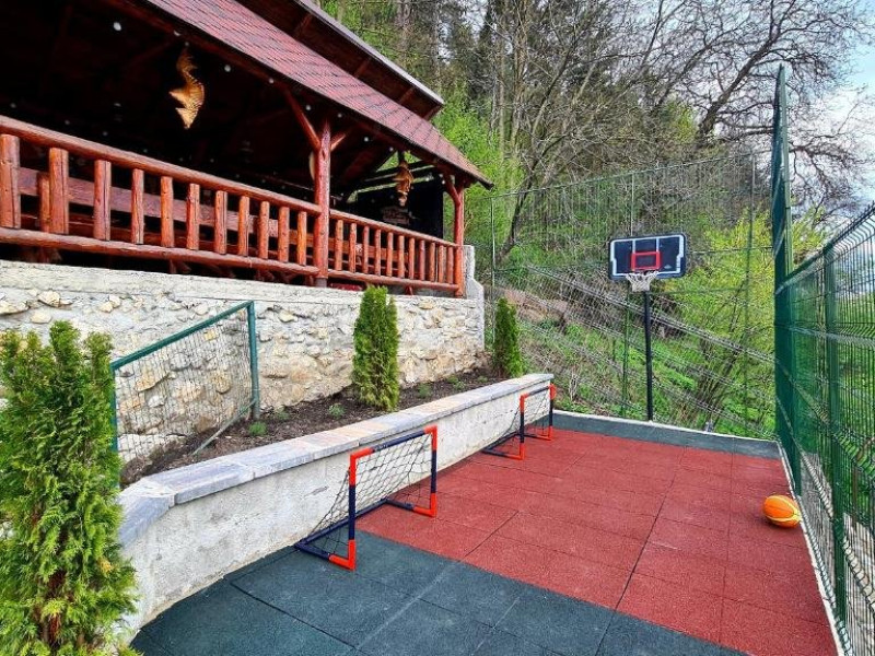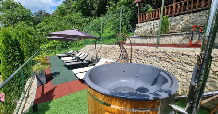 Pentru confortul si rasfatul oaspetilor,pensiunea dispune de facilitati variate: SPA elegant cu sauna, jacuzzi, salinasi sala de fitness Ciubar cu jacuzzi si zona de sezlonguri pentrurelaxare in aer liber Crama cu atmosfera traditionala rafinata Sala de jocuri cu biliard si ping-pong Loc de joaca pentru copii (leagane,topogane, trambuline si diverse biciclete, kart-uri si trotinete) Bucatarie complet utilata, deschisanon-stop pentru turisti Gratar profesional cu zonade BBQ, plita, cuptor si rotisor inaer liber pentru seri pline de savoare Parcaresupravegheata video 24/24