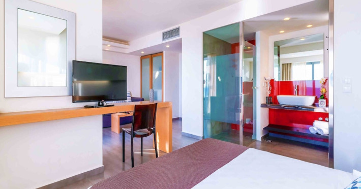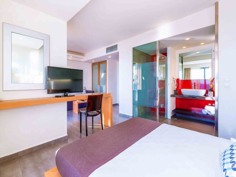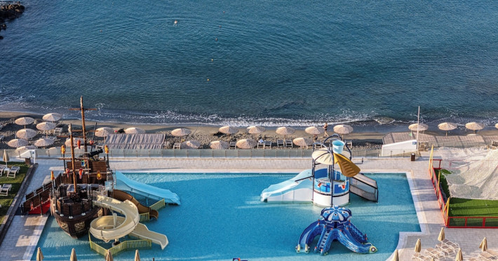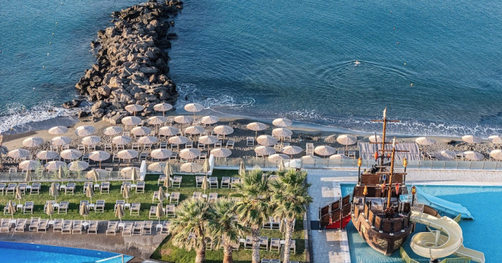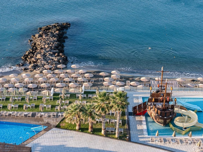 Located on the southeastern coast of Crete in Ierapetra, Petra Mare - All Inclusive offers beachfront accommodations with 223-227 air-conditioned rooms featuring furnished balconies. Most rooms offer sea views and include satellite TV, a refrigerator, a telephone, a safe deposit box (subject to fees), and a private bathroom with a hairdryer. Complimentary wireless internet access is available.Guests can enjoy a variety of dining options, including 2 restaurants, a coffee shop/cafe, and multiple bars, including a beach bar and a poolside bar. A complimentary buffet breakfast is served daily.The property features an outdoor pool with a waterslide and a children's area, a hot tub, and a spa offering massages. Other amenities include a 24-hour front desk, concierge services, luggage storage, laundry facilities, a mini-supermarket, a hairdressers' salon, and an amphitheater. Entertainment options include live shows and an open disco bar. A children's club is also available.The hotel is situated 800 metres from the centre of Ierapetra, close to shopping, restaurants and bars. Nearby attractions include Ierapetra Archaeological Museum, Ierapetra Beach, and Ierapetra Venetian Fort. Nikos Kazantzakis Airport (HER) is the preferred airport, located approximately 90 km away. Self parking and public parking are available.