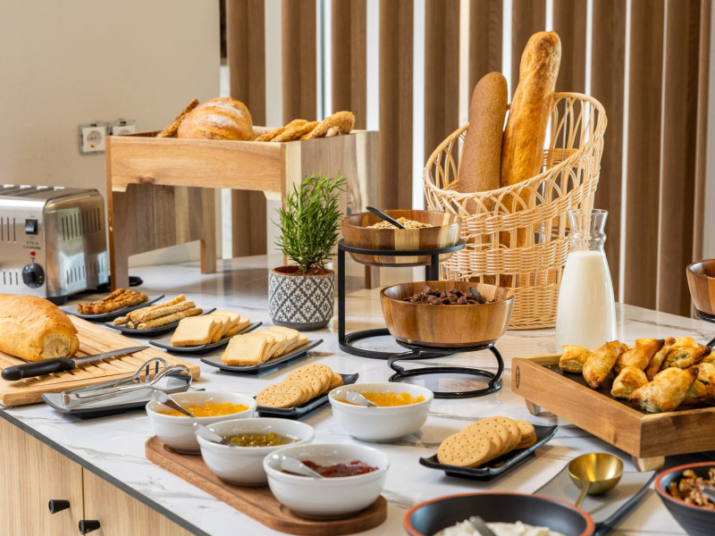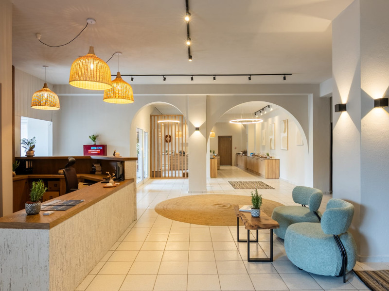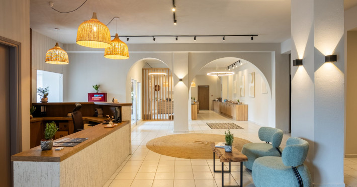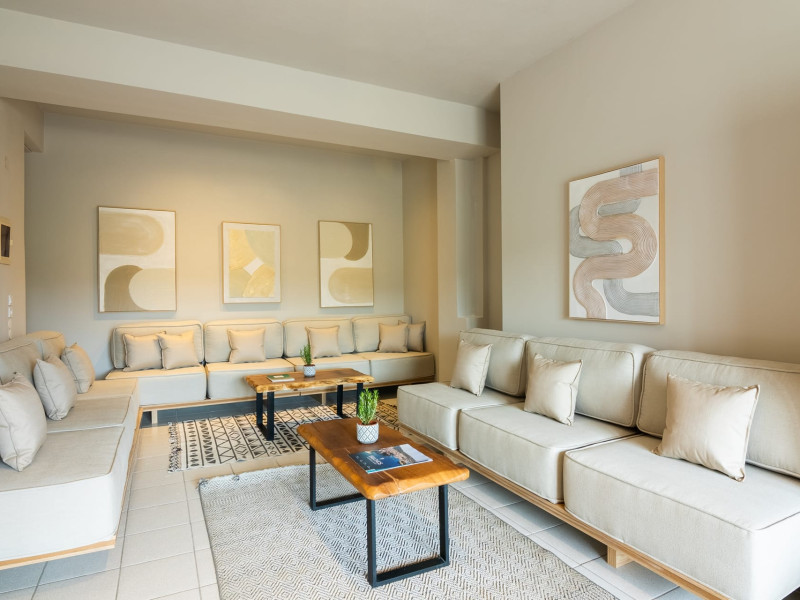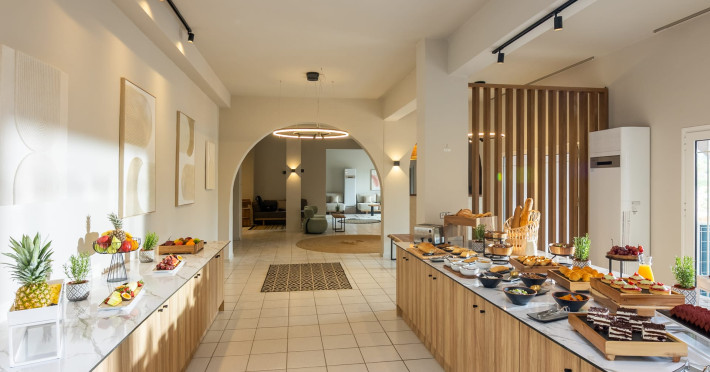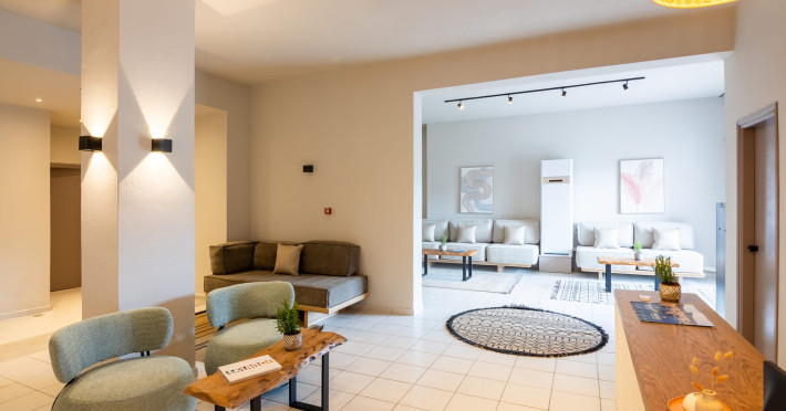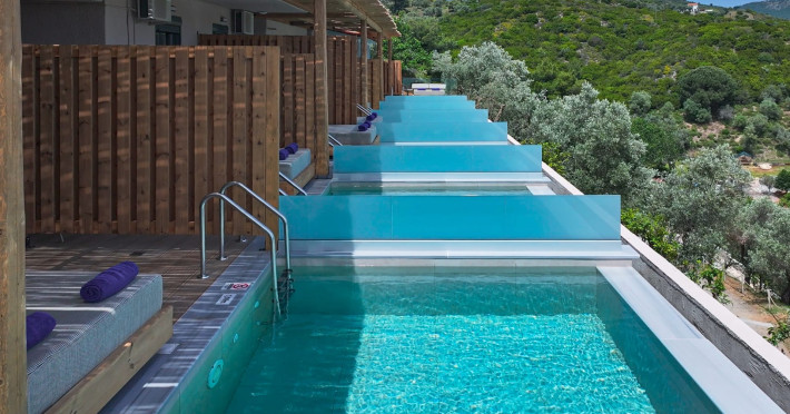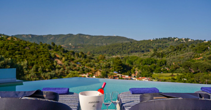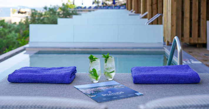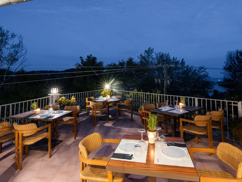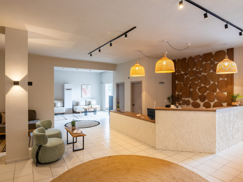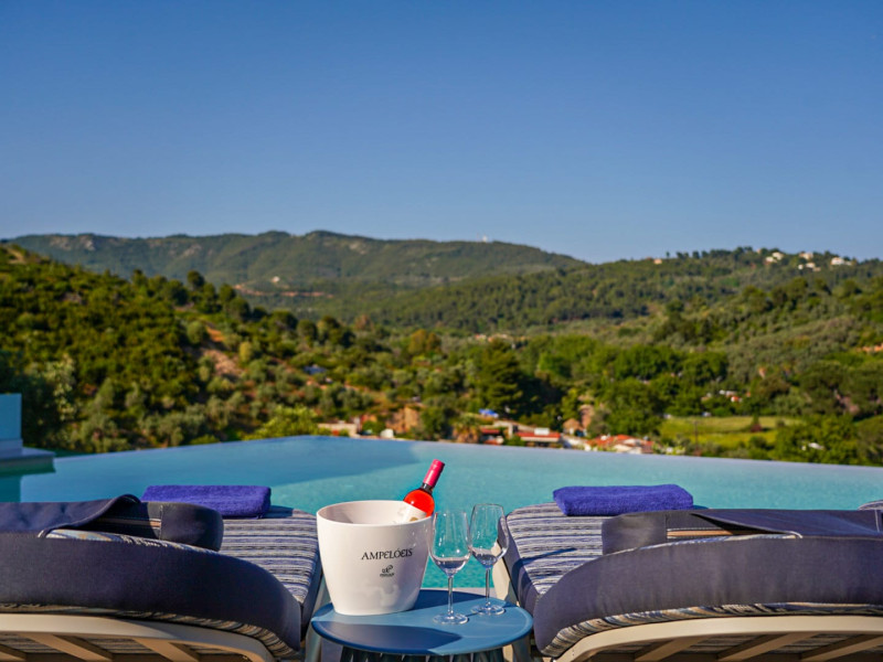 Petra Nera Skiathos is located in Agia Paraskevi area of Skiathos island, built on a small hill above the omonymous famous sandy beach of Agia Paraskevi, just 4 km from the well known Koukounaries beach and 7 km from the cosmopolitan Skiathos town.Agia Paraskevi beach is just 150 meters from our hotel and in the area there are many taverns, bars, super market, car/motorbike rental companies, as well as the traditional church of Agia Paraskevi.Just 50 m from our front office there is bus station #14 with regular buses (every 15 minutes) to Skiathos town and the rest of the southern beaches.The hotel consists of 3 buildings in a total of 43 units, whereof 38 rooms & 5 suites, all of them fully renovated in 2025. Some of them are provided with private jacuzzi or private pool. Ideal for couples, friends and families. Elegant yet spacious, Petra Nera Skiathos is generously equipped with everything you might be looking for during your stay. Hotel rooms offer stunning sea views.