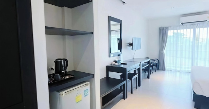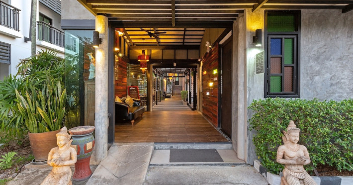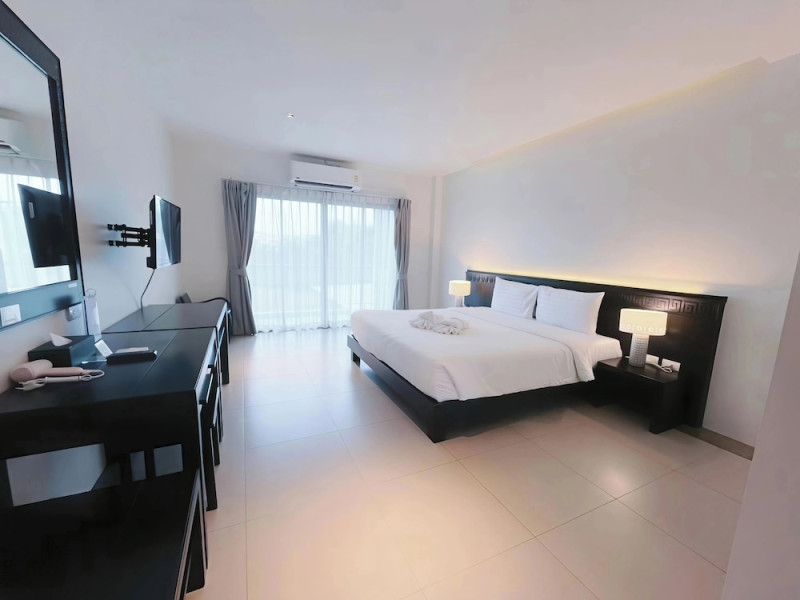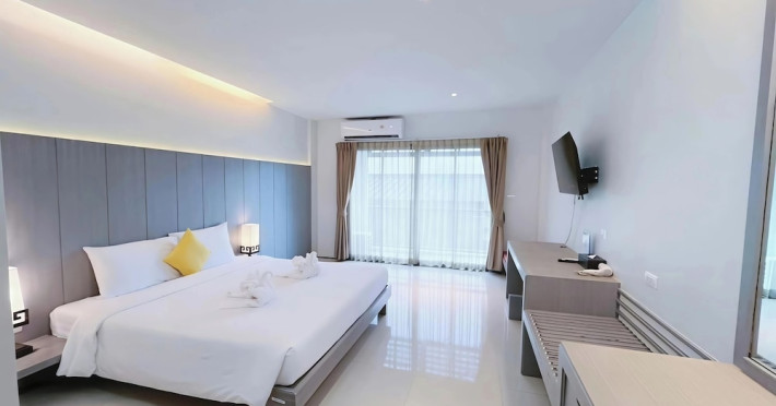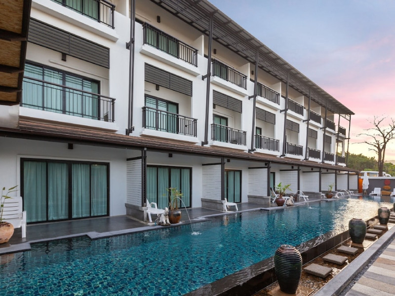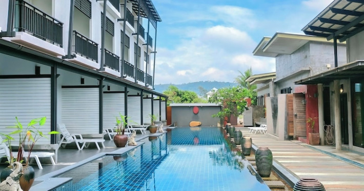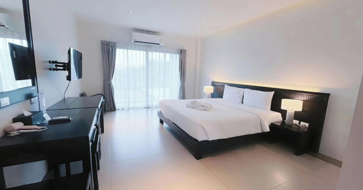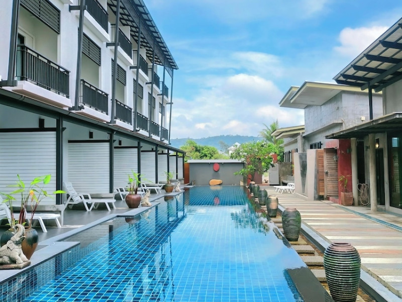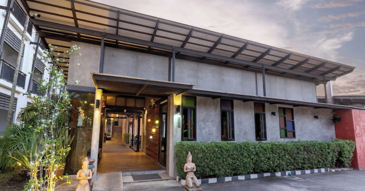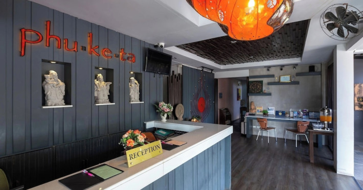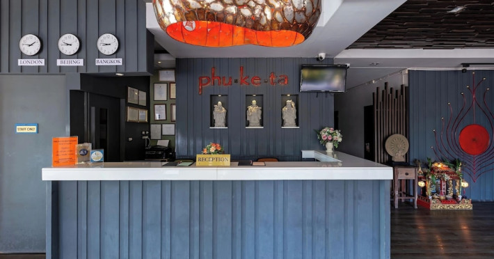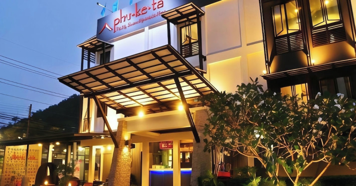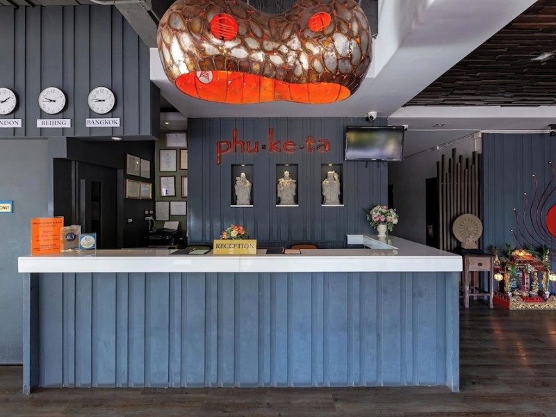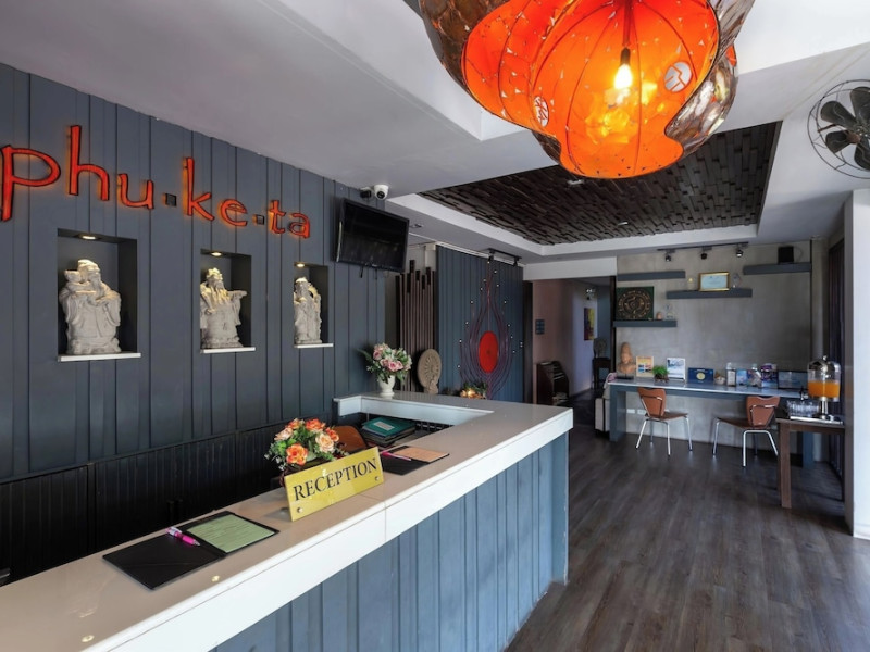 Phuketa Hotel - SHA Extra Plus is a modern, 3-story aparthotel located near Rajabhat Phuket University and a short drive from Phuket Town. It offers 57 air-conditioned rooms with complimentary Wi-Fi. Each room features a private bathroom with a shower, a flat-screen TV with cable, a minibar, a refrigerator, and tea/coffee making facilities. Some rooms include a balcony or terrace. The hotel features an outdoor saltwater swimming pool, a fitness center, a restaurant serving Thai, Chinese, and Phuket cuisine, and a bar. An American buffet breakfast is available, and lunch and dinner are offered à la carte. Room service is also available. The hotel provides a 24-hour front desk, luggage storage, tour/ticket assistance, conference facilities, and free self-parking. Airport shuttle service is available for a surcharge. The hotel is a non-smoking property with designated smoking areas. Nearby attractions include Phuket Rajabhat University, Bangkok Hospital Phuket, and Chillva Market. Phuket International Airport is approximately 27 km away. The Phu-ke-ta The Hip Serviced Apartment and Hotel is a hotel.