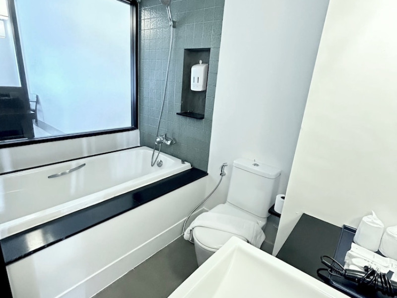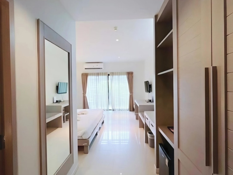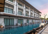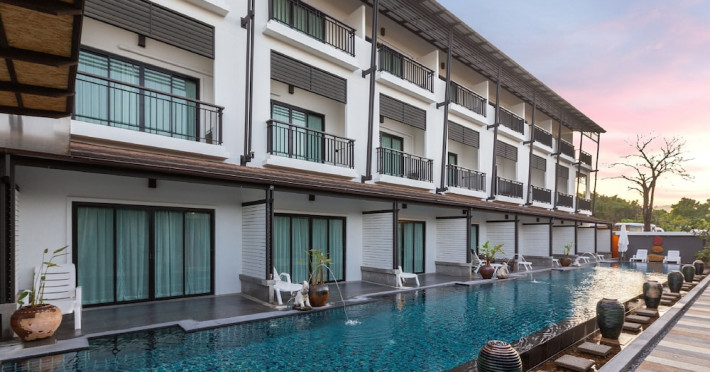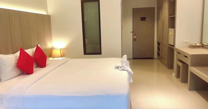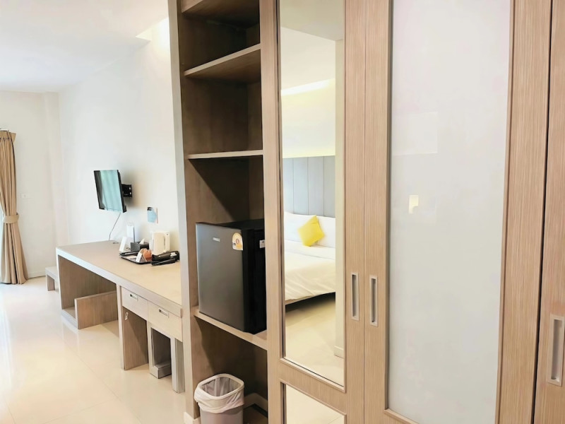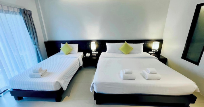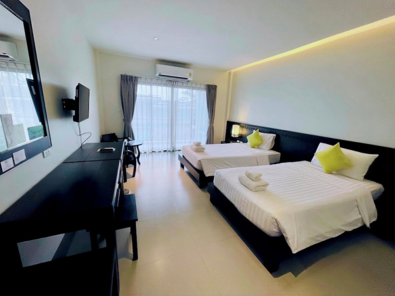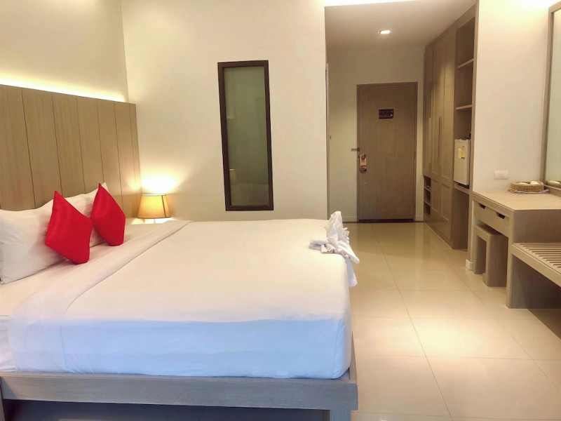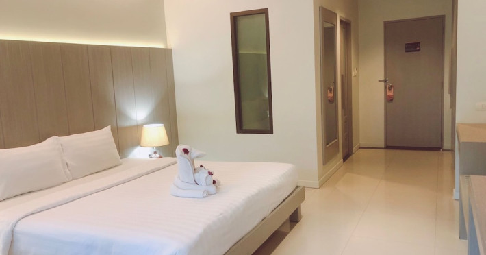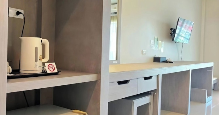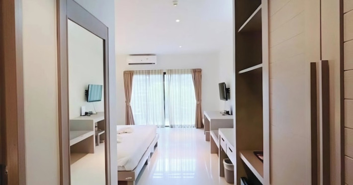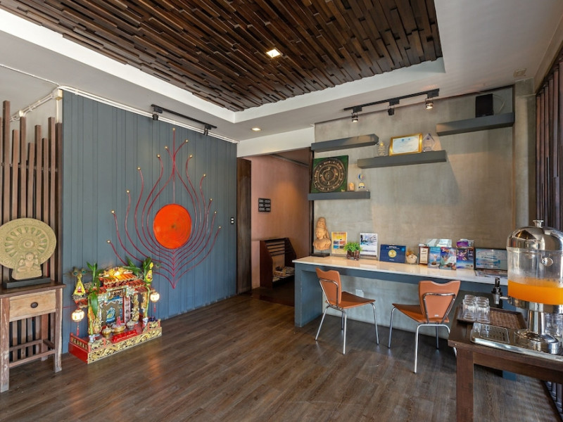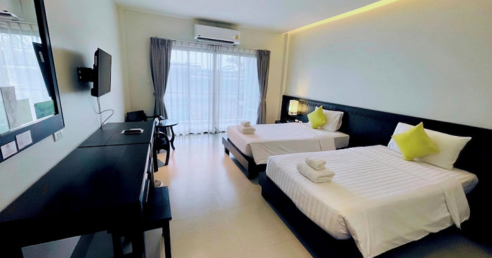 Phuketa Hotel - SHA Extra Plus is a modern, 3-story aparthotel located near Rajabhat Phuket University and a short drive from Phuket Town. It offers 57 air-conditioned rooms with complimentary Wi-Fi. Each room features a private bathroom with a shower, a flat-screen TV with cable, a minibar, a refrigerator, and tea/coffee making facilities. Some rooms include a balcony or terrace. The hotel features an outdoor saltwater swimming pool, a fitness center, a restaurant serving Thai, Chinese, and Phuket cuisine, and a bar. An American buffet breakfast is available, and lunch and dinner are offered à la carte. Room service is also available. The hotel provides a 24-hour front desk, luggage storage, tour/ticket assistance, conference facilities, and free self-parking. Airport shuttle service is available for a surcharge. The hotel is a non-smoking property with designated smoking areas. Nearby attractions include Phuket Rajabhat University, Bangkok Hospital Phuket, and Chillva Market. Phuket International Airport is approximately 27 km away. The Phu-ke-ta The Hip Serviced Apartment and Hotel is a hotel.