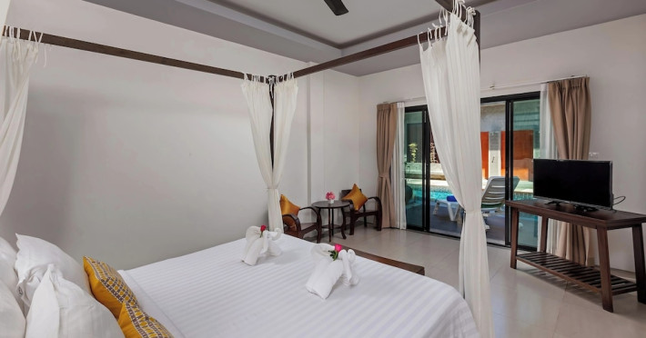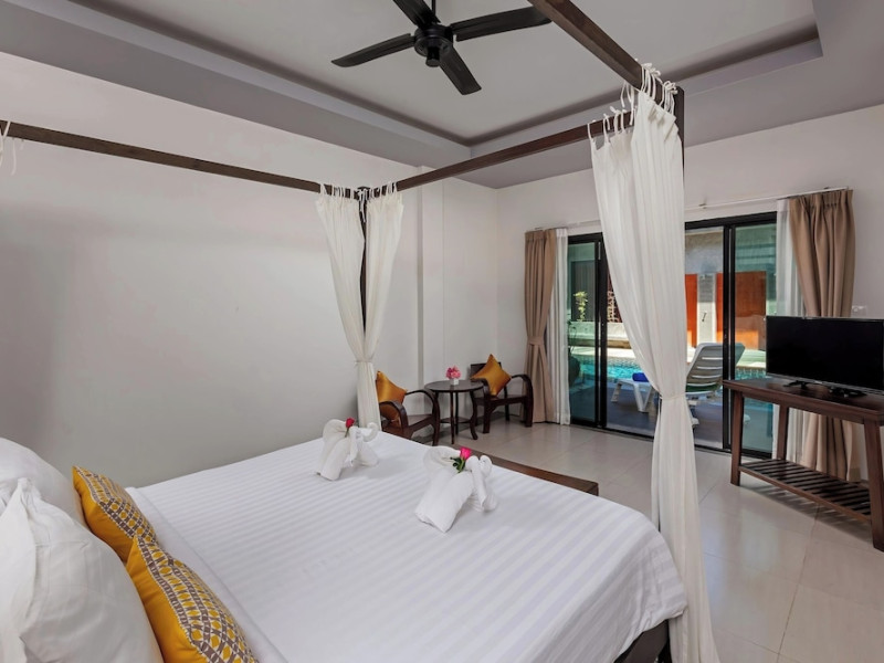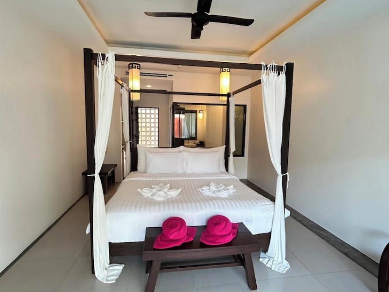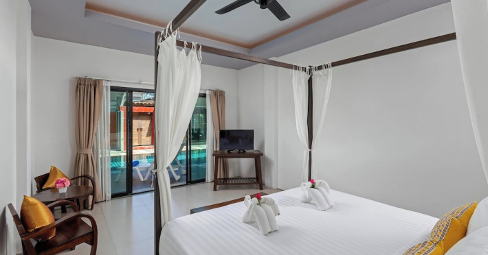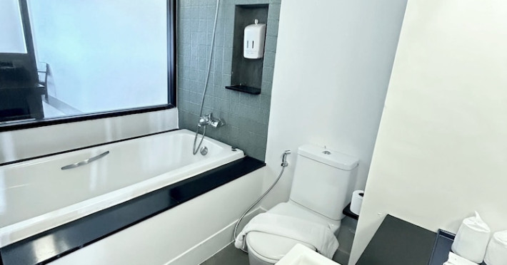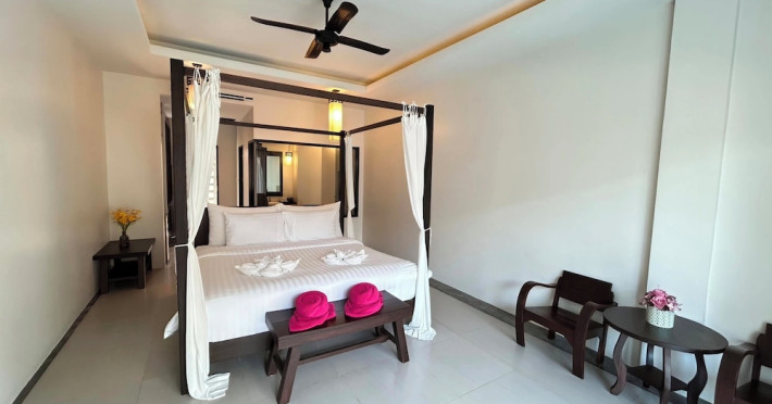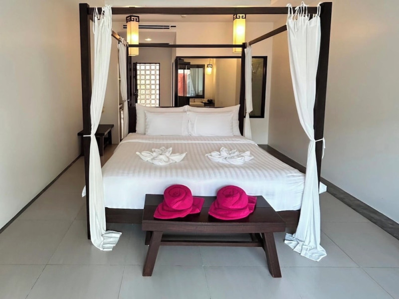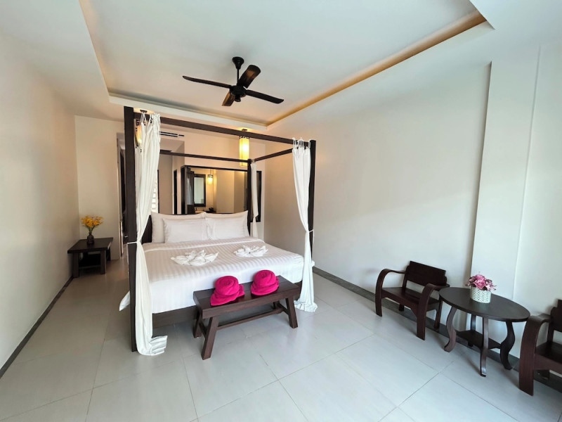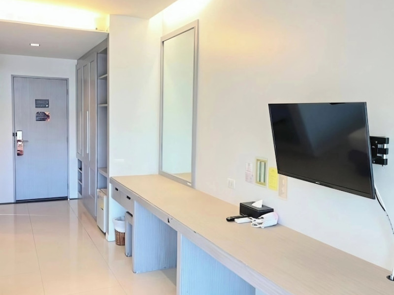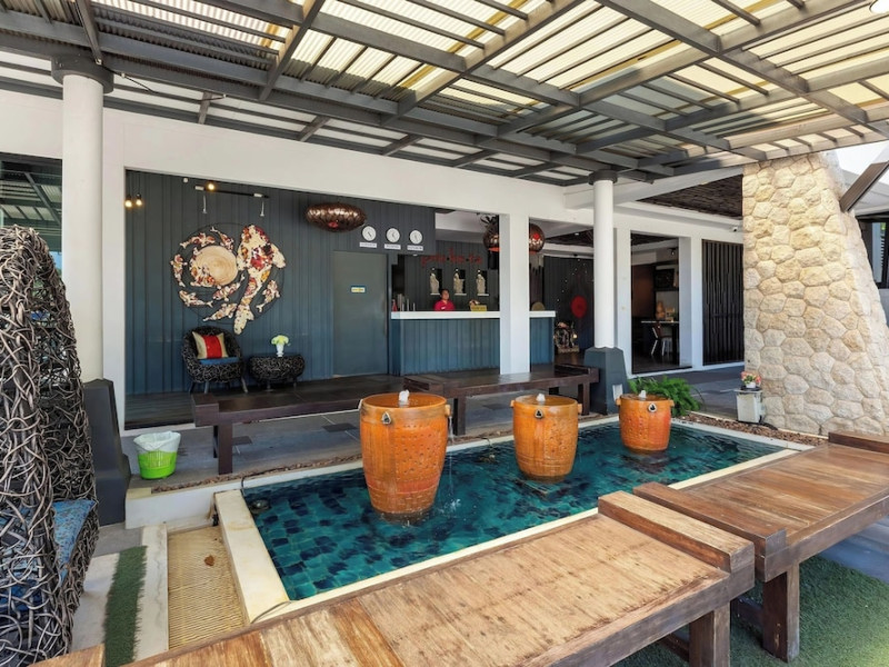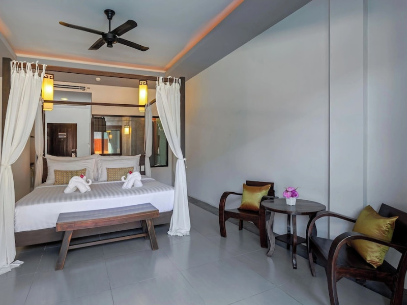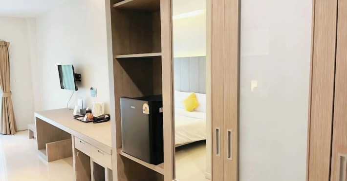 Phuketa Hotel - SHA Extra Plus is a modern, 3-story aparthotel located near Rajabhat Phuket University and a short drive from Phuket Town. It offers 57 air-conditioned rooms with complimentary Wi-Fi. Each room features a private bathroom with a shower, a flat-screen TV with cable, a minibar, a refrigerator, and tea/coffee making facilities. Some rooms include a balcony or terrace. The hotel features an outdoor saltwater swimming pool, a fitness center, a restaurant serving Thai, Chinese, and Phuket cuisine, and a bar. An American buffet breakfast is available, and lunch and dinner are offered à la carte. Room service is also available. The hotel provides a 24-hour front desk, luggage storage, tour/ticket assistance, conference facilities, and free self-parking. Airport shuttle service is available for a surcharge. The hotel is a non-smoking property with designated smoking areas. Nearby attractions include Phuket Rajabhat University, Bangkok Hospital Phuket, and Chillva Market. Phuket International Airport is approximately 27 km away. The Phu-ke-ta The Hip Serviced Apartment and Hotel is a hotel.