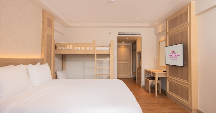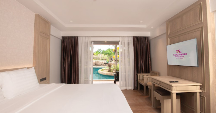 The resort provides complimentary parking, a tour desk, a souvenir shop, car rentals, and shuttle services. Additional amenities include room service, daily housekeeping, concierge service, luggage storage, safety deposit boxes, dry cleaning, and laundry service. Airport transfers, taxi and car hire can be arranged. Buffet breakfast is available. The Phuket Orchid Resort And Spa is a Beach Resort, Honeymoon, Spa Resort, Tourist hotel. The nightlife/restaurants are easily accessible by taxi or bus from the hotel.