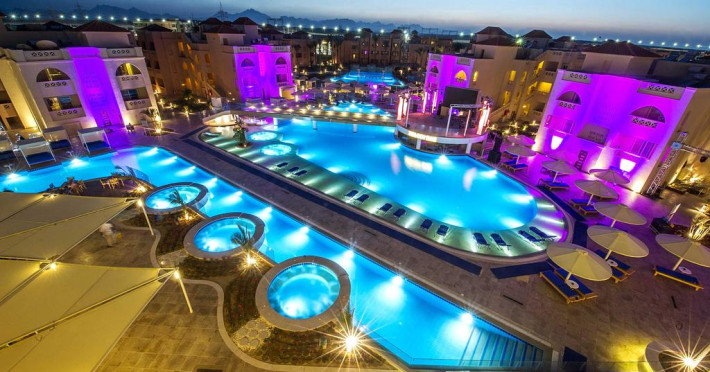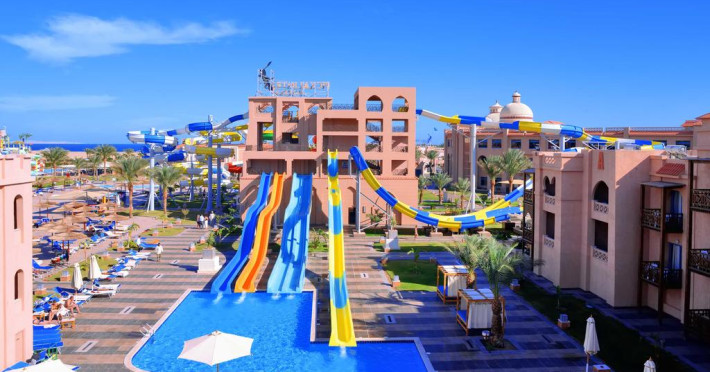Complexul Aqua Blu Resort - Families and couples only este situat la doar 9 km de Aeroportul Hurghada şi la 20 de minute de centrul oraşului. Hotelul are 7 piscine, un parc acvatic cu 9 tobogane şi 2 piscine în aer liber încălzite.