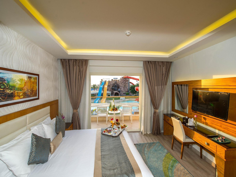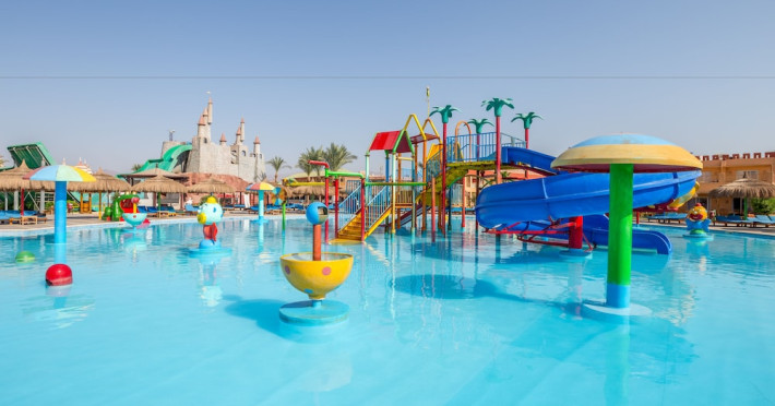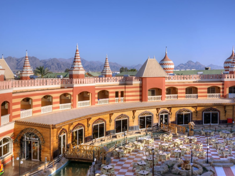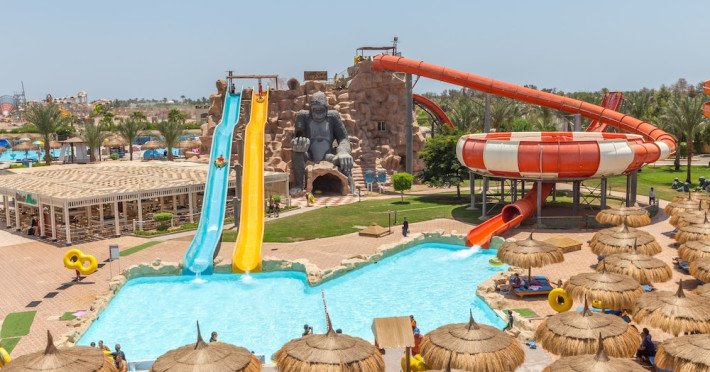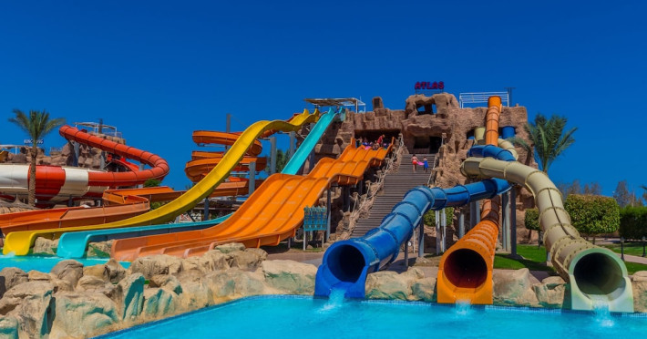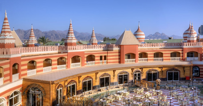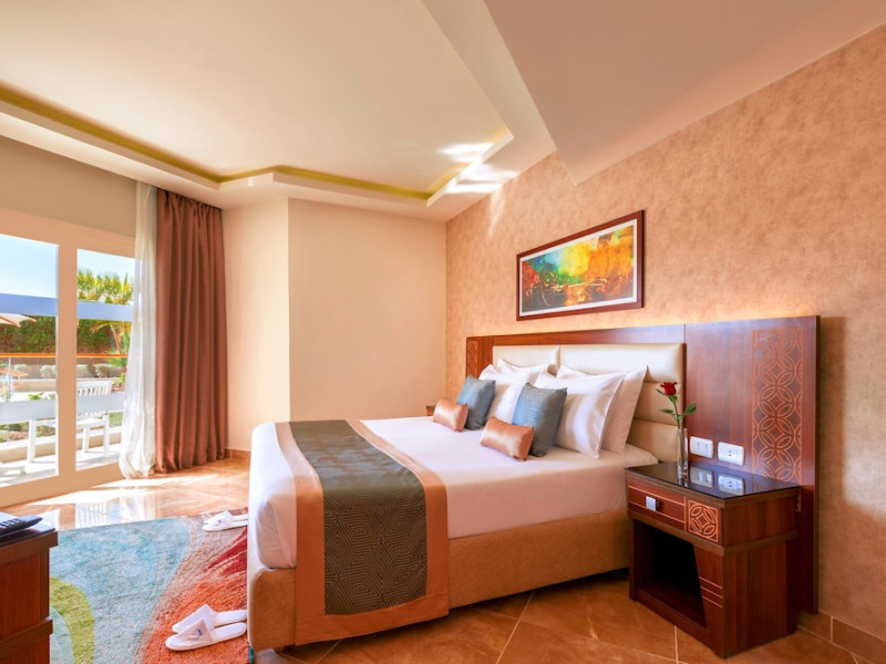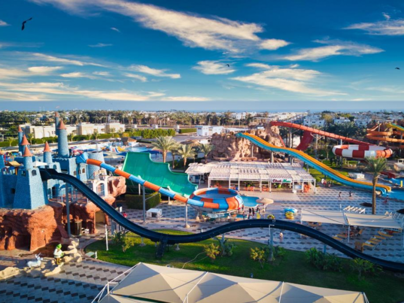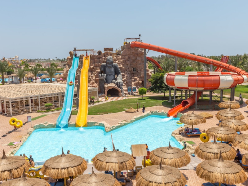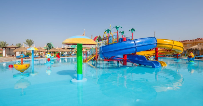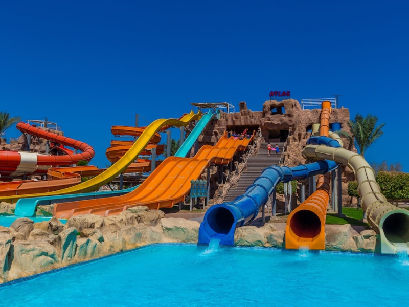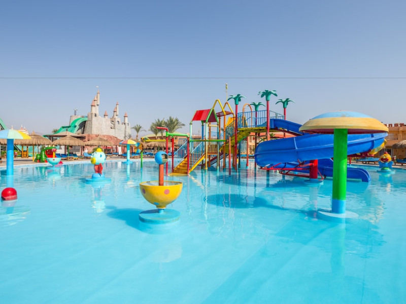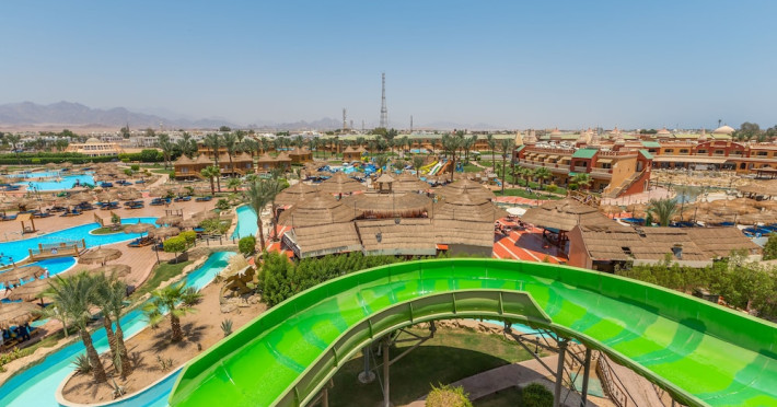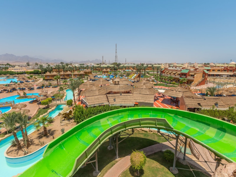 Pickalbatros Aqua Blu Sharm El Sheikh, located on the cliff of Ras Om El Seid within Aqua Park City, offers a variety of accommodations including standard rooms, family rooms, and bungalows. The resort is 15 minutes from Sharm el Sheikh's city center and 25 minutes from the airport. Enjoy nine outdoor swimming pools (including 10 children's pools and 17 adult pools), a private beach (accessible via complimentary shuttle), and 64 water slides. Dining options include five restaurants (offering international, Italian, Mediterranean, and Asian cuisine), three coffee shops/cafes, a beach bar, and six bars/lounges; 24-hour room service is available. Amenities include complimentary Wi-Fi, concierge services, an arcade/game room, a full-service spa, a gym, a kids' club, nightly entertainment, horseback riding, dry cleaning/laundry services, a 24-hour front desk, luggage storage, free self parking, and a convenience store. Rooms feature air conditioning, minibars, LCD televisions, satellite programming, private balconies or patios, private bathrooms with showers, complimentary toiletries, and hair dryers. All-inclusive rates are available (some restrictions apply). The resort is near Aqua Blue Water Park, the Red Sea, and various local attractions (distances provided in the original descriptions). Airport shuttle service is available at an extra charge. The Pickalbatros Aqua Blu Sharm El Sheikh is a Tourist hotel. The nightlife/restaurants are easily accessible by taxi or bus from the hotel.