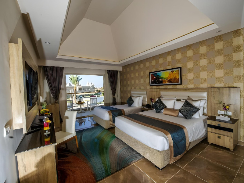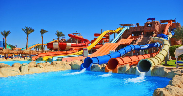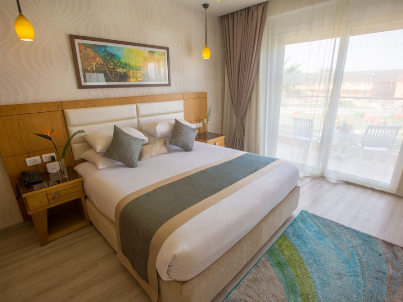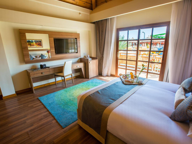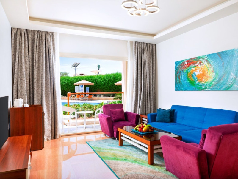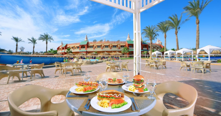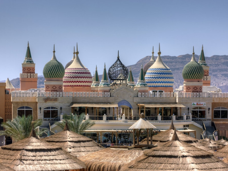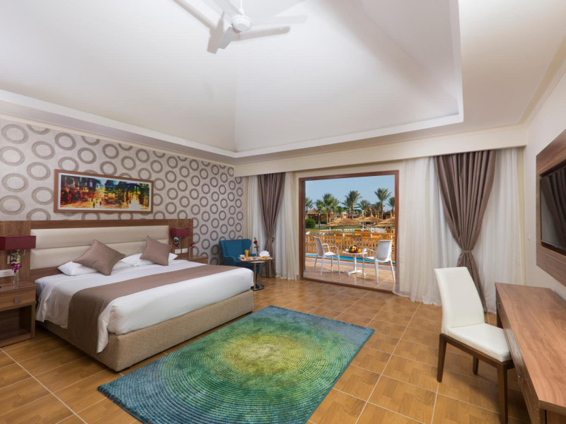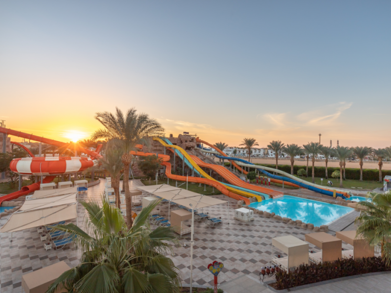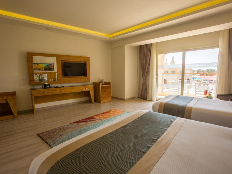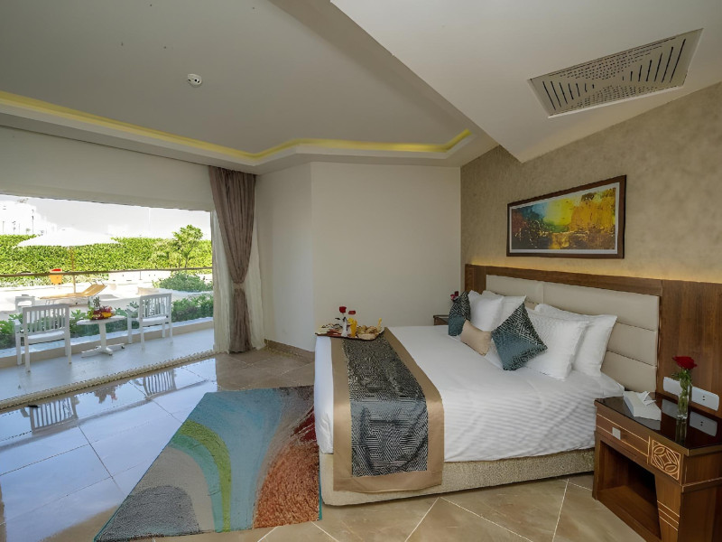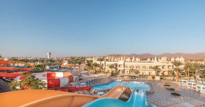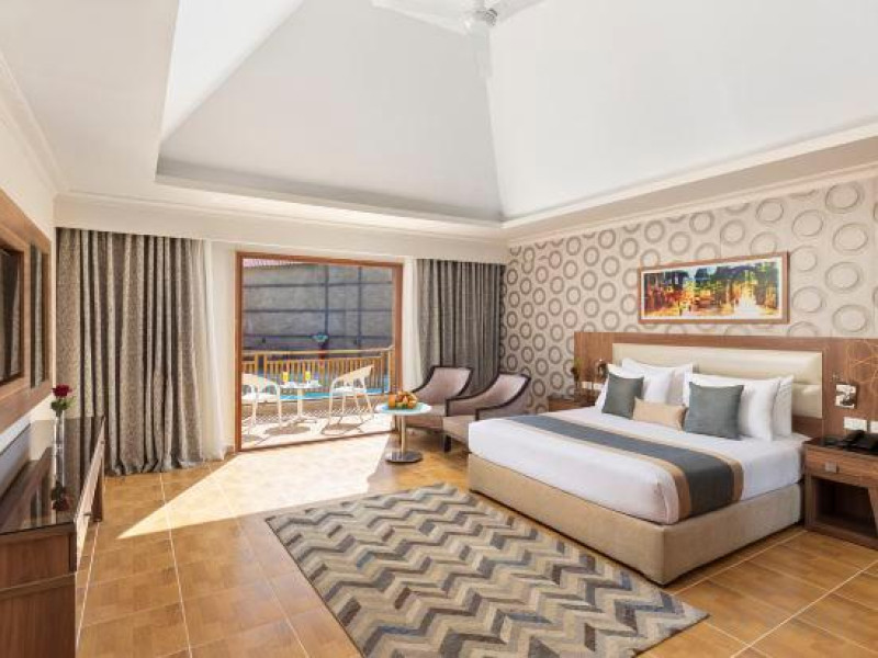 Pickalbatros Aqua Blu Sharm El Sheikh, located on the cliff of Ras Om El Seid within Aqua Park City, offers a variety of accommodations including standard rooms, family rooms, and bungalows. The resort is 15 minutes from Sharm el Sheikh's city center and 25 minutes from the airport. Enjoy nine outdoor swimming pools (including 10 children's pools and 17 adult pools), a private beach (accessible via complimentary shuttle), and 64 water slides. Dining options include five restaurants (offering international, Italian, Mediterranean, and Asian cuisine), three coffee shops/cafes, a beach bar, and six bars/lounges; 24-hour room service is available. Amenities include complimentary Wi-Fi, concierge services, an arcade/game room, a full-service spa, a gym, a kids' club, nightly entertainment, horseback riding, dry cleaning/laundry services, a 24-hour front desk, luggage storage, free self parking, and a convenience store. Rooms feature air conditioning, minibars, LCD televisions, satellite programming, private balconies or patios, private bathrooms with showers, complimentary toiletries, and hair dryers. All-inclusive rates are available (some restrictions apply). The resort is near Aqua Blue Water Park, the Red Sea, and various local attractions (distances provided in the original descriptions). Airport shuttle service is available at an extra charge. The Pickalbatros Aqua Blu Sharm El Sheikh is a Tourist hotel. The nightlife/restaurants are easily accessible by taxi or bus from the hotel.