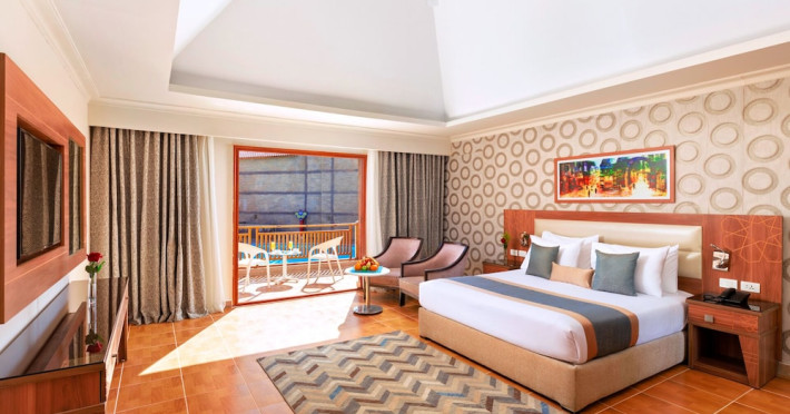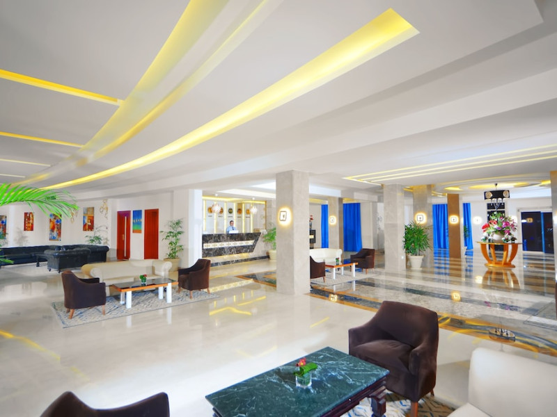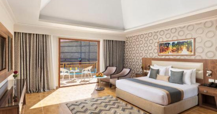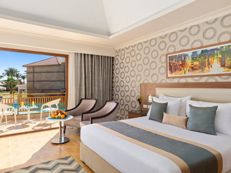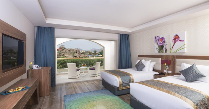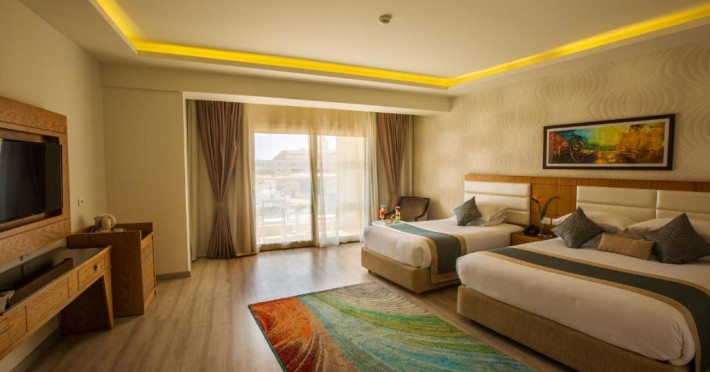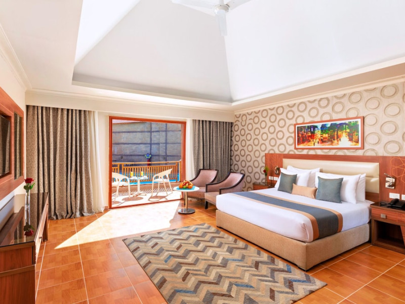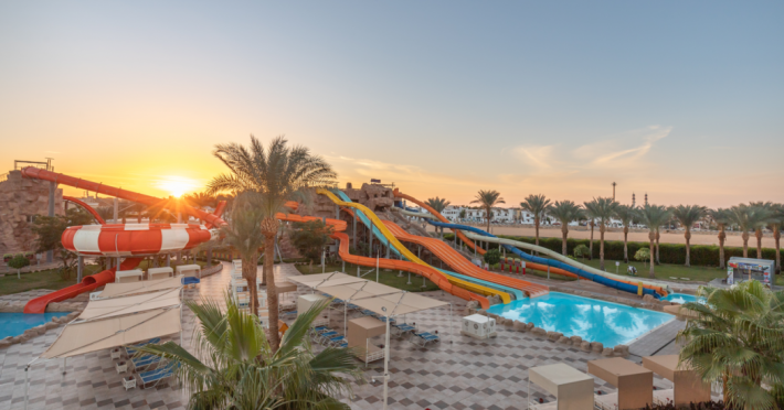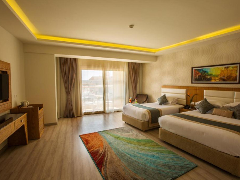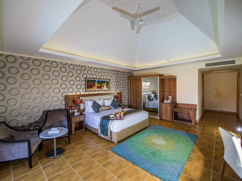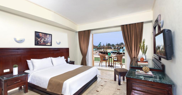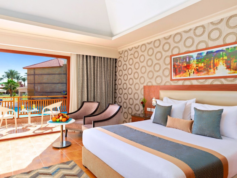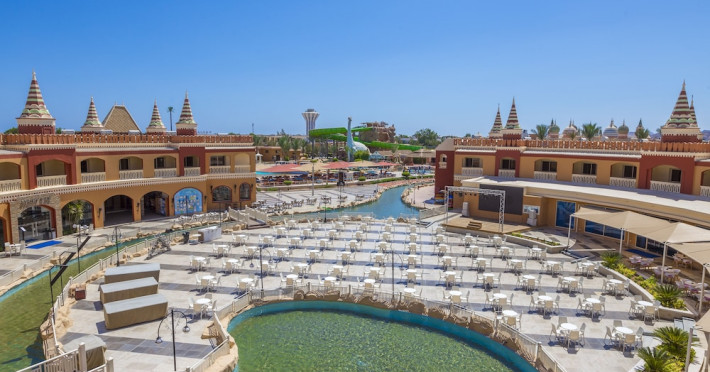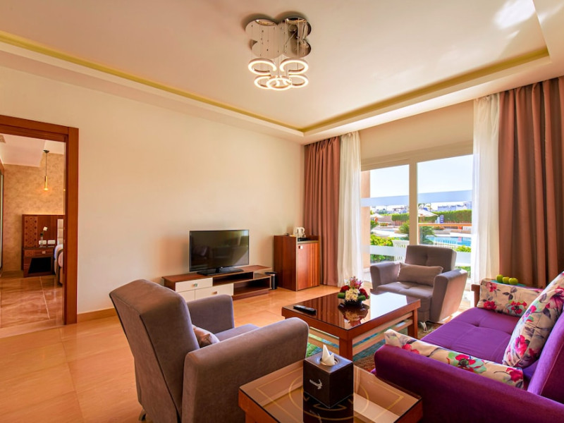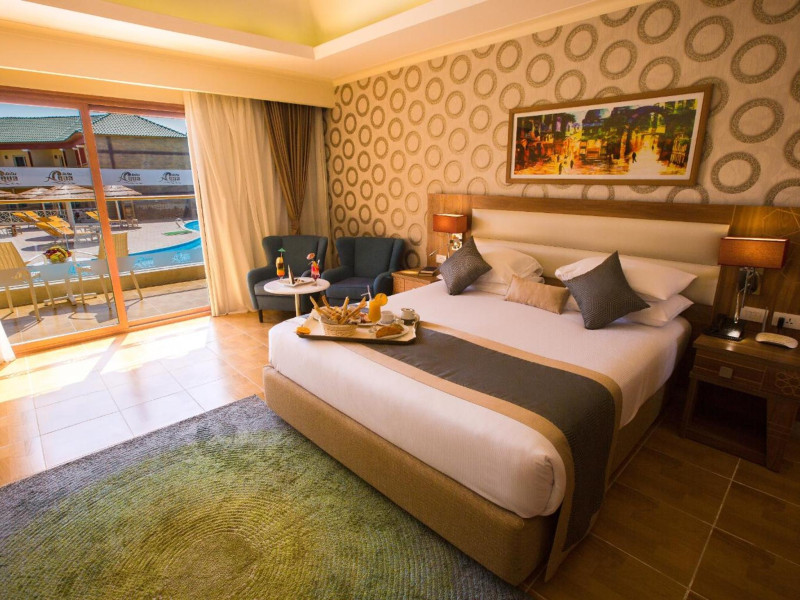 Pickalbatros Aqua Blu Sharm El Sheikh, located on the cliff of Ras Om El Seid within Aqua Park City, offers a variety of accommodations including standard rooms, family rooms, and bungalows. The resort is 15 minutes from Sharm el Sheikh's city center and 25 minutes from the airport. Enjoy nine outdoor swimming pools (including 10 children's pools and 17 adult pools), a private beach (accessible via complimentary shuttle), and 64 water slides. Dining options include five restaurants (offering international, Italian, Mediterranean, and Asian cuisine), three coffee shops/cafes, a beach bar, and six bars/lounges; 24-hour room service is available. Amenities include complimentary Wi-Fi, concierge services, an arcade/game room, a full-service spa, a gym, a kids' club, nightly entertainment, horseback riding, dry cleaning/laundry services, a 24-hour front desk, luggage storage, free self parking, and a convenience store. Rooms feature air conditioning, minibars, LCD televisions, satellite programming, private balconies or patios, private bathrooms with showers, complimentary toiletries, and hair dryers. All-inclusive rates are available (some restrictions apply). The resort is near Aqua Blue Water Park, the Red Sea, and various local attractions (distances provided in the original descriptions). Airport shuttle service is available at an extra charge. The Pickalbatros Aqua Blu Sharm El Sheikh is a Tourist hotel. The nightlife/restaurants are easily accessible by taxi or bus from the hotel.