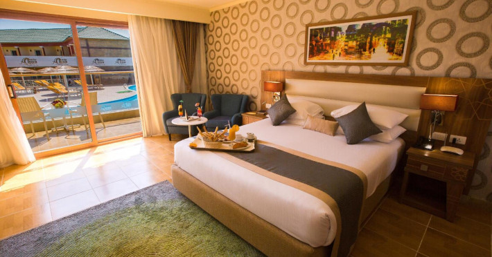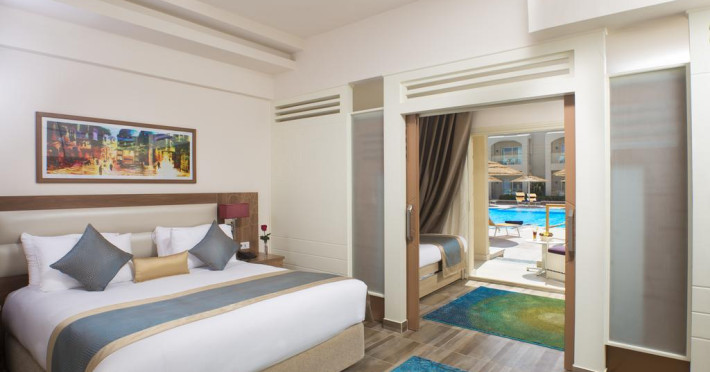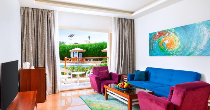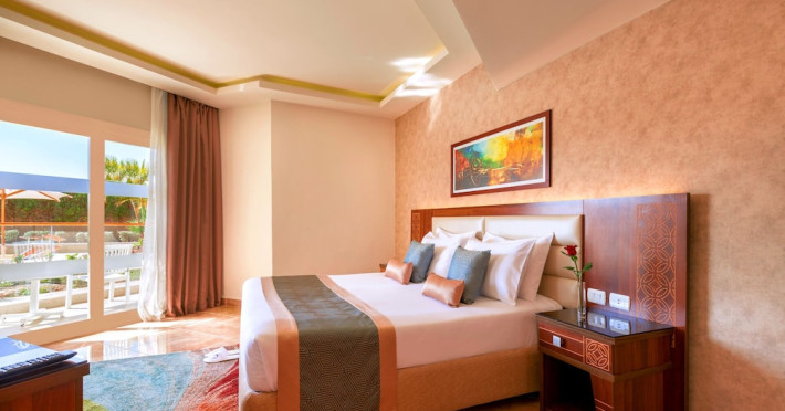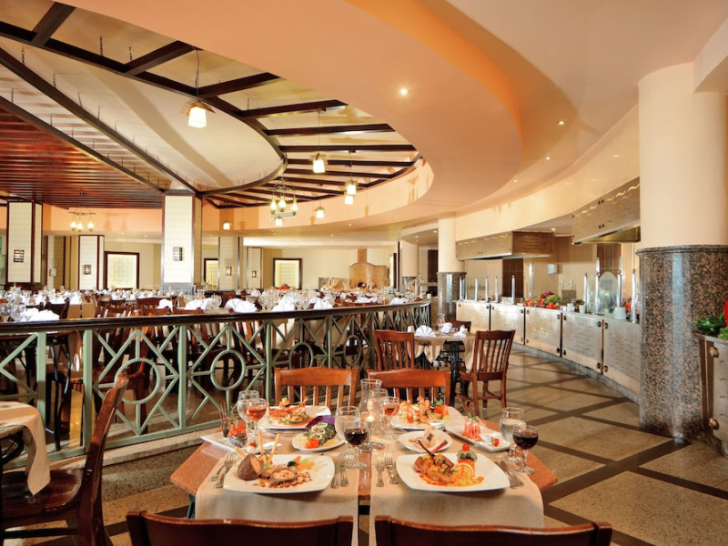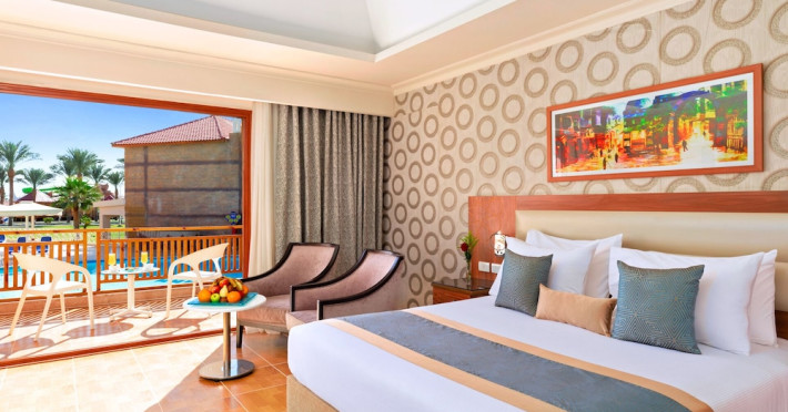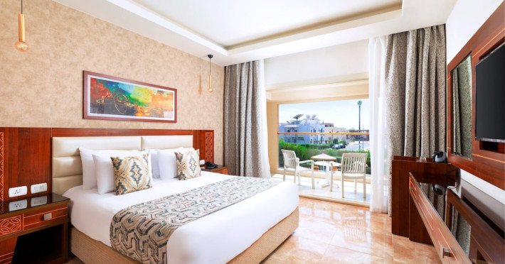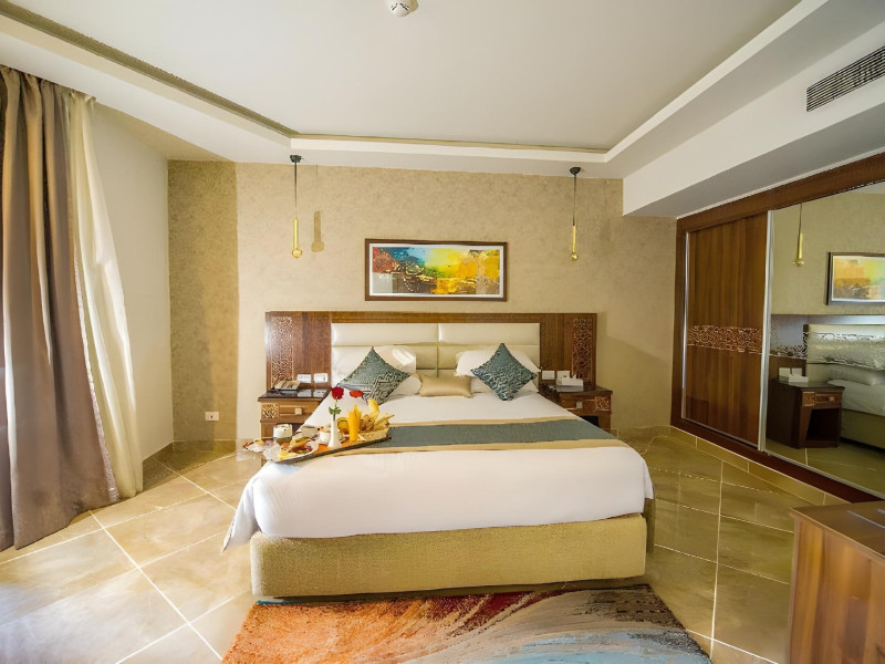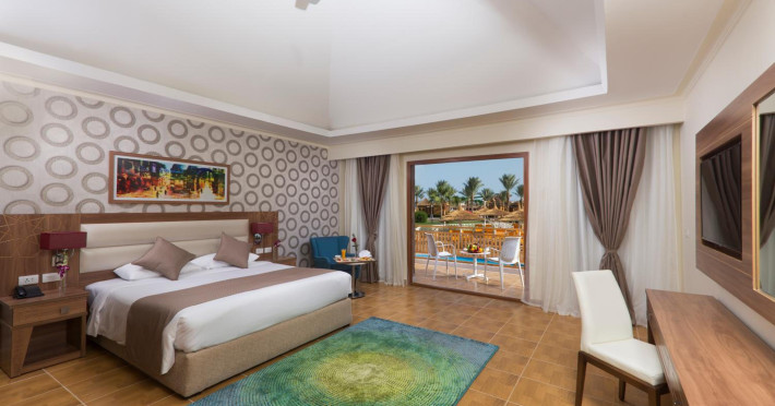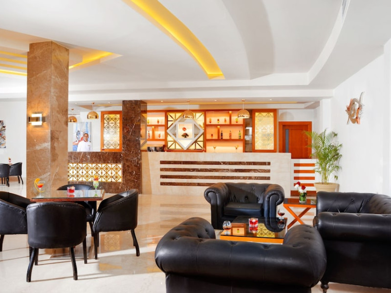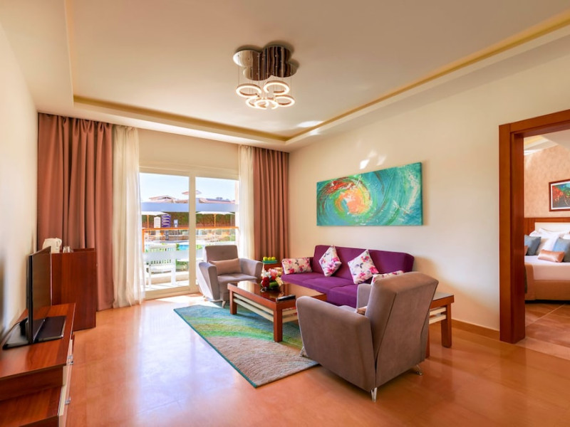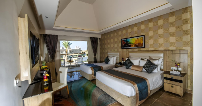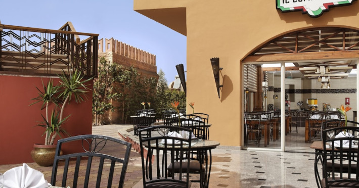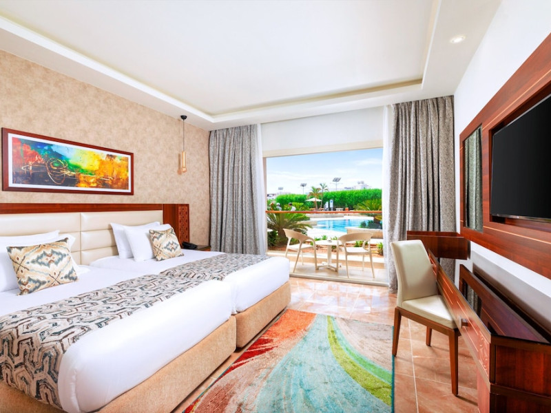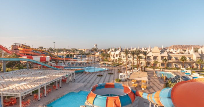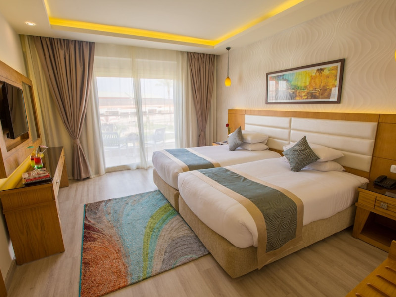 Pickalbatros Aqua Blu Sharm El Sheikh, located on the cliff of Ras Om El Seid within Aqua Park City, offers a variety of accommodations including standard rooms, family rooms, and bungalows. The resort is 15 minutes from Sharm el Sheikh's city center and 25 minutes from the airport. Enjoy nine outdoor swimming pools (including 10 children's pools and 17 adult pools), a private beach (accessible via complimentary shuttle), and 64 water slides. Dining options include five restaurants (offering international, Italian, Mediterranean, and Asian cuisine), three coffee shops/cafes, a beach bar, and six bars/lounges; 24-hour room service is available. Amenities include complimentary Wi-Fi, concierge services, an arcade/game room, a full-service spa, a gym, a kids' club, nightly entertainment, horseback riding, dry cleaning/laundry services, a 24-hour front desk, luggage storage, free self parking, and a convenience store. Rooms feature air conditioning, minibars, LCD televisions, satellite programming, private balconies or patios, private bathrooms with showers, complimentary toiletries, and hair dryers. All-inclusive rates are available (some restrictions apply). The resort is near Aqua Blue Water Park, the Red Sea, and various local attractions (distances provided in the original descriptions). Airport shuttle service is available at an extra charge. The Pickalbatros Aqua Blu Sharm El Sheikh is a Tourist hotel. The nightlife/restaurants are easily accessible by taxi or bus from the hotel.