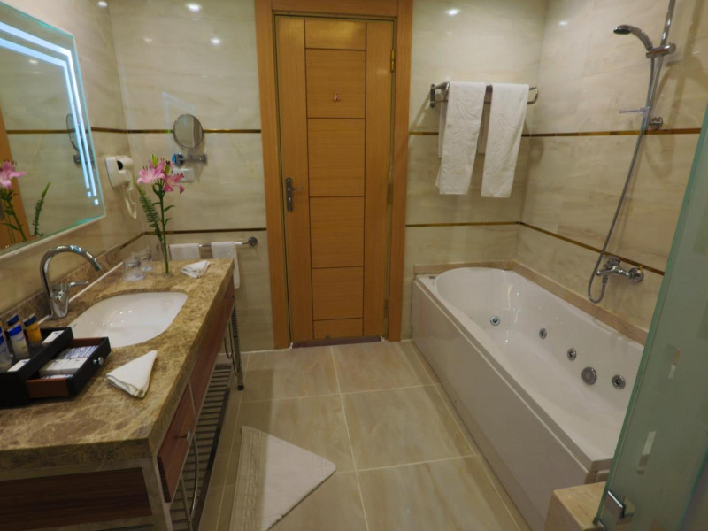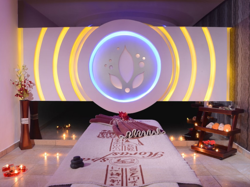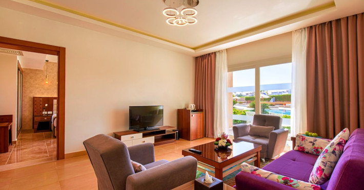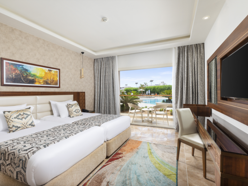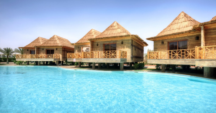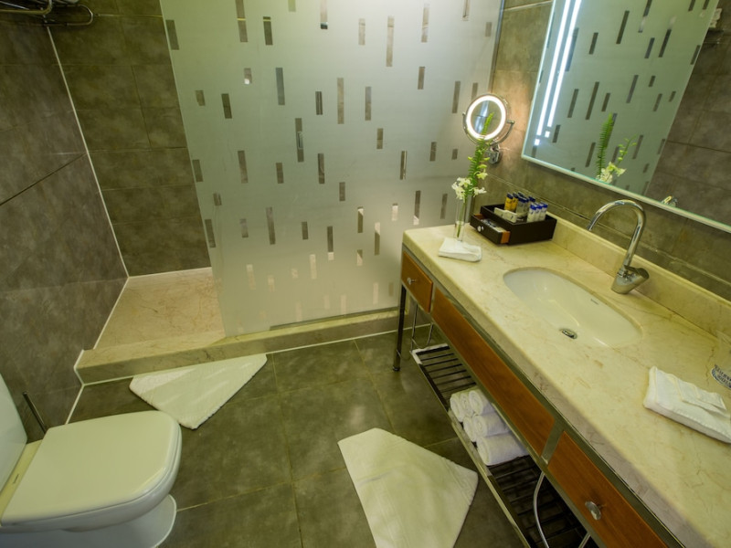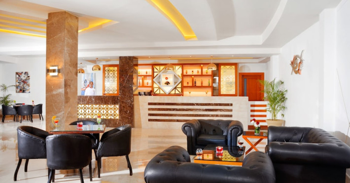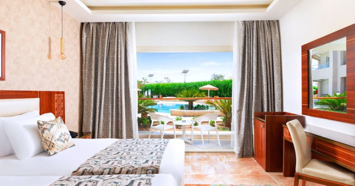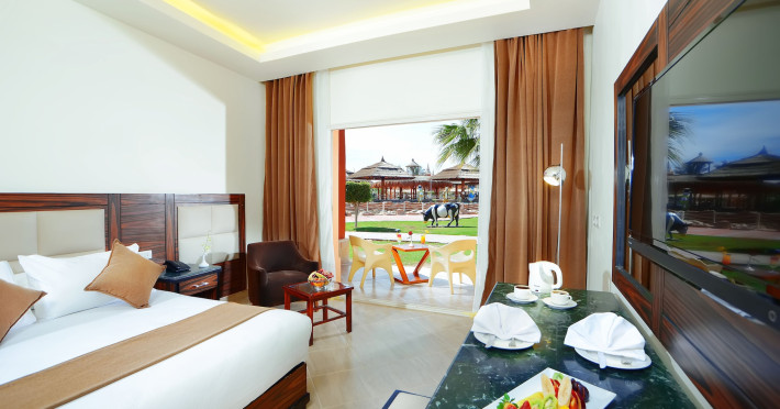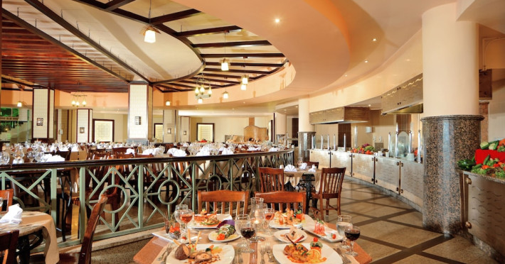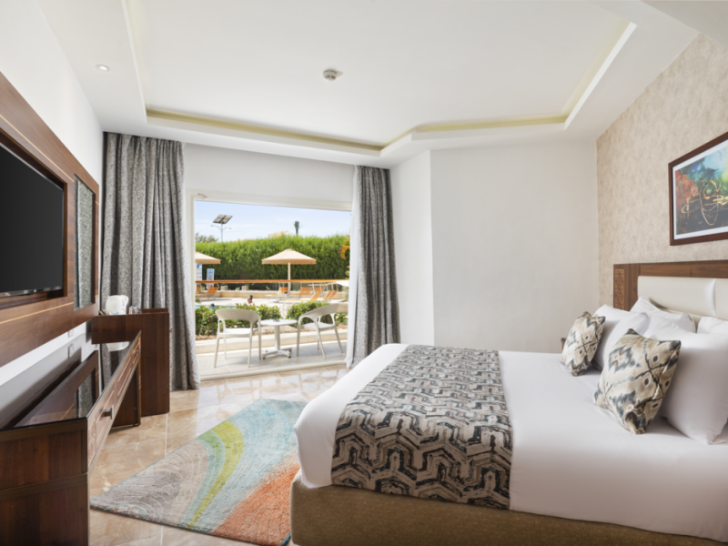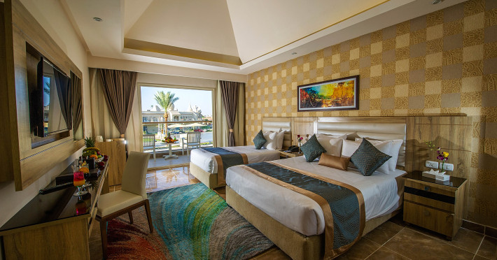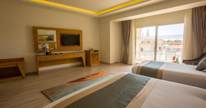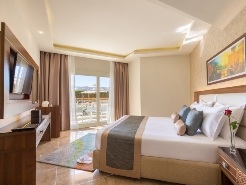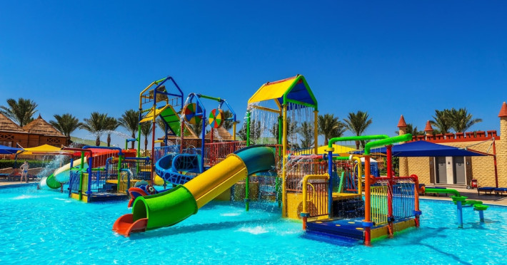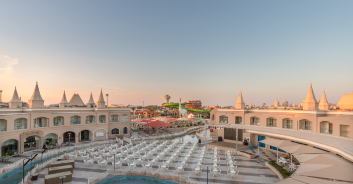 Pickalbatros Aqua Blu Sharm El Sheikh, located on the cliff of Ras Om El Seid within Aqua Park City, offers a variety of accommodations including standard rooms, family rooms, and bungalows. The resort is 15 minutes from Sharm el Sheikh's city center and 25 minutes from the airport. Enjoy nine outdoor swimming pools (including 10 children's pools and 17 adult pools), a private beach (accessible via complimentary shuttle), and 64 water slides. Dining options include five restaurants (offering international, Italian, Mediterranean, and Asian cuisine), three coffee shops/cafes, a beach bar, and six bars/lounges; 24-hour room service is available. Amenities include complimentary Wi-Fi, concierge services, an arcade/game room, a full-service spa, a gym, a kids' club, nightly entertainment, horseback riding, dry cleaning/laundry services, a 24-hour front desk, luggage storage, free self parking, and a convenience store. Rooms feature air conditioning, minibars, LCD televisions, satellite programming, private balconies or patios, private bathrooms with showers, complimentary toiletries, and hair dryers. All-inclusive rates are available (some restrictions apply). The resort is near Aqua Blue Water Park, the Red Sea, and various local attractions (distances provided in the original descriptions). Airport shuttle service is available at an extra charge. The Pickalbatros Aqua Blu Sharm El Sheikh is a Tourist hotel. The nightlife/restaurants are easily accessible by taxi or bus from the hotel.