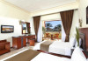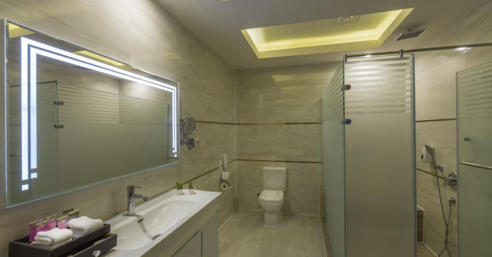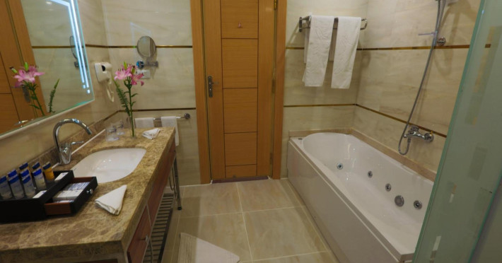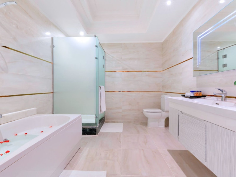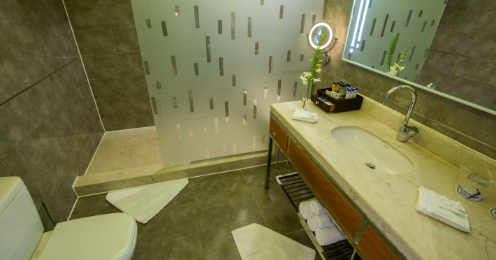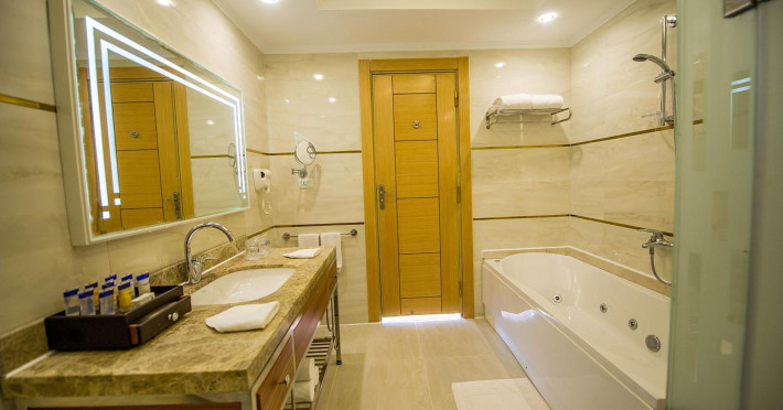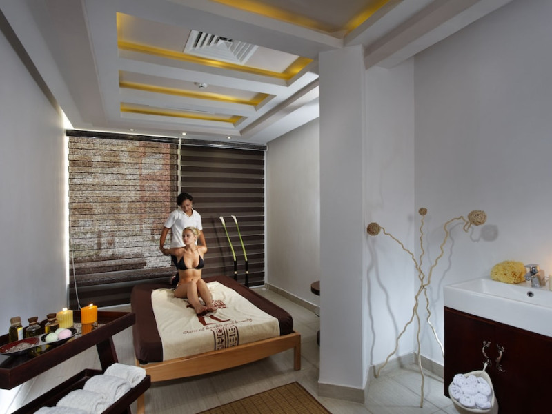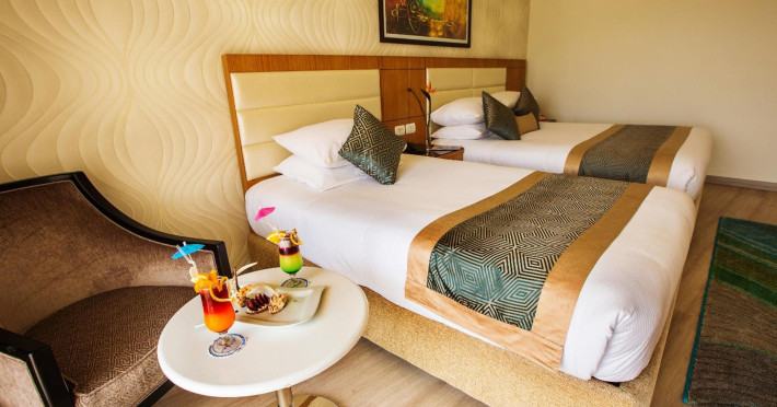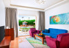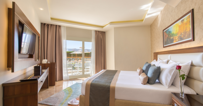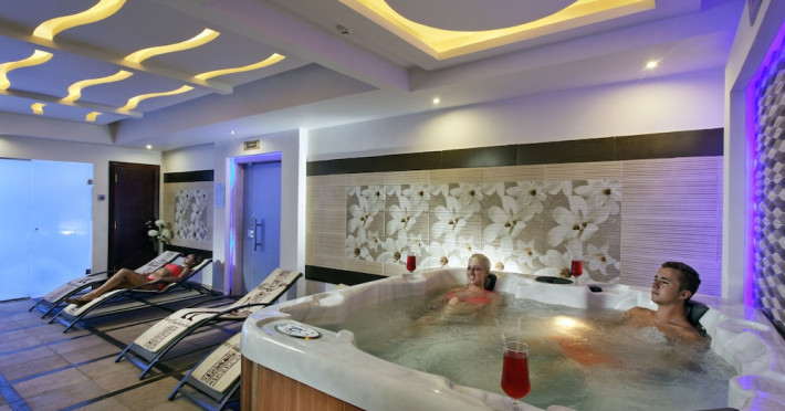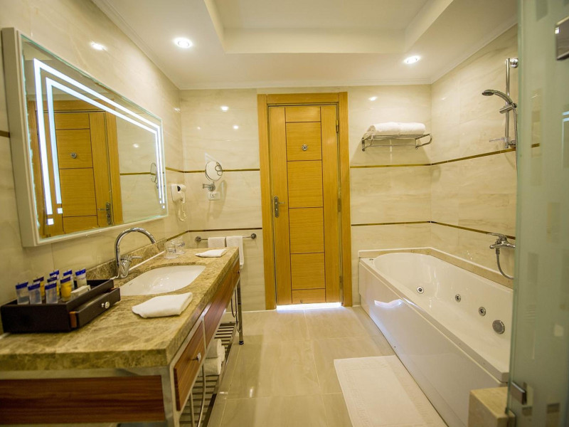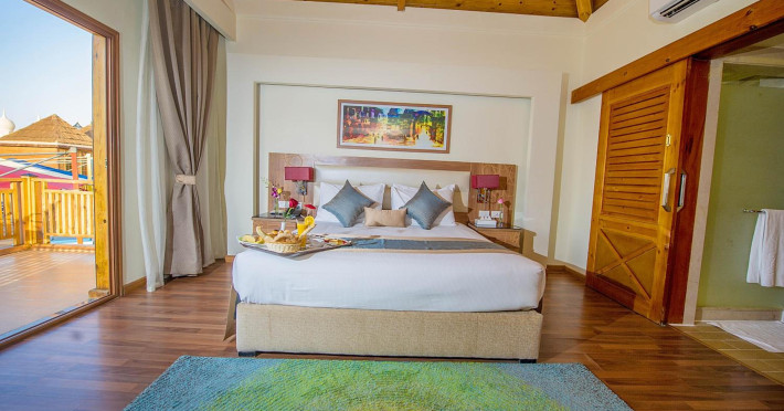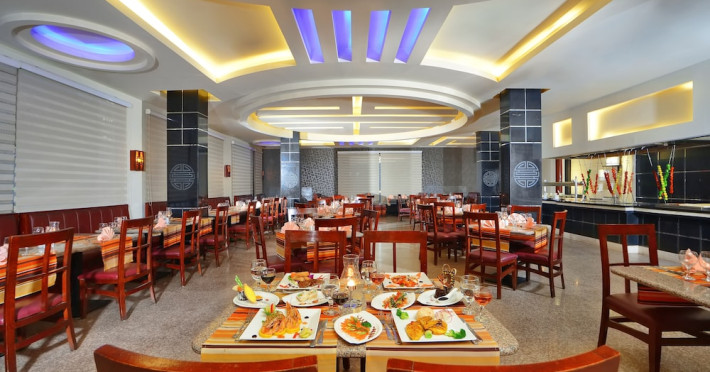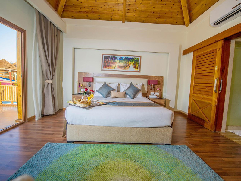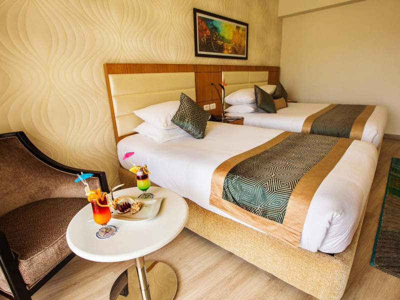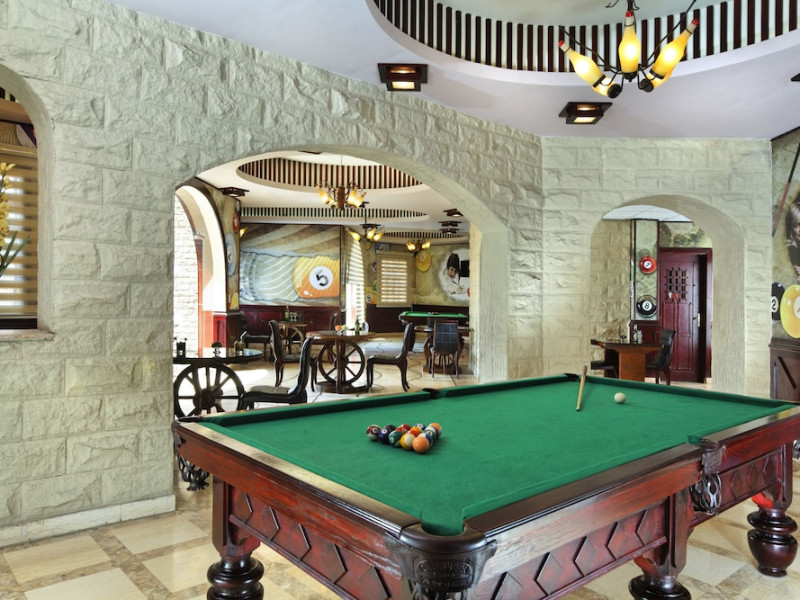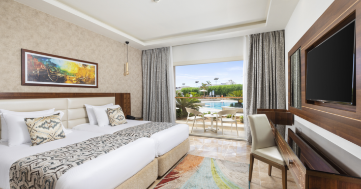 Pickalbatros Aqua Blu Sharm El Sheikh, located on the cliff of Ras Om El Seid within Aqua Park City, offers a variety of accommodations including standard rooms, family rooms, and bungalows. The resort is 15 minutes from Sharm el Sheikh's city center and 25 minutes from the airport. Enjoy nine outdoor swimming pools (including 10 children's pools and 17 adult pools), a private beach (accessible via complimentary shuttle), and 64 water slides. Dining options include five restaurants (offering international, Italian, Mediterranean, and Asian cuisine), three coffee shops/cafes, a beach bar, and six bars/lounges; 24-hour room service is available. Amenities include complimentary Wi-Fi, concierge services, an arcade/game room, a full-service spa, a gym, a kids' club, nightly entertainment, horseback riding, dry cleaning/laundry services, a 24-hour front desk, luggage storage, free self parking, and a convenience store. Rooms feature air conditioning, minibars, LCD televisions, satellite programming, private balconies or patios, private bathrooms with showers, complimentary toiletries, and hair dryers. All-inclusive rates are available (some restrictions apply). The resort is near Aqua Blue Water Park, the Red Sea, and various local attractions (distances provided in the original descriptions). Airport shuttle service is available at an extra charge. The Pickalbatros Aqua Blu Sharm El Sheikh is a Tourist hotel. The nightlife/restaurants are easily accessible by taxi or bus from the hotel.