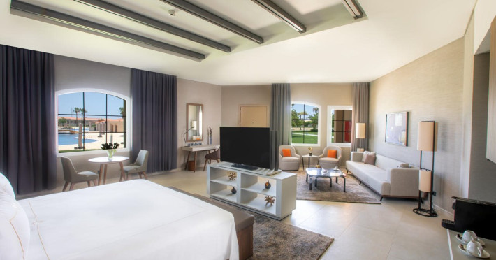 Facilities and services include Wi-Fi, air conditioning, two swimming pools, bars, restaurants, sports club, fitness center, kids activities, and adults sports activities, Rooms feature air conditioning, minibar, balcony or terrace, LCD television, safe, hairdryer, and bathroom amenities.Address: El Salam Road, Um Marikha Bay, P.O. Box 232, Sharm El Sheikh, South Sinai, Egypt.