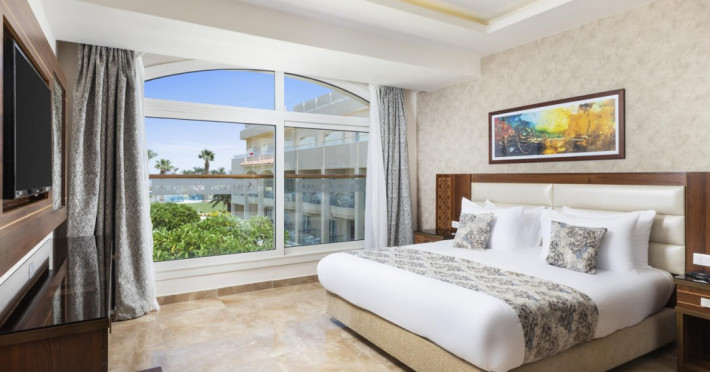 "The hotel is surrounded by resplendent gardens extending down to the beach. Pickalbatros Royal Moderna Sharm ""Aqua Park"" is the perfect place for all ages and interests. Situated by the beach, 2 km from Sinai Golf Heights, 12 km from Sharm El Sheikh International Airport and 24 km from Naama Bay center. The Pickalbatros Royal Moderna Resort Sharm El Sheikh is a hotel.