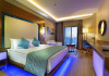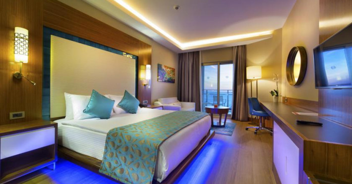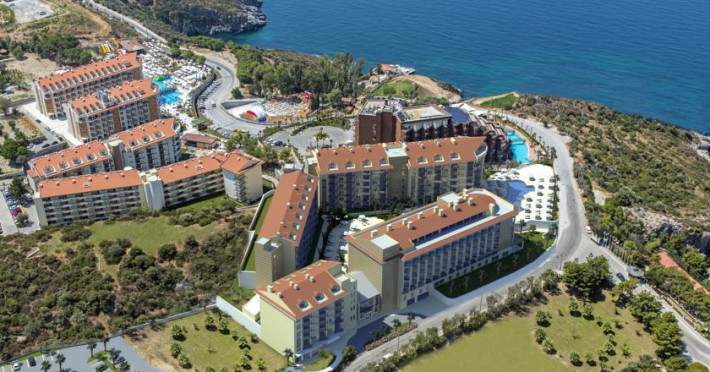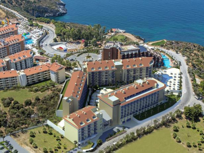 Receptie, restaurant interior si exterior, pool bar, lobby bar, cafenea, baie turceasca, sauna, jacuzzi, masaj, coafor, magazine, doctor, spalatorie, salon TV, camera jocuri, biliard, disco, animatie, sala conferinta, tenis, minifootbal, masa tenis, volei, minigolf, baschet, fitness, aerobic, aqua gym, sporturi nautice, piscina interioara si exterioara cu sectiune pentru copii, aqua park, miniclub, loc de joaca pentru copii, plaja privata cu nisip si pietricele.