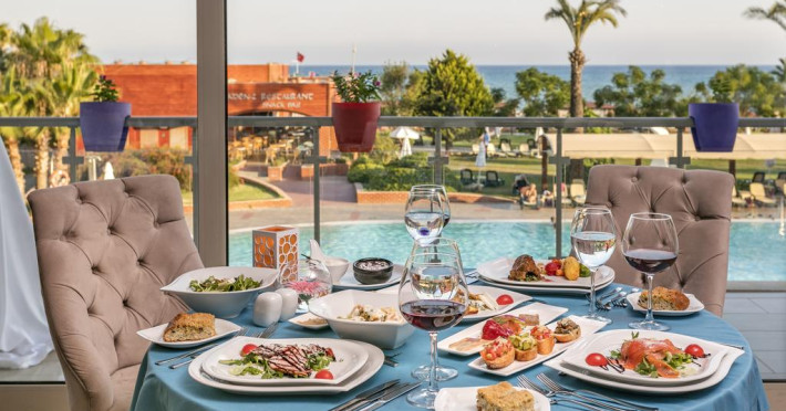 Complexul Maritim Pine Beach asigură 5 restaurante care servesc diverse preparate într-o atmosferă relaxată. Cele 2 restaurante principale oferă preparate tip bufet. În plus, aveţi la dispoziţie restaurante à la carte cu profil italienesc, turcesc şi pescăresc, accesul fiind pe bază de rezervare. Proprietatea are şi 11 baruri.
