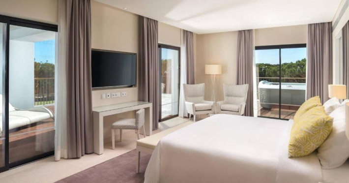 Descriere: Pine Cliffs Ocean Suites este o unitate de lux parte din prestigiosul complex Pine Cliffs Resort, remarcata prin arhitectura moderna si un concept axat pe confort si relaxare. Proprietatea dispune de suite si apartamente cu unul, doua sau trei dormitoare, amenajate contemporan si dotate cu facilitati moderne, fiind potrivita atat pentru cupluri, cat si pentru familii. Atmosfera eleganta, spatiile generoase si accesul la servicii premium, inclusiv centrul Serenity Spa, contribuie la un sejur rafinat si echilibrat in Algarve. Localizare: Pine Cliffs Ocean Suites este situat in cadrul resortului Pine Cliffs, in zona Albufeira, intr-un cadru verde si bine intretinut. Complexul se afla in apropierea plajei si la o distanta rezonabila de centrul statiunii Albufeira, unde se regasesc restaurante, magazine si zone de divertisment. Aeroportul din Faro se afla la o distanta convenabila, permitand acces facil catre resort. Dotari camera: Suitele si apartamentele sunt spatioase si elegante si dispun de aer conditionat, Wi-Fi gratuit, TV cu canale internationale, seif si fier de calcat. Fiecare unitate beneficiaza de balcon mobilat si include zona de living si dining. Bucatariile sunt complet utilate cu frigider, plita sau aragaz, cuptor, cuptor cu microunde, masina de spalat vase, ustensile de bucatarie, iar unele unitati dispun si de masina de spalat rufe. Baile sunt dotate cu cada si dus separat, uscator de par, halate si papuci, precum si articole de toaleta. Facilitati hotel: Hotelul ofera Wi-Fi gratuit in zonele publice, piscine exterioare, acces la zona de wellness si Serenity Spa, centru de fitness si facilitati pentru golf in cadrul resortului. Oaspetii au acces la restaurante si baruri cu specific local si international, room service, servicii de concierge si parcare. Complexul pune la dispozitie si spatii verzi amenajate, precum si diverse servicii dedicate relaxarii si petrecerii timpului liber. Site web: https://www.pinecliffs.com/en/accommodation/ocean-suites-a-luxury-collection-resort/ Nota informativa: Pentru anumite facilitati din hotel sau din camera, hotelierul poate solicita taxe suplimentare. In momentul sosirii la hotel solicitati receptionerului sa va informeze cu exactitate asupra lor. Taxa turistica obligatorie - se plateste la receptie.
